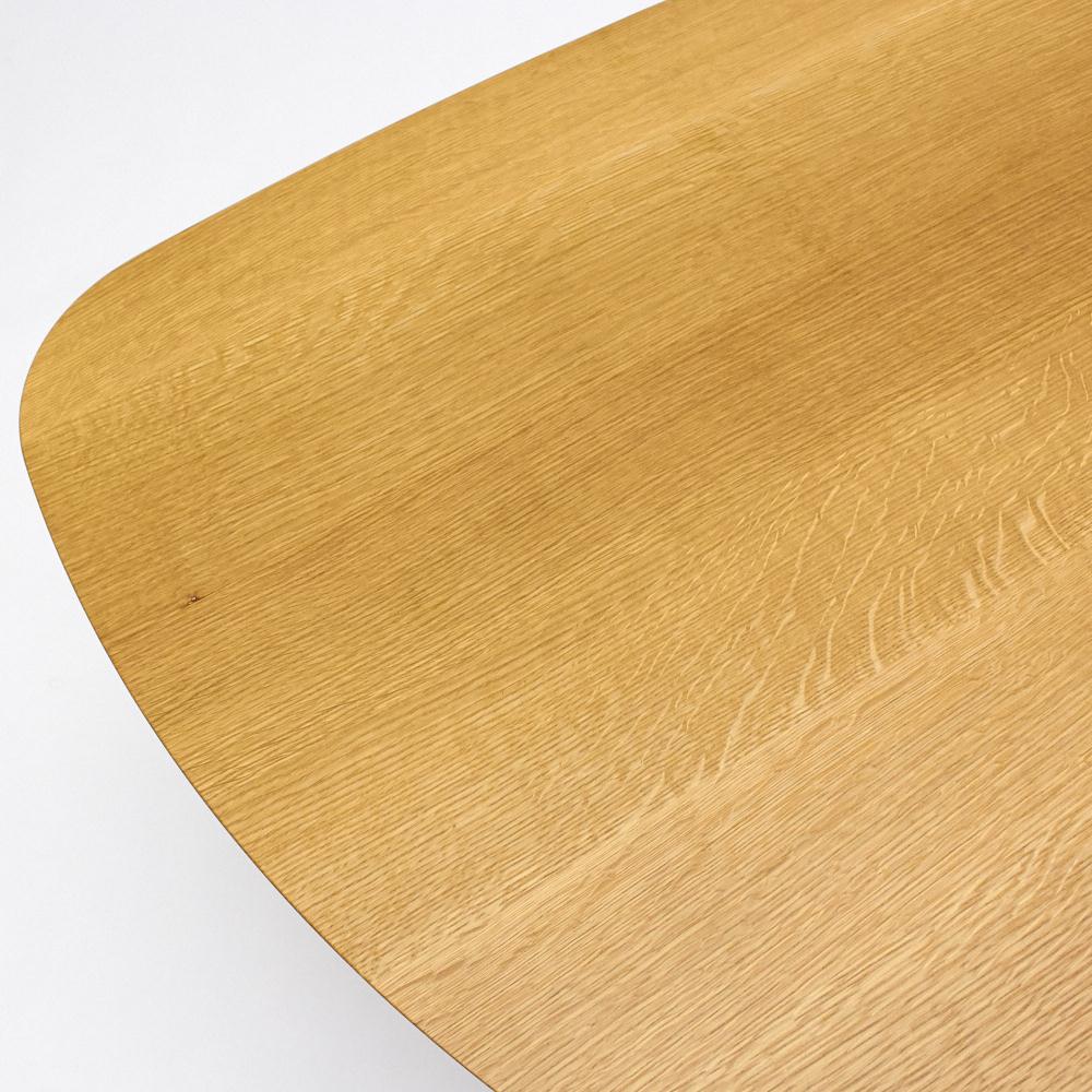 天板のアップ。ナチュラルな木目が魅力のオーク材。白い斑紋は虎斑(とらふ)と呼ばれるオーク材の特徴です。