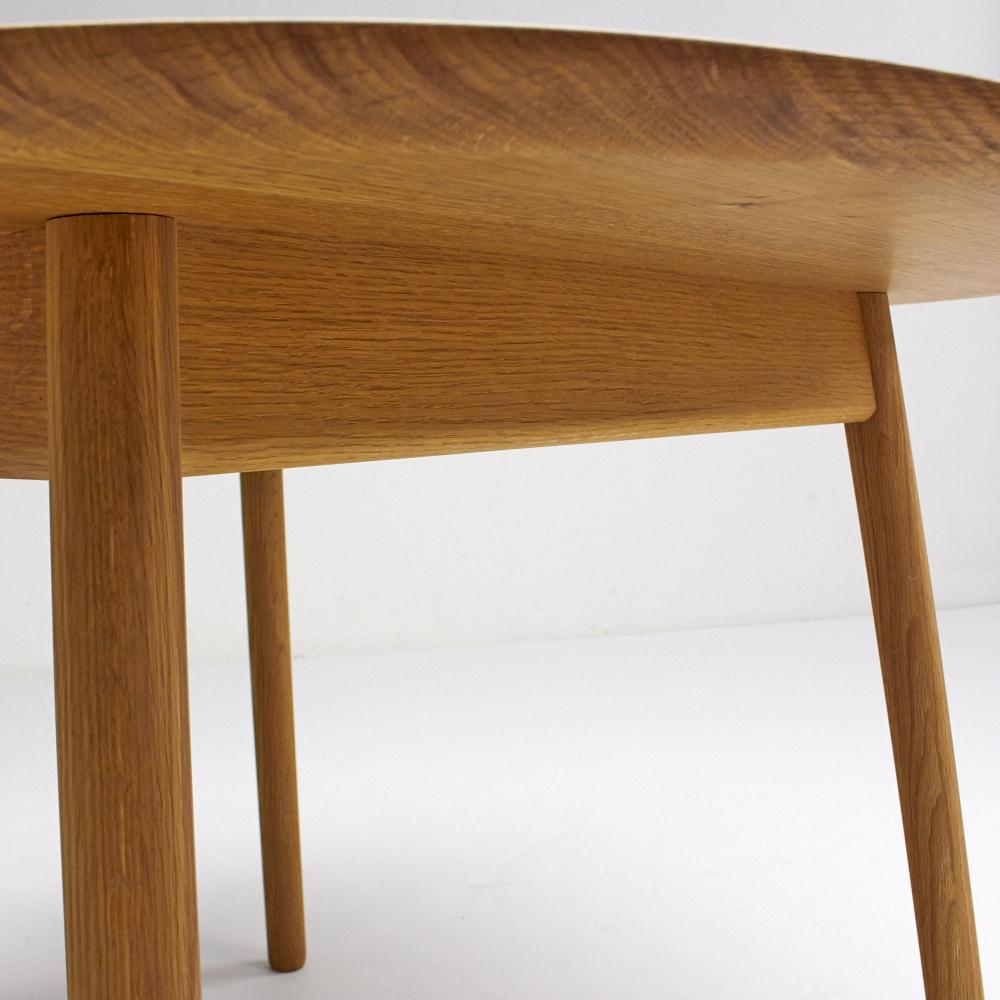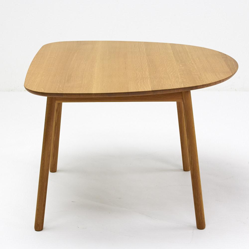 飛騨産業のコンパクトで軽快、空間を広く使える「コブリナ=小ぶりな」テーブル。半円形のような形状は、円卓としても、壁に寄せて省スペースに使うこともできます。cobrinaとは新進気鋭の建築オフィス「トラフ建築設計事務所」と日本の老舗家具メーカー「飛騨産業」との協同によって生まれた家具シリーズ。コンパクトで気軽、まわりの空間も広く見せることができる「こぶりな」家具。ユニークなサイズとデザイン幅111cmのコンパクトサイズで、チェアの座面をそのまま大きくしたような半円に近いデザインがユニークなリビングダイニングテーブルです。やさしい印象の曲線フォルムは、1辺が直線に近くなっているので、壁に寄せて省スペースで置くことができ、お部屋を広々使えます。もちろん、壁から離して円卓のように集まって使うこともできます。無垢材だからできる安心仕様角部分もアール仕上げで、小さなお子さまのいるご家庭でも安心してお使いいただけます。素材には、自然のままの美しい木目を活かした温もりあふれるオーク天然木を使用しています。オーク材の虎斑(とらふ)についてオーク(ナラ)材は、真っすぐにのびた木目が美しいのが特徴ですが、柾目(まさめ)には虎斑(とらふ)と呼ばれる虎の斑紋のような模様が必ずあるのが特徴です。虎斑は木が養分を貯蔵する役割のあった細胞であり、木の中心部から年輪を横断するように放射状に広がっています。木材を柾目でカットした場合は、必ずこの虎斑模様が現れます。この虎斑は、オーク材が育ってきた証でもあり、オーク材家具の魅力です。飛騨の技と心を受け継ぐ老舗メーカー「飛騨産業」日本有数の家具の産地である岐阜県・飛騨高山。1920年に創業した「飛騨産業」は、“ 飛騨の匠”で知られる伝統技術、山々に密生した豊富なブナ原生林を資源に持つこの地で一世紀もの歴史を刻み、「キツツキマークの木製家具メーカー」として国内のみならず、世界でも高い評価を得ています。トラフ建築設計事務所鈴野浩一(すずの こういち)と禿真哉(かむろ しんや)により2004年に設立。建築の設計をはじめ、インテリアデザイン、展覧会の会場構成、プロダクトデザイン、空間インスタレーションやムービー制作への参加など多岐に渡り、建築的な思考をベースに取り組んでいる。主な作品に「テンプレート イン クラスカ」「NIKE 1LOVE」「港北の住宅」「空気の器」「ガリバーテーブル」など。「光の織機(Canon Milano Salone 2011)」は、会期中の最も優れた展示としてエリータデザインアワード最優秀賞に選ばれた。2015年「空気の器」が、モントリオール美術館において、永久コレクションに認定。2011年「空気の器の本」、作品集「TORAFU ARCHITECTS 2004-2011 トラフ建築設計事務所のアイデアとプロセス」 (ともに美術出版社)、2012年絵本「トラフの小さな都市計画」 (平凡社)を刊行。cobrinaは2013年より販売され、2015年にグッドデザイン賞を受賞しました。ハウススタイリングは、HIDA(飛騨産業)の正規販売店ですディノス・ハウススタイリングは、HIDA(飛騨産業)の製品の正規販売店です。並行輸入品やリプロダクト、ジェネリックと称するコピー商品は販売しておりません。