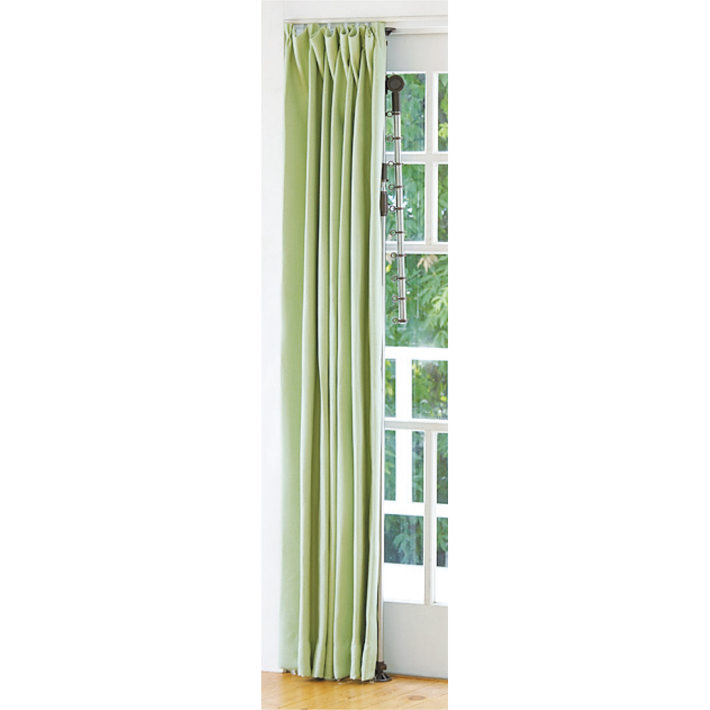 アームを倒せばコンパクトに。窓枠に設置すれば、使わない時はカーテンで隠せます。(※画像はアーム2本タイプ。樹脂パーツ部分も別カラーです。)