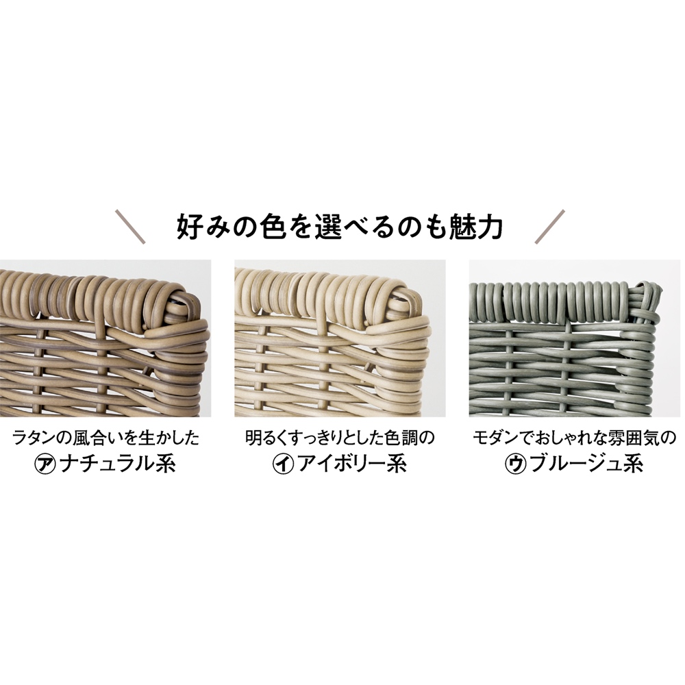 色ムラをつけて本物のラタンの質感を再現。ラタンのように朽ちることなく手入れがラクな点が魅力。