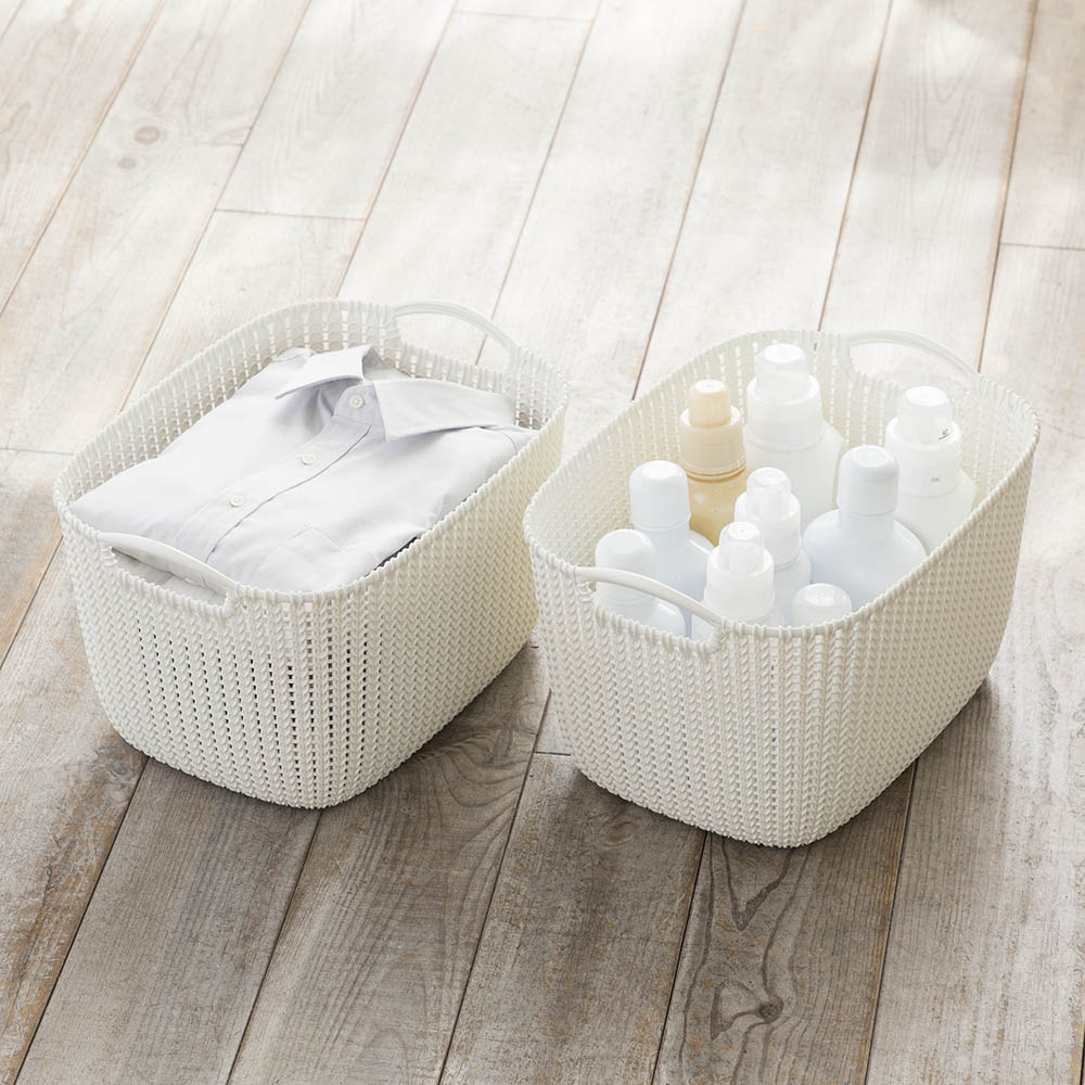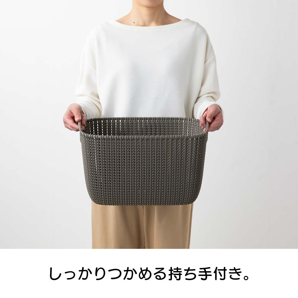 まるで本物のニットのよう!ぬくもりを感じる、繊細なバスケット。1949年にオランダで創業した老舗メーカーが手がけた、使いやすさとおしゃれなデザインが魅力です。人気スタイリスト・小山田早織さんもお気に入り。可愛くてサステナブルなバスケット。ニットの編み目を繊細に表現した美しいデザイン、柔らかな雰囲気。「お部屋に置いておくだけで絵になる」と、小山田さんも大絶賛! 環境に優しい製品づくりで名高いカーバー社の70%リサイクル素材を使用したシリーズです。心を満たしてくれる収納グッズに出会えました!おしゃれなライフスタイルが評判で、収納に関する著書も出す小山田さんが日々愛用。「収納グッズにインテリア性も求めた時、満たされるアイテムってなかなかなくて……。これは名品だと思います。使い心地も最高です」。ラウンドタイプはランドリールームで。洗濯物がたくさん入って便利です。ほどよい深さもあり、たっぷりしたサイズ感のラウンドタイプ。「わが家ではランドリールームに置いて、お風呂の前に脱いだ服を入れるバスケットとして使っています」。無造作に放り込んでも可愛い!スクエアタイプは子どものおもちゃ収納に。家中いろいろな場所で使える汎用性の高いスクエアタイプ。小山田さんのお家では、なかでも子ども部屋で大活躍!「おもちゃをポンポン入れてもサマになるので、そのまま床に置きっぱなしにしています」。たっぷり入って中が見やすい!かごタイプはクローゼット収納におすすめ。小山田さんは、かごタイプをクローゼットで使用。「試しにニットを入れてみたらしっくりきたんです。基本はMAWAハンガーに掛けますが、ローゲージニットなど繊細な物はたたんでこの中に。大きめのバッグの収納にも使っています」。中身が把握しやすいかごタイプは“クローゼットの可視化”にぴったり。「クローゼットのデッドスペースが生かせるし、入れた状態での見た目も可愛い。入っている物がしっかり見渡せるサイズ感で、私が提唱している“クローゼットの可視化”にも最適なんです」。伝統の編み方を徹底研究したというぬくもりを感じるニット模様。本物のニット編みを徹底的に研究し、ハンドメイドしたような暖かみのあるニット模様を再現したバスケット。「編み目の隙間から、中がうっすら見えるところも魅力です」。日々の生活で使う物だからストレスのない使用感がうれしい!山盛りに入れても安定感があり、しっかり持てるところもお気に入りのポイントとか。「少しくらいハードに扱っても全然ヨレないのもすごい。しなやかで、型くずれすることもなく、使っていて一切ストレスがありません」。気軽に水洗いできるので汚れを気にせず使えます。汚れが気になったら気軽に水洗いできるので、お手入れも簡単。「ランドリーで使っているラウンドタイプのバスケットは、時々拭いてお手入れしています。清潔に保てるのは嬉しいですね」。