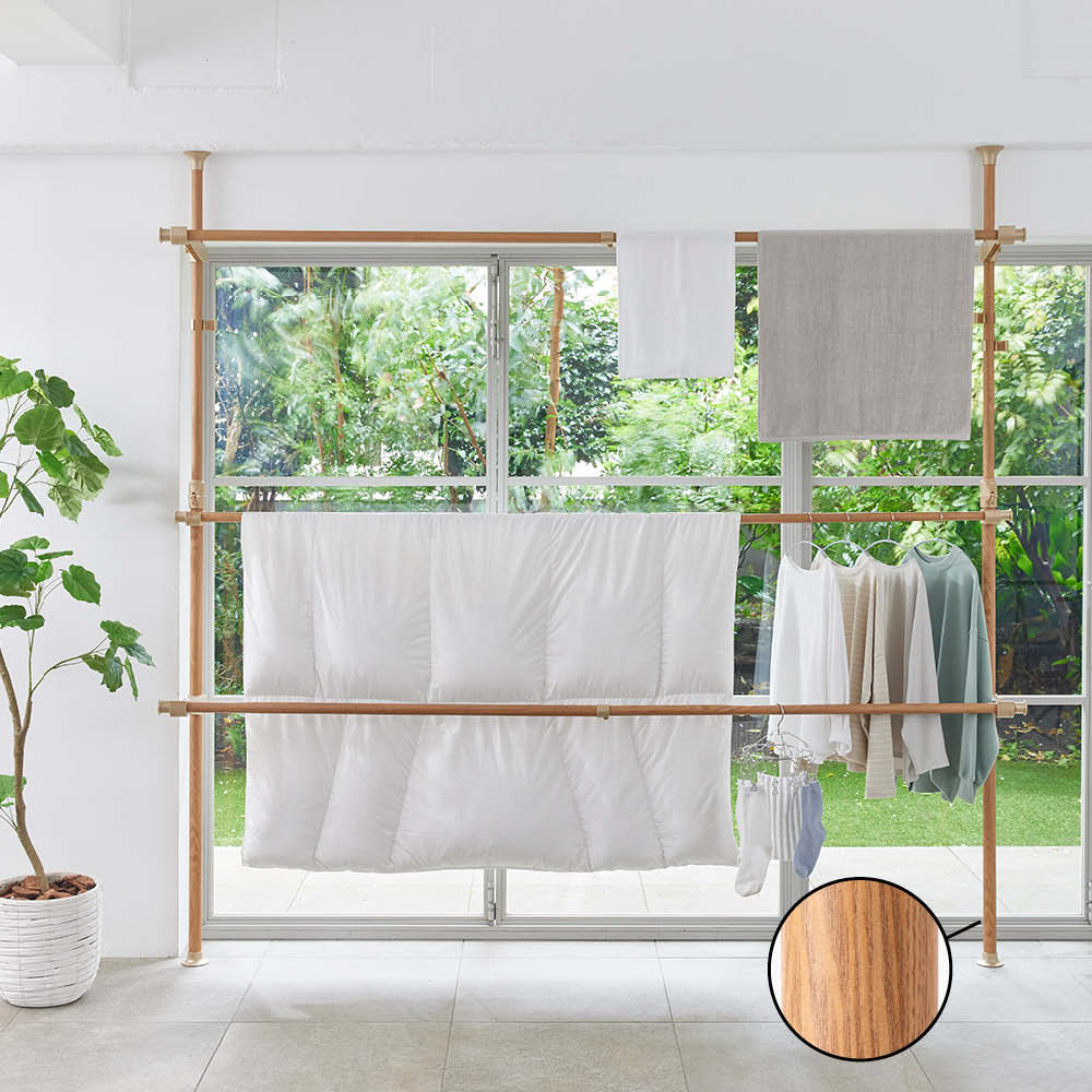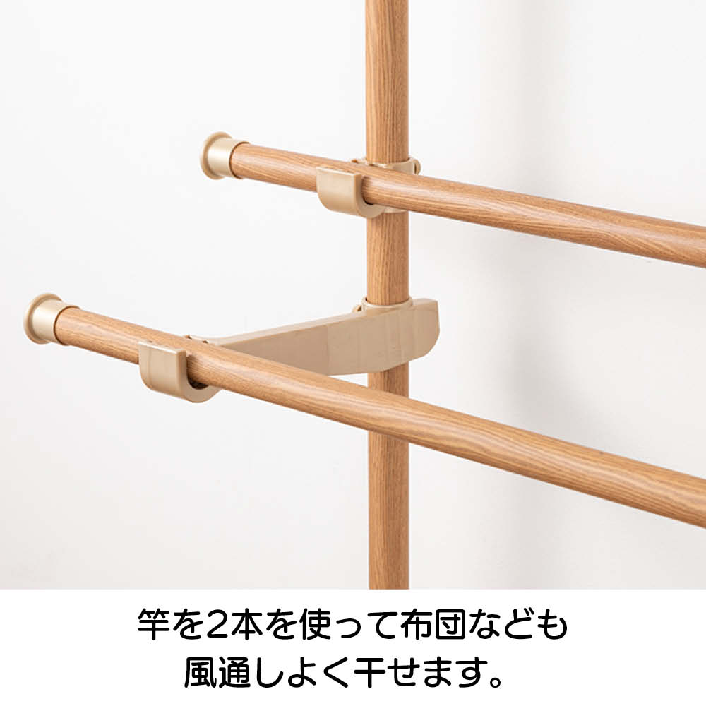 (イ)ナチュラル木目 幅をとるシーツやバスタオルもラクラク。2本を使って布団を干せば風通しも◎。