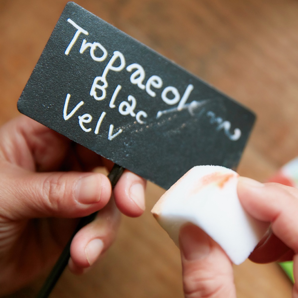 金属に書けるタイプのマーカーやチョークで記入し、メラミンスポンジで簡単に消せます。(※)