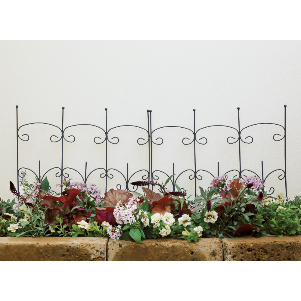曲線をあしらったエレガントなデザインで、お庭の表情が早変わり。※お届けは2枚組です花壇に挿したり、つる性植物をはわせても。2枚組。■使用方法は自由自在!花壇の中に差しても空間の間仕切りに。フェンスとしてはもちろん、トレリスとしてツル性植物を這わせても素敵です。 人が飛び越えられる高さですが、「入ったらだめ。」感は伝わる高さなので、境界フェンスにもなります。■デザインアイアン製なので安物っぽさがなく重厚感があります。エレガントな曲線をあしらったデザインで、アイアンの格子デザインにありがちな固い印象を抑え、柔らかさを演出。曲線が多く、本商品自体にデザイン性があるので、お庭に差すだけでお庭が一気にエレガントな印象に。
