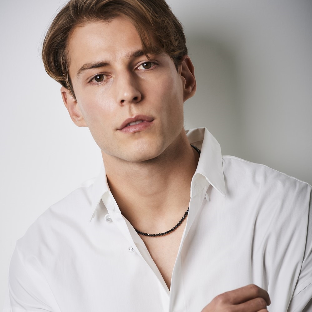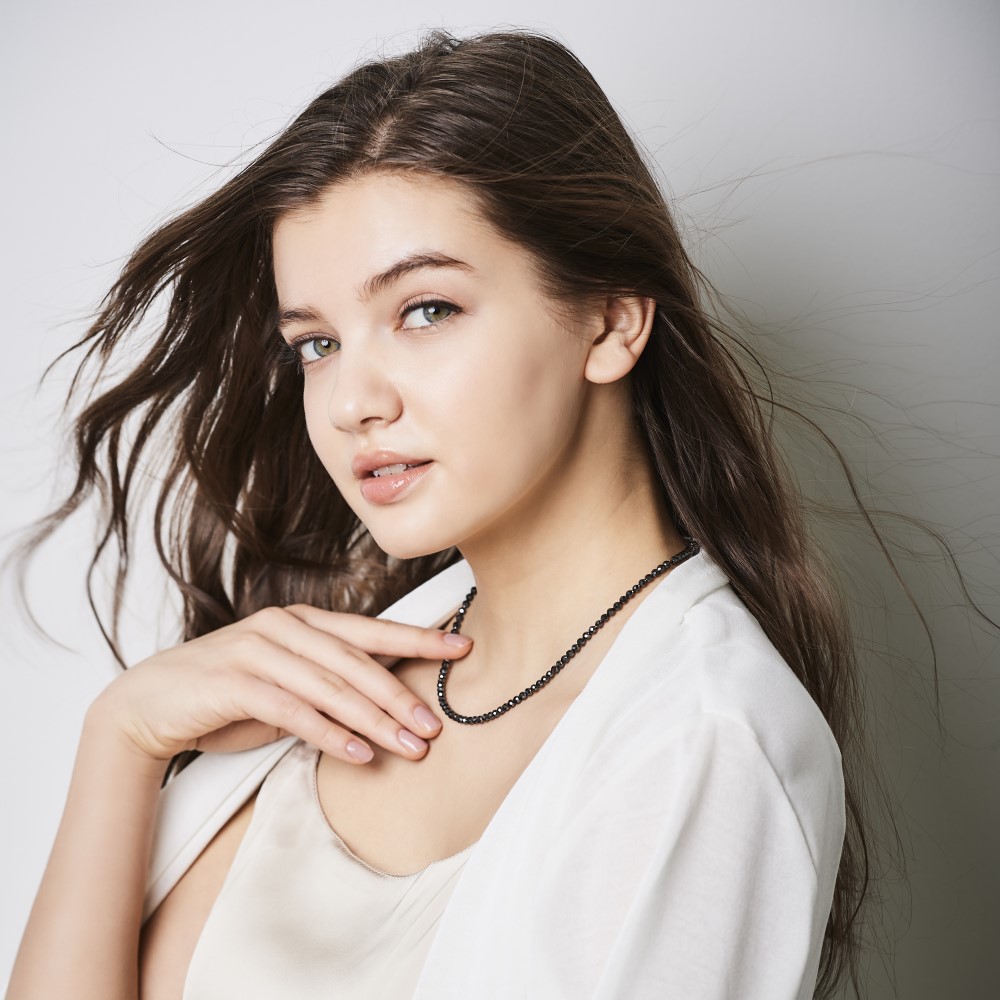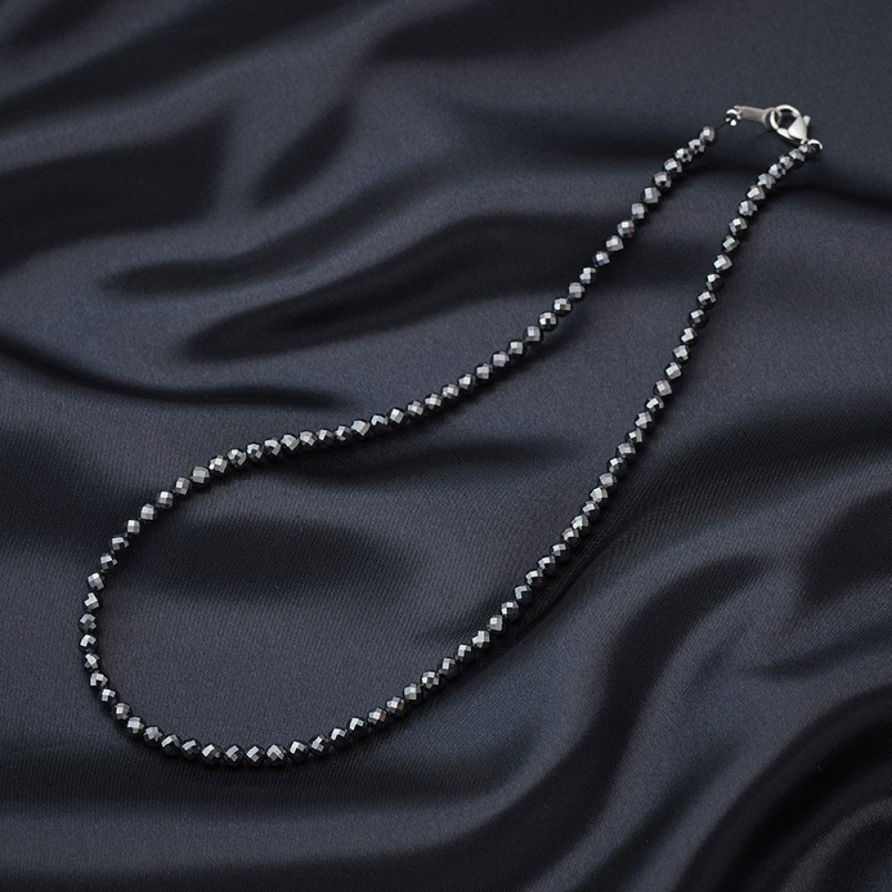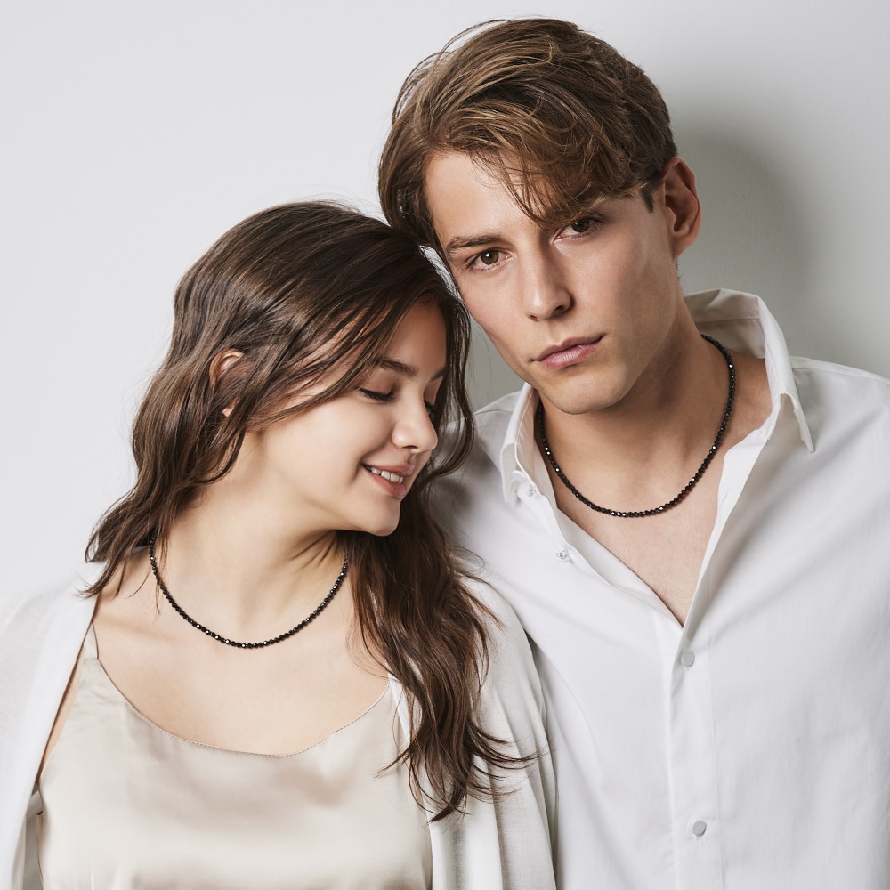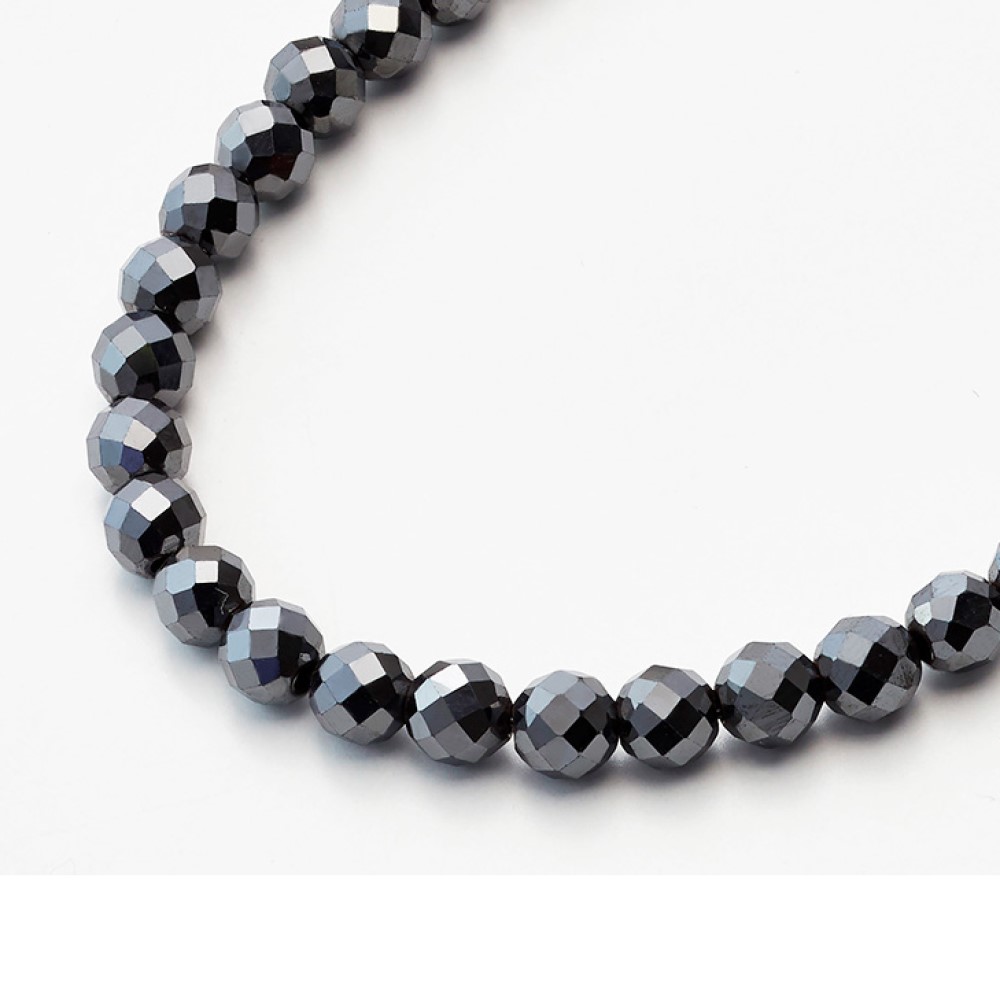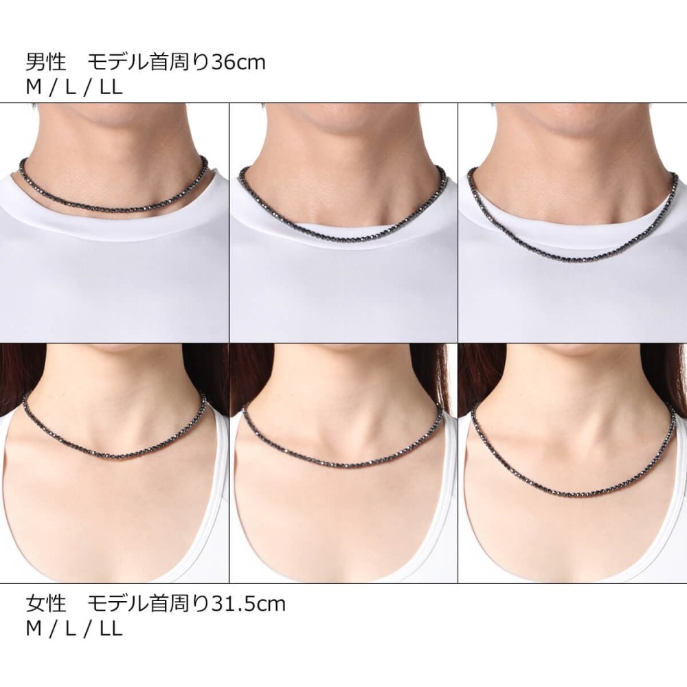 Mサイズ着用 オシャレに肩こりをケアする磁気ネックレス。48面体鏡面加工を施した磁石の立体的な光の輝きが美しい。