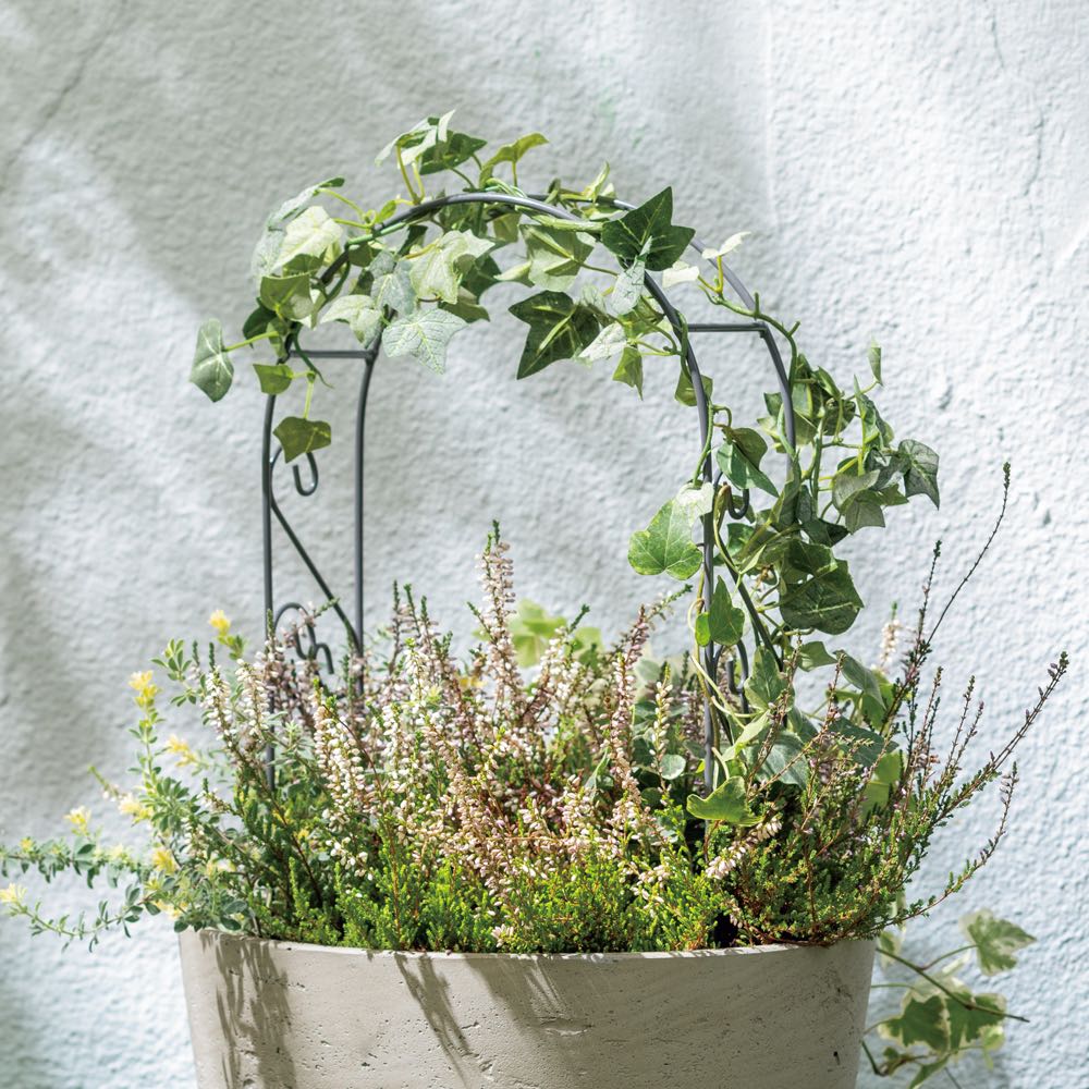 高低差が生まれるミニアーチ大小2個組で、花壇におしゃれな立体感を演出。オーナメントを置いて物語性を楽しんでも。
