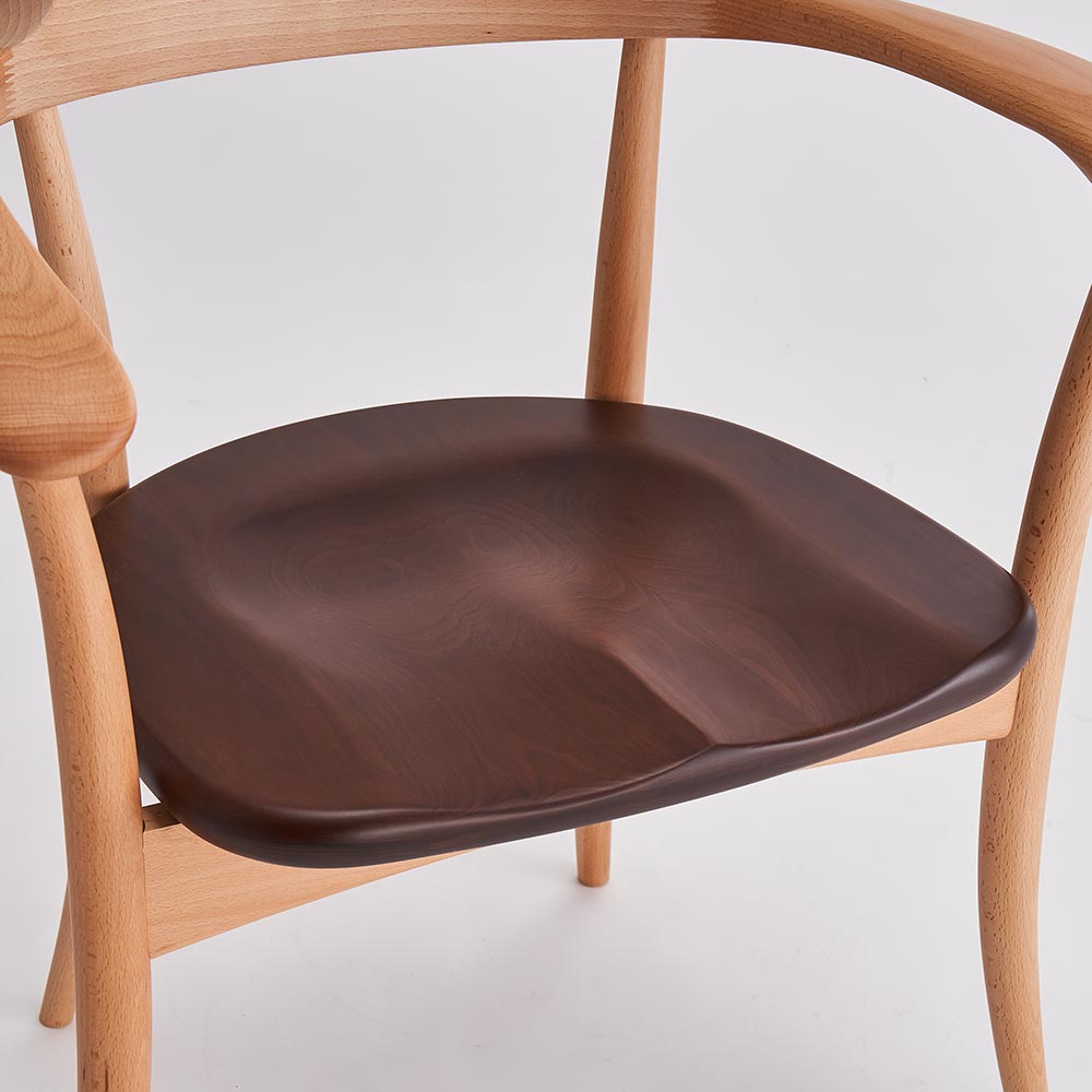 立体感をつけた座面は木の硬さを感じさせないやさしい座り心地。