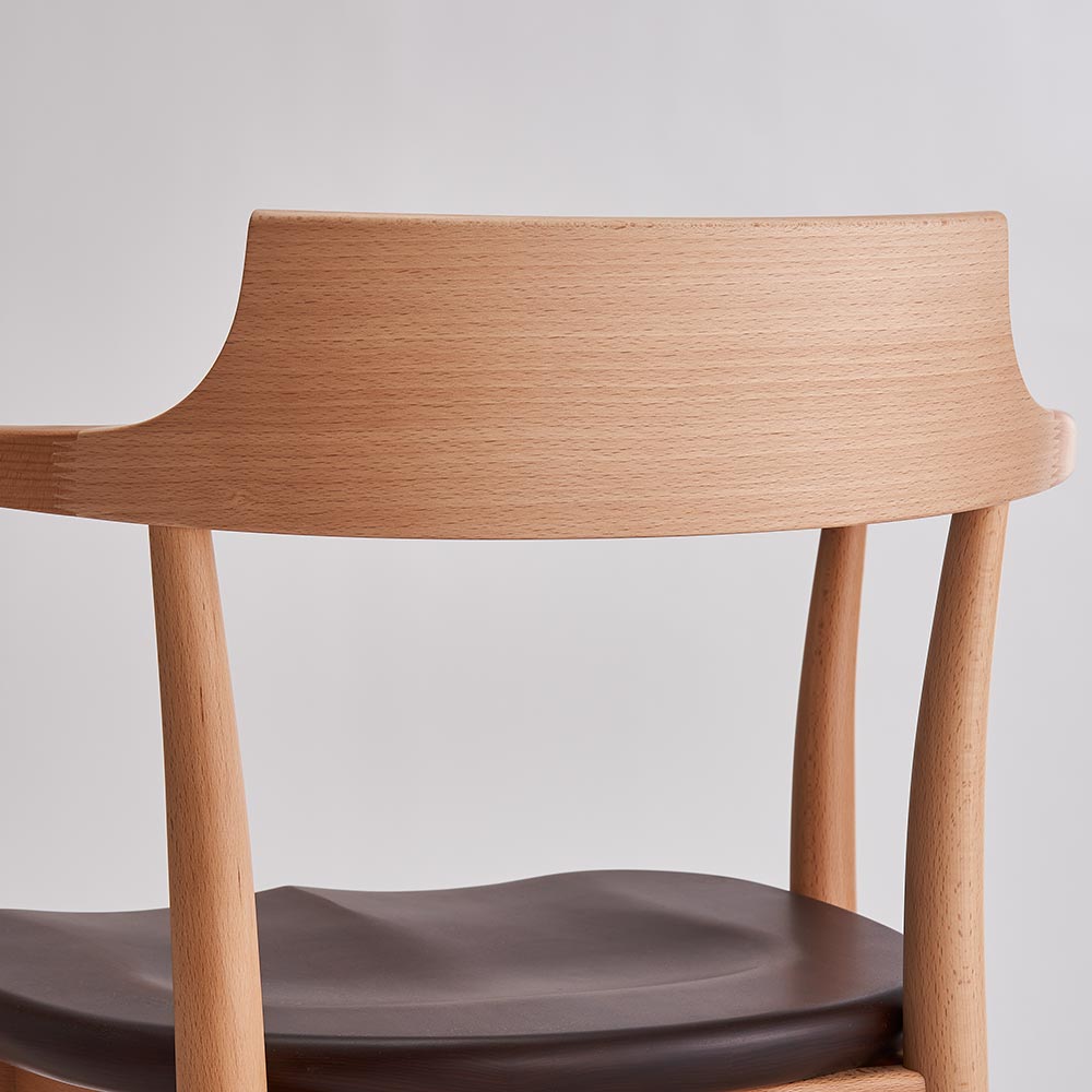 背中からつながり腕全体を支えるアームは、椅子に包まれるような心地よいフォルムが特徴。