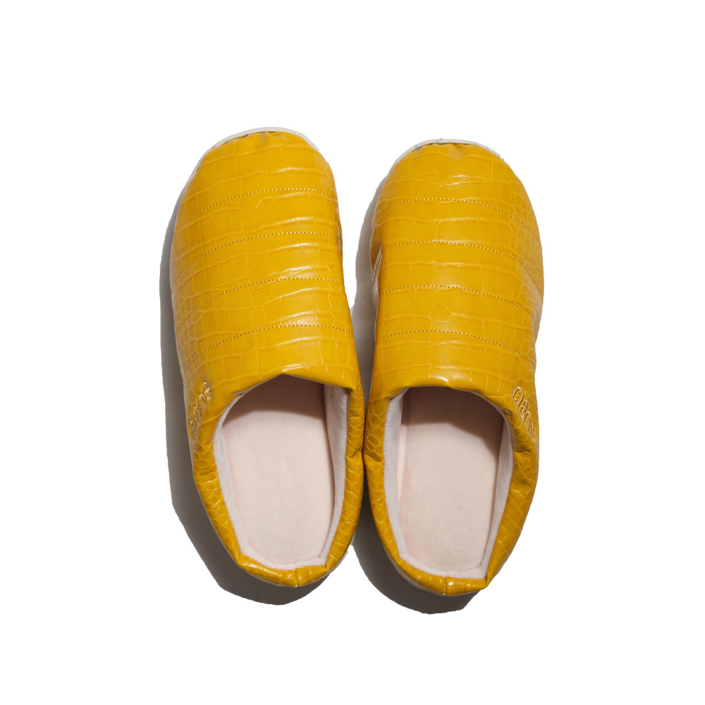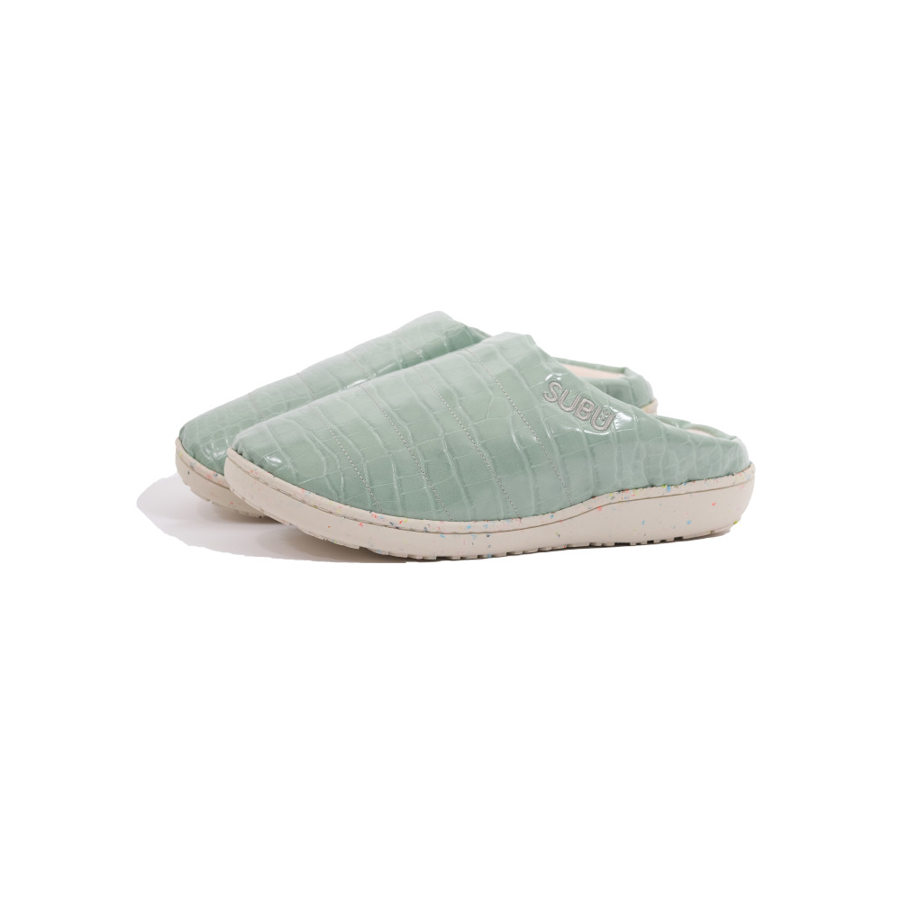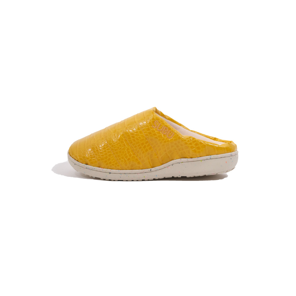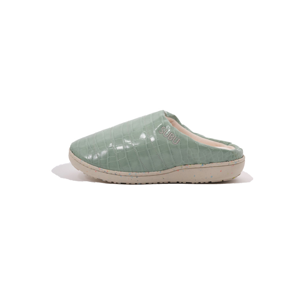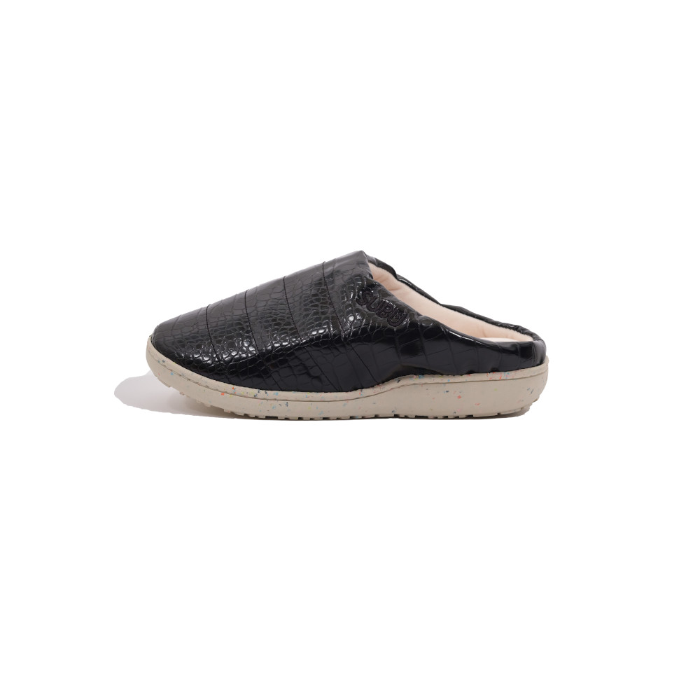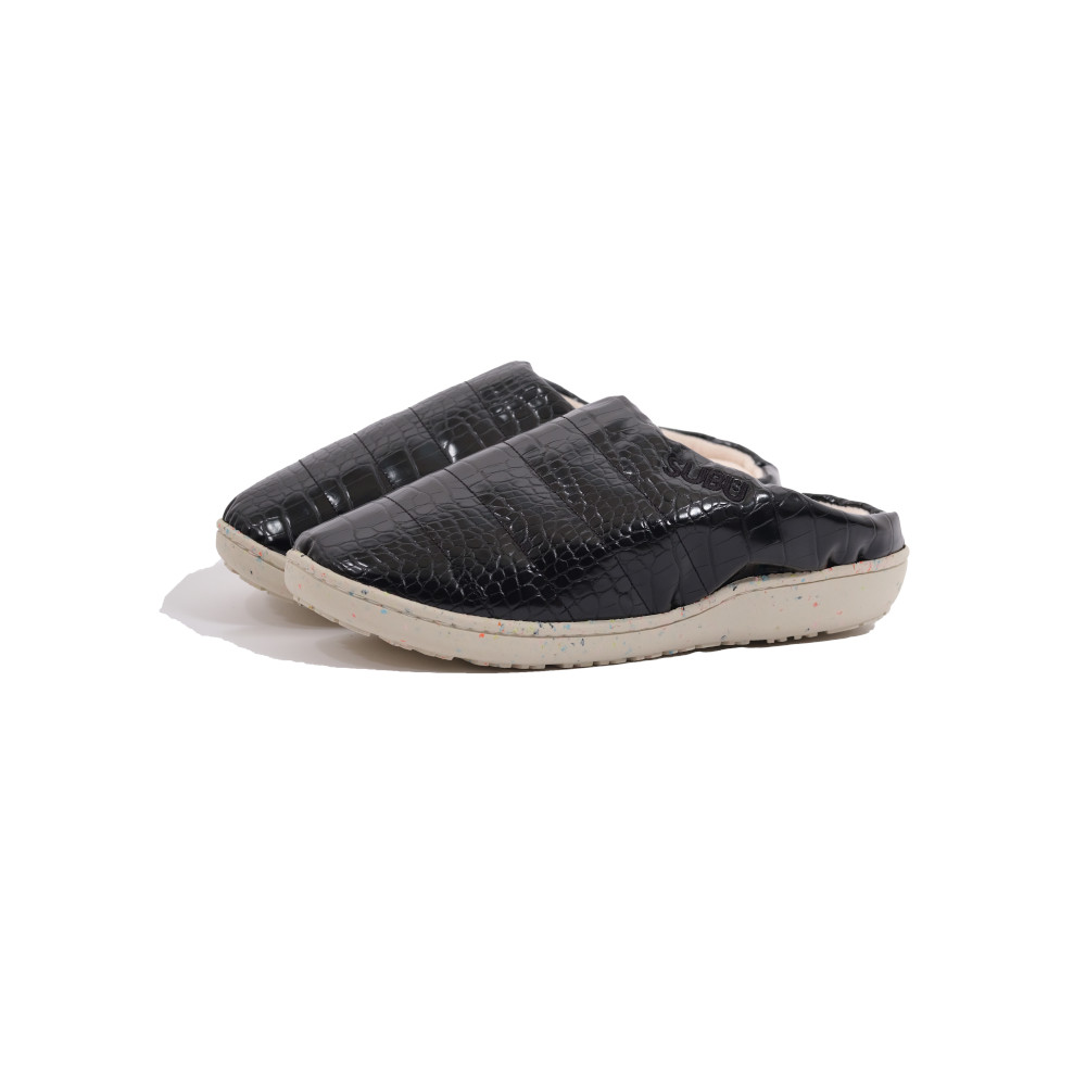 誰も知らない冬のサンダル寒い時期、ふと出掛ける時に素足で履ける、いままでにない秋冬のサンダルです。ダウンのような暖かさで素足を包み込み、起毛加工の内側の生地と4層構造のインソールが、足全体に抜群のフィット感を生み出し、優しい履き心地をつくりだします。新たに加わった表情豊かなニューモデルのアッパーは妖艶な雰囲気漂う”アニマルレザー“ 「CROCODILE」!冬にサンダルを履く。「ちょっとそこまで出たいとき、サンダルでは寒い…。」今までにない新しい秋冬のサンダルです。2022年に発表した環境に配慮した素材を70%採用した「Re:Collection」新たに加わった表情豊かなニューモデルのアッパーは妖艶な雰囲気漂う”アニマルレザー“ 「CROCODILE」GRS承認のリサイクルレザー素材をアッパーに置き、 中綿やインナーファブリックもサスティナブル素材。アウトソールは、ポリスチレン廃棄物を集めて 混ぜ合わせた素材で作られていて、カラフルなつぶつぶが特徴。※GRS(Global Recycled Standard)認証とは、 リサイクルされた材料の使用を増やすことを目的に、 2008 年に Control Union Certifications によって策定された国際的な自主基準。2024コンセプトの「ハレモケモ」をデザインコンセプトに より”晴れの日”に、妖艶な、ロックな、セレモニーな雰囲気漂うスタイルに。クロコダイルは古代エジプトにおいて重要な信仰の一つであり、ワニのミイラは力強さと自然の支配と再生の象徴でした。●ダウンのような暖かさと、起毛加工の内側の生地と4層構造のインソールが足全体にフィットし、優しい履き心地を創り出します。●ソールはスニーカーのようにしっかりしたすべり止めになっています。4層のクッション性のあるソールなので、外を歩くのにぴったり。●内側は起毛素材を使用しており、暖かく履き心地抜群です。素足で履くのはもちろん、ファッショナブルな色使いのSUBUとお気に入りの靴下とのコーディネイトを楽しんで。●同じカラーの収納袋がついてきますので、旅行やキャンプなどいろいろなところにもっていけます。■SUBUコンセプト・日々の暮らしに、発見と驚きを。靴を脱いで、素足になる。それは、あなたをリラックスさせ、あなたに自由を与えてくれます。そしてまた、自由になった時にこそ初めて、「好きなモノ」や「新しいコト」に対して、まっすぐと純粋に向き合えるのではないでしょうか。好きなモノを手に入れる。新しいコトに挑戦する。きっとそれは、発見と驚きに溢れ、日々の暮らしを豊かにしてくれるはずです。・好きなモノ、新しいコトへ、一歩ずつ。SUBUは、そんな小さな「一歩」を踏み出す生活者に愛されつづけるブランドでありたいと思います。「好きなモノ」や「新しいコト」は人それぞれで、それこそ自由です。好きなモノを形にし、新しいコトに挑戦しつづけ、そのプロセスや時間を共有する。私たちは、その一つ一つを応援したいと思います。・さぁ、あなたらしく一歩をこのサンダルとともに。誰も知らない冬のサンダル。それはまさに、私たちにとって「好きなモノ」であり、「新しいコト」への挑戦でした。今後も、このサンダルを通じて、たくさんの人と出会い、たくさんの人が自由に、純粋に、一歩を踏み出せるようにお手伝い出来ればと思っています。
