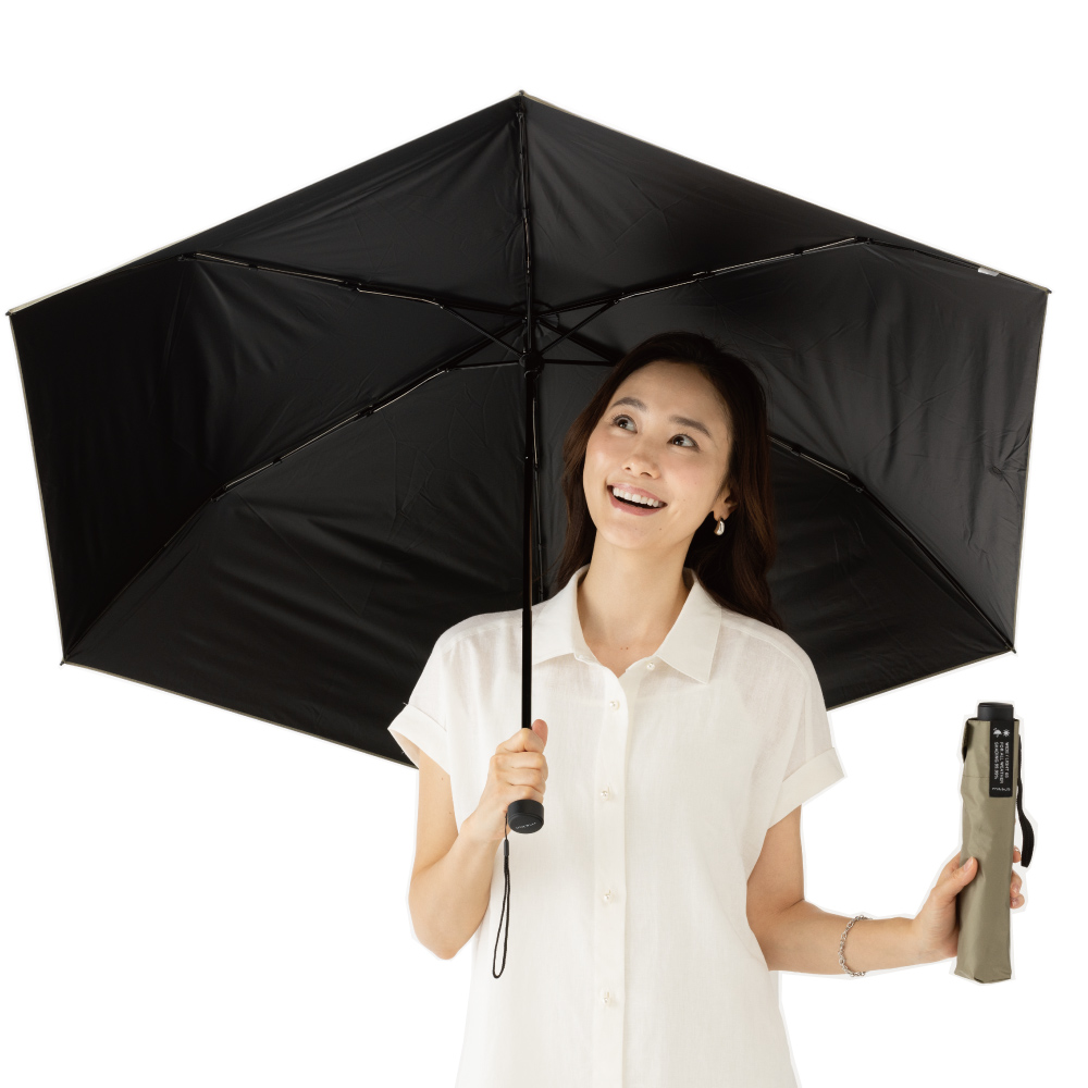 コンパクトなのに長傘なみのワイド感。UV対策にぬかりなし!たたむとコンパクトなのに、広げると予想外の大きさ。紫外線はもちろん、雨の日も荷物までカバーできる心強いサイズ感です。一級遮光生地でしっかりUVカットしながら、遮熱効果で傘の下は木陰感覚。スムーズな開閉も使いやすいポイント!POINTUPF50+UVカット率99.9%以上遮熱軽量約230g晴雨兼用