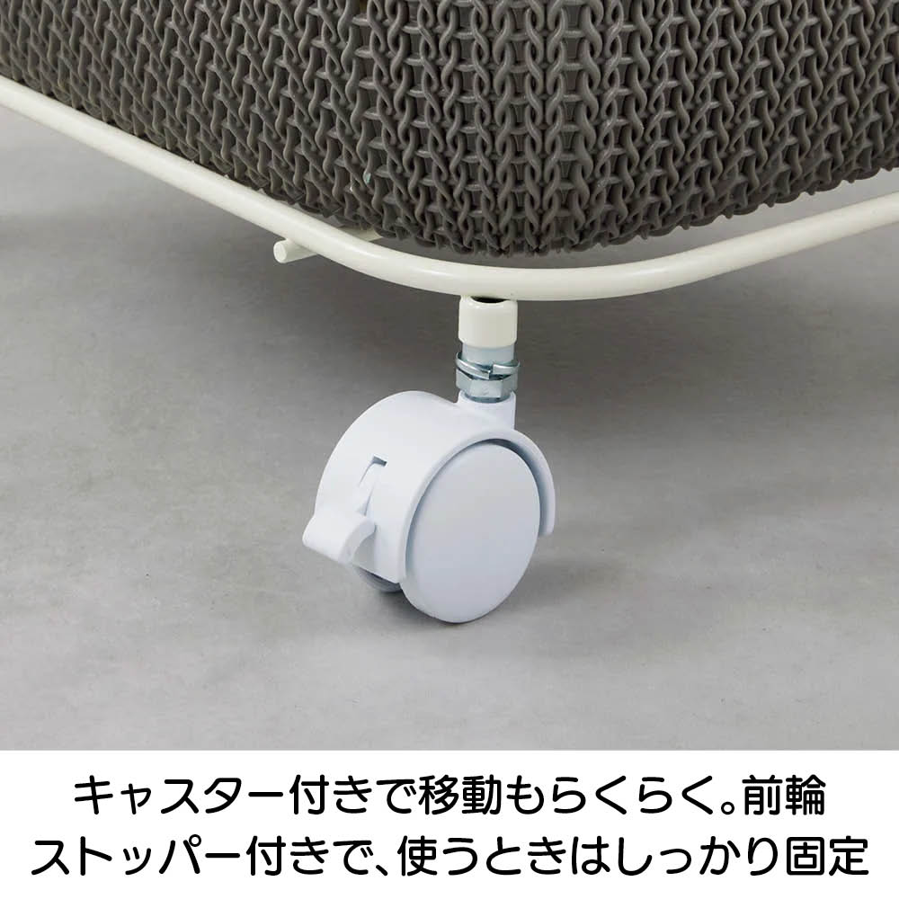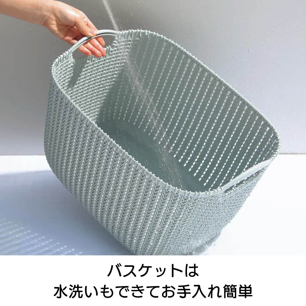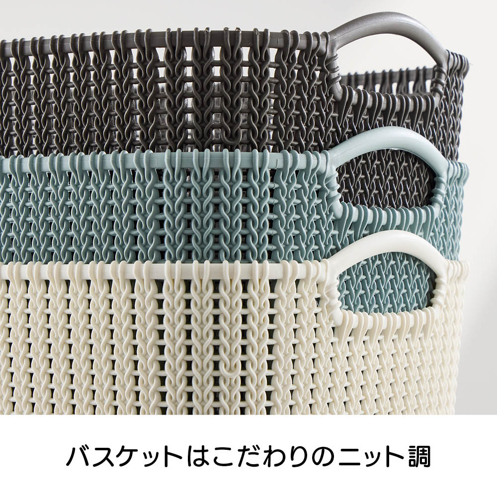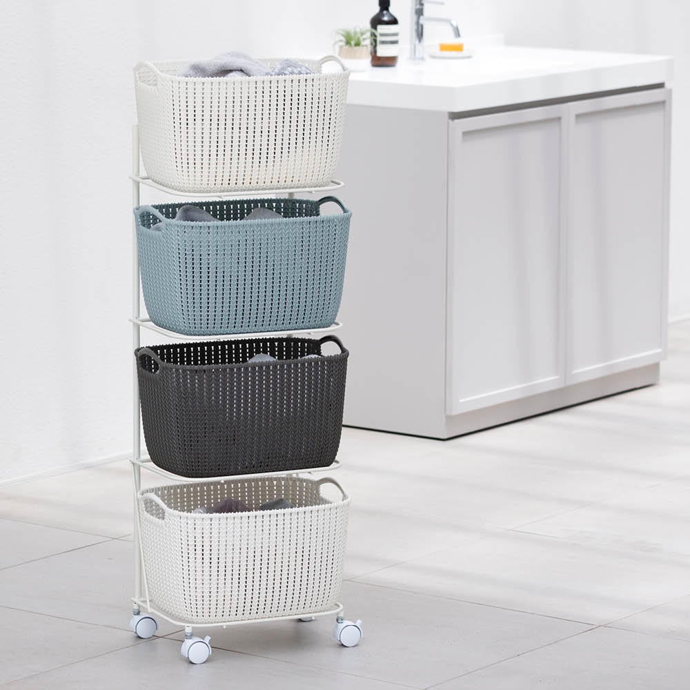 ランドリーワゴンが4段になって収納力がさらにアップ!ロングセラーのニット調バスケットに合わせて、使いやすさを考えて作りました。バスケット4個とワゴンをセットでお届けします。4つのバスケットで洗濯物の色分けはもちろん、タオルや洗剤など日用品の収納にも大活躍。置くだけで洗面スペースやランドリールームがおしゃれで快適な空間に。デザイン性と使いやすさを兼ねそろえた、ランドリーワゴンです。バスケットはこだわりのニット調ありそうでなかった本物のニットのようなやさしい質感、グレイッシュなカラーバリエーションも魅力。洗面台スペースをおしゃれにセンスアップします。引っかかりにくい、なめらかな手触り。通気性の良さも魅力です。内側がなめらかなので、タオルや衣類が引っかかりにくく、出し入れもスムーズです。通気性もよく、湿気やニオイがこもりにくいので、快適にお使いいただけます。バスケットは水洗いもできてお手入れ簡単汚れてもサッとひと拭き、まるごと水洗いもOK!きれいな見た目と使いやすさを両立しました。世界中で支持されるプラスチック製品専門の老舗メーカー、カーバー社再生プラスチック素材を使った生活用品のパイオニアとしても知られるカーバー社。丈夫さ・デザイン性・使いやすさ、すべてにこだわったモノづくりで世界中の家庭に支持されています。