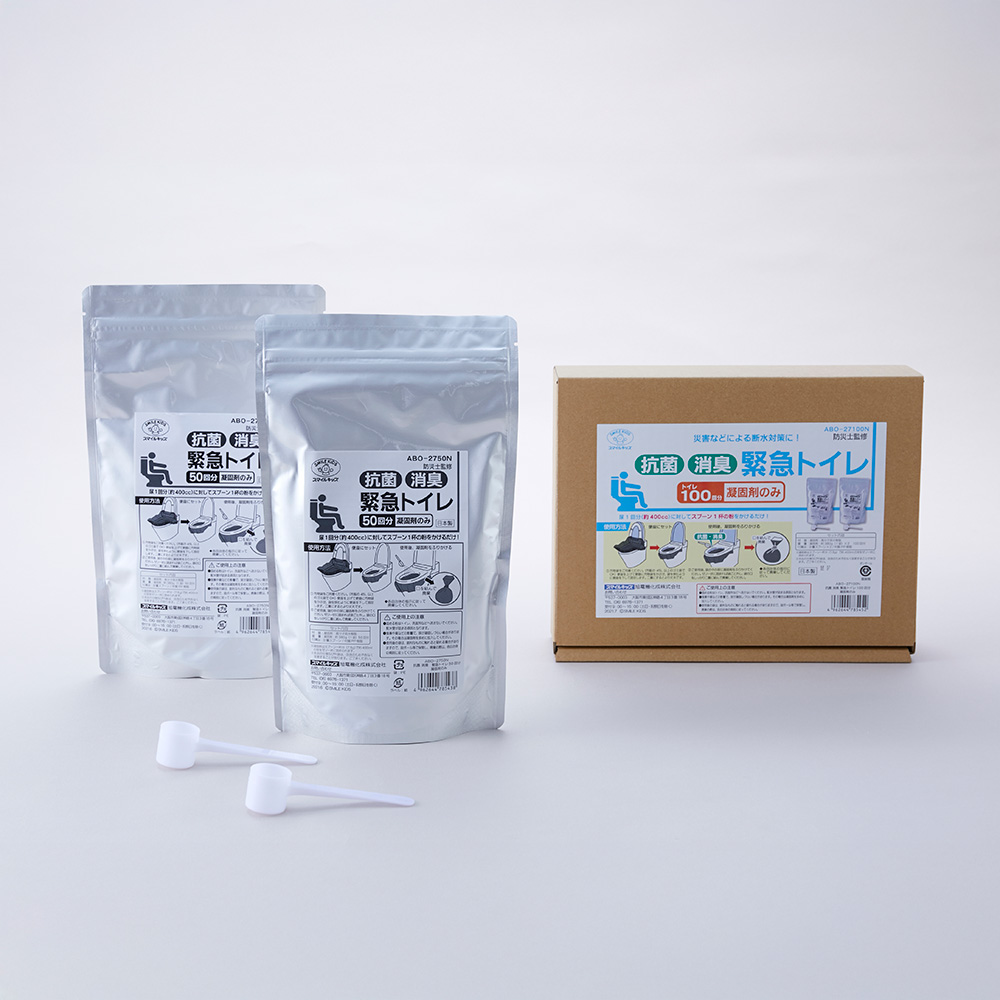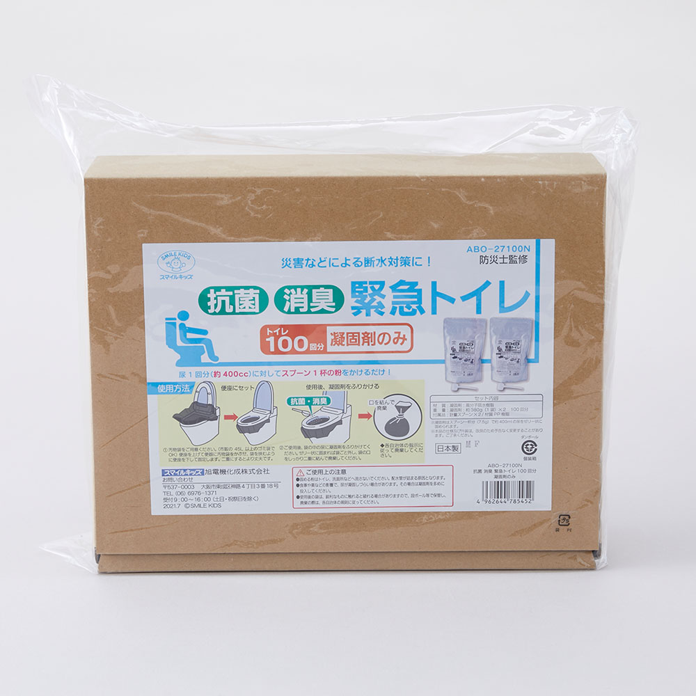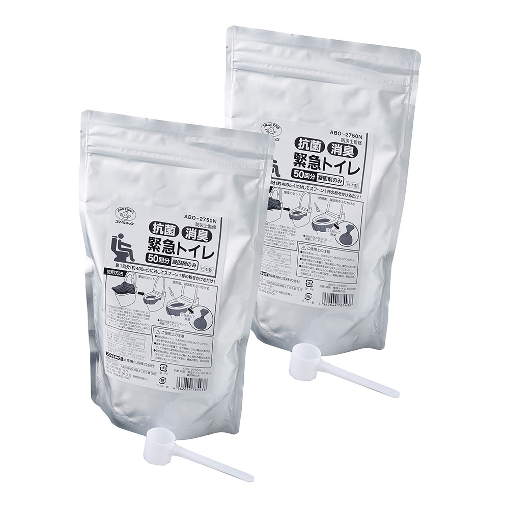 防災士監修。第三者機関での抗菌・消臭試験をクリアした凝固剤が、尿などの排泄物をすばやくゼリー状に固めて密閉。断水・停電時などの緊急時に水なしで使える簡易トイレです。計量スプーン付きのパウチタイプで、使いたい分だけ使用できるので経済的です。非常時の備えだけでなく、レジャーや介護用トイレなど日常使いにも。箱入りなので、本棚等にコンパクトに保管もできます。凝固剤が第三者機関での抗菌・消臭試験をクリアしている緊急トイレです。抗菌・消臭機能で、尿などの排泄物をすばやく固めて密閉し、災害時に悪化しやすい衛生環境や悪臭対策のお役に立ちます。地震・台風・停電・大雪・洪水・交通渋滞などの防災備蓄として食料・飲料・緊急トイレは3日〜7日間分はご自宅や職場に備えるようにしましょう。いざという時、 水洗トイレは使えなくなります。食料はあったけど、トイレを我慢して体調を崩したという声も多く聞かれますので、トイレが止まっても大丈夫なように準備をしましょう。【特徴】・凝固剤には抗菌性・消臭性があり、トイレをした後の臭いを抑えることができます。・凝固剤は1さじ(約7.5g)で約400mlの尿をゼリー状に固められます。・いざという時の防災備蓄として、ドライブや旅行で急な催しに、子供のトイレが見つからない時の保険として・防災士監修品 いざという時に水洗トイレは使えなくなります。自分で対処できるようにトイレの準備をしましょう。【使用方法】便座に汚物袋をかぶせて用を足し、上から凝固剤をふりかけて尿を固めて汚物袋の口を縛り、各自治体の指示に従い廃棄します。※汚物袋は付属しておりません。ご家庭にあるゴミ袋などをご使用ください。【こんな時に使えます!】■地震・台風・停電・大雪・洪水・交通渋滞などの防災備蓄として■ドライブや旅行で急な催しに、子供のトイレが見つからない時の保険として■レジャーや介護用トイレなど日常使いにも。