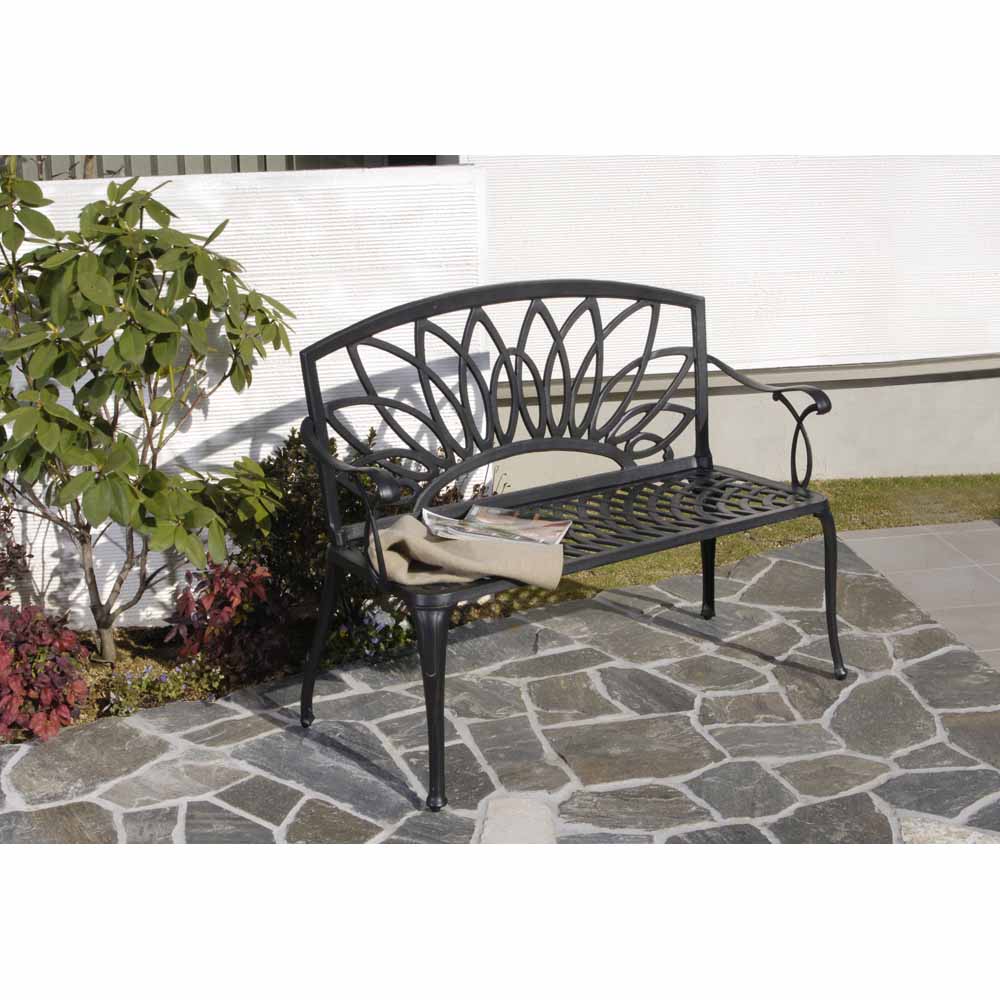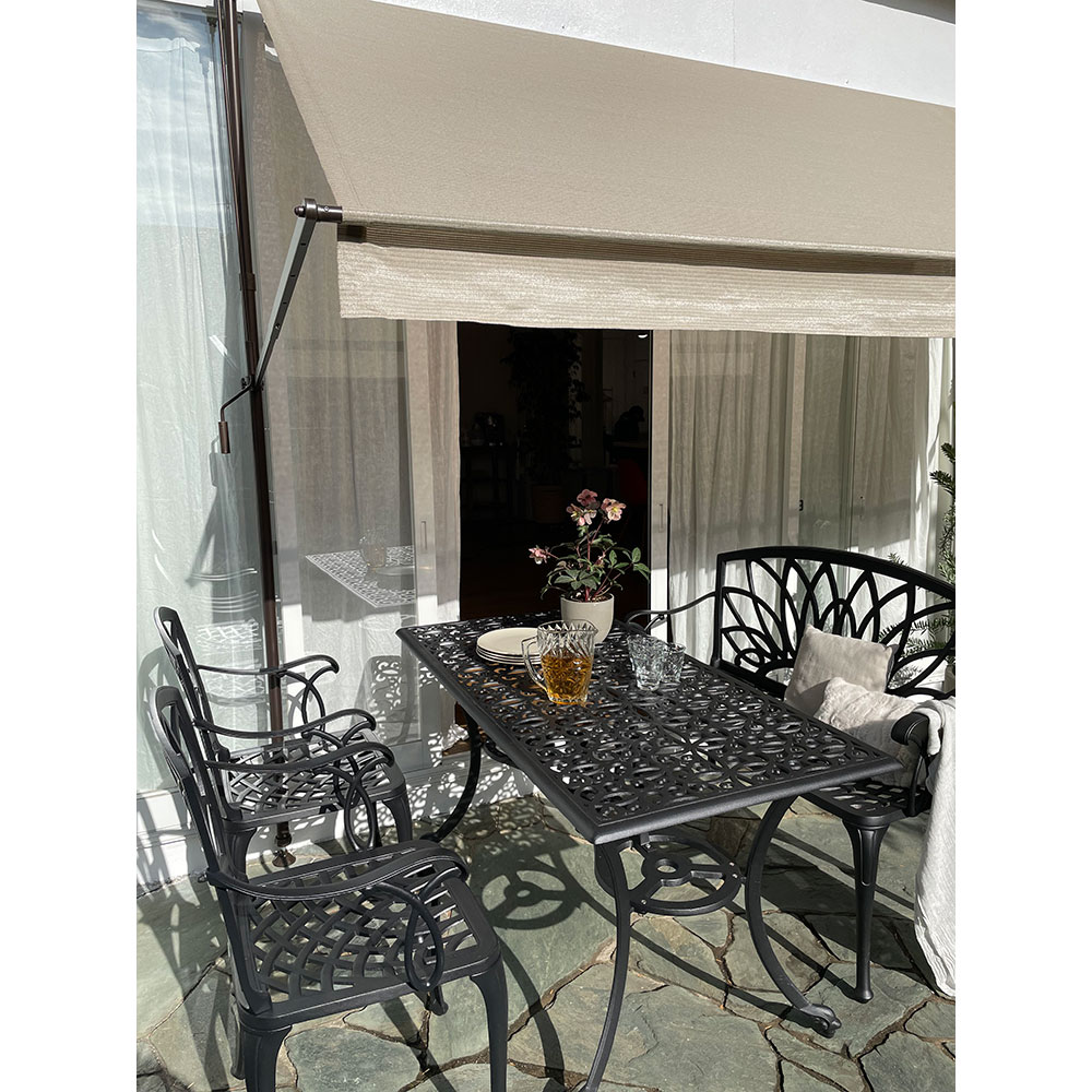 精緻な装飾模様が存在感を放つガーデンファニチャー4点セット。重厚感あるブラックの色合いが、緑豊かなお庭の素敵なアクセントに。お庭をシックで重厚感のある空間に演出します。多彩なアイテムを揃えているので、お庭や使い方に合わせたセットをお選びいただけます。エレガントテイストでまとめたガーデンを、さらにグレードアップする選りすぐりのガーデンファニチャー。ガーデニングのポイントとも言える大切なアイテム選びにもこだわりを。【鋳物(いもの)】鋳型に金属を流しこみ凝固させる伝統的手法により、工芸品のような独特の風合いを持ちます。鋳物ならではの細かな造形や重厚な雰囲気を持つガーデン用品は、格調高いガーデン作りに好適と言えます。