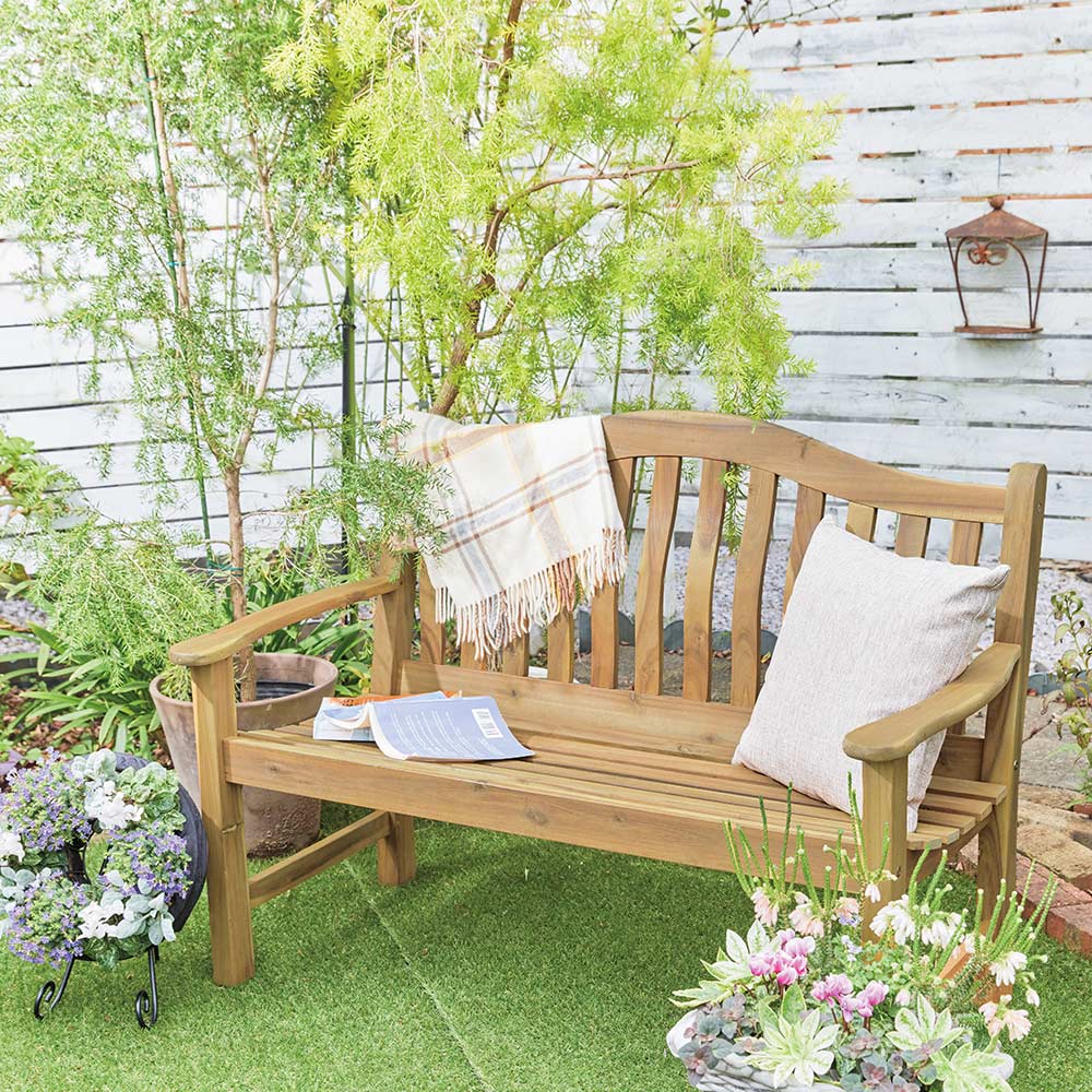 英国スタイルの優美な天然木ベンチ。デザインはもちろんの事、曲線がくつろぐ体にフィットするので座り心地が違います。つい座りたくなる、そんな一脚。◆英国のスタイルを感じさせる、優美なフォルムの天然木ベンチ。◆深みのある色合いと、重厚で高級感のあるアカシア天然木を使用。◆その風合いが活きる丁寧な仕立てが、あなたを上質な時間へと誘います。こだわりの座り心地◆背もたれから座面、アームへと優雅に連なる曲線が一番のポイント。◆デザインはもちろんの事、曲線がくつろぐ体にフィットするので座り心地が違います。◆春夏秋冬の移り変わりを、ぜひこのベンチからお楽しみください!お庭の休憩スポットとして◆ヨーロッパのガーデンシーンでは、定番となっている天然木のベンチ。◆ガーデンスペースを全体で楽しめ、見守れる場所として大きな役割を持ちます。◆象徴となる重要なアイテムだからこそ、選んでいただきたいベンチです。