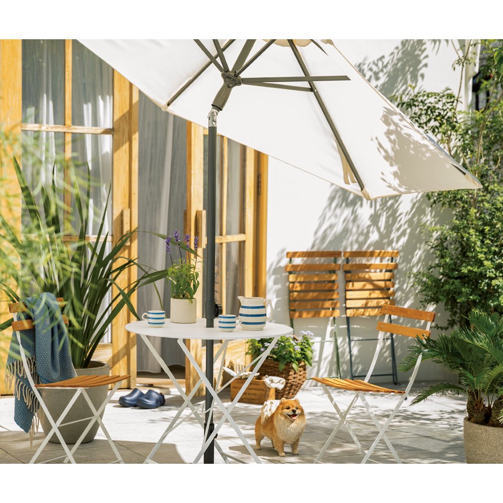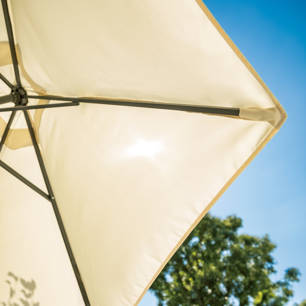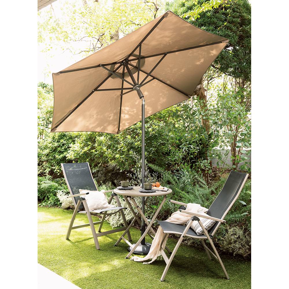半日陰にも合うような、モダンで馴染みやすいカラーリングは天候・時間にとらわれずお庭に日陰とアクセントを。ガーデンスペースに径250cmのこだわりが咲く、オススメのパラソルをご紹介!【パラソル・オーニング】◆ファブリックを用いたガーデンパラソル・オーニングは、お庭のアクセント・フォーカルポイントとしての機能もあわせもちます。◆ガーデニングプランに合わせた、お気に入りの一品をぜひこの機会にお選びください。※お手持ちのテーブル・パラソルベースにセットしてご利用ください。※シリーズ対応のパラソルベースも別途販売しております〜お庭に合わせた、オシャレな日陰を作る。〜◆半日陰の雰囲気にも合わせやすい、ややシックでモダンなカラーリング。◆天候や時間にとらわれず、空間を演出し続けてくれるのが新たな魅力。◆爽やかなイメージの多いパラソルですが、鮮やかすぎてお庭で浮いてしまうことも、、、。◆現在のお庭やテーマ、お気に入りのファニチャーに合わせた選択がポイントです。◆こだわりのオシャレを長く維持できるのが嬉しい、径250cmアルミ素材のパラソルです!※地面から傘下までの高さ約199cmサンシェードとしての機能性◆傘部分のみ、30度の角度調節が可能です。◆傘を傾けるだけの簡単な操作で日光を遮れます。◆動く陽に対して、パラソルベース・テーブルセットごと動かす手間が解消!◆支柱(径3.5cm)がアルミ素材なので、揺れへの心配も大きく軽減。※2階以上には設置しないでください。※強風時は使用しないでください。UVカット率は約95%以上、はっ水加工のパラソル生地仕様。◆はっ水加工でしっかりと雨水も弾き、雨宿りスポットとしても。◆雨の日の、いつもとは違った表情のお庭を鑑賞する新たな楽しみを。◆もちろん晴天の日には、日焼けを気にすることのない日陰を作ります。◆ブラック・オフホワイト・カーキ・ネイビーの4色からお選びいただけます。