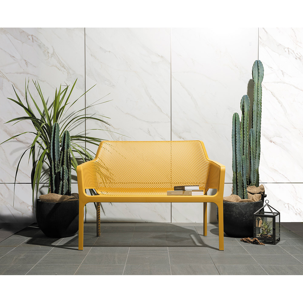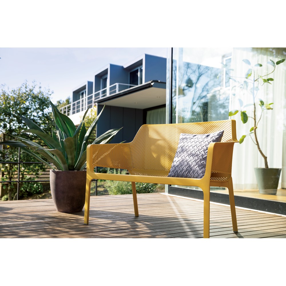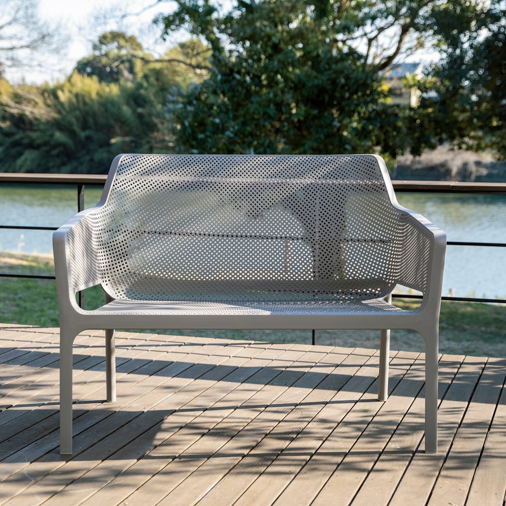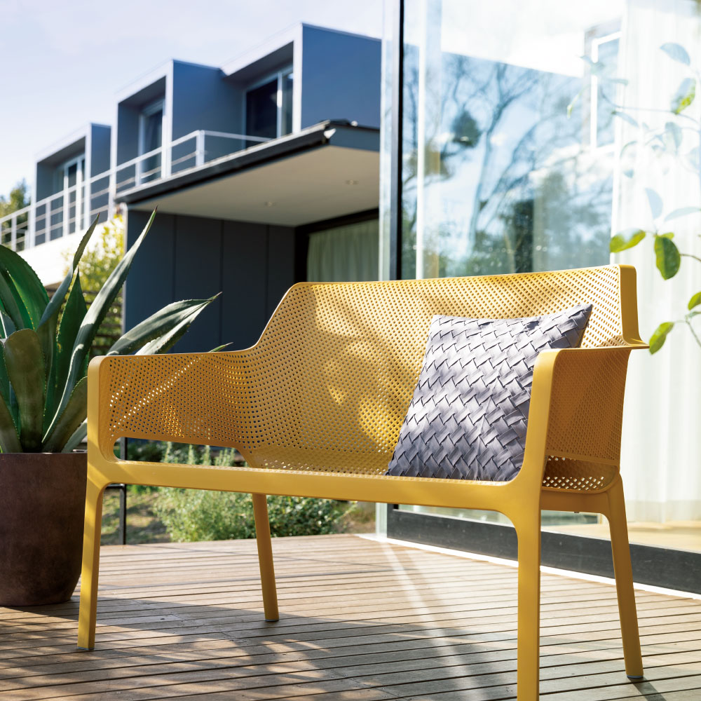イタリアのデザイナーズブランド発、洗練を極めた屋外用ベンチ。軽くて扱いやすく強度にも優れ、汚れてもサッと拭くだけ。樹脂製品に定評のあるイタリアの伝統が息づくハイグレードなお洒落チェアです。NARDI / ナルディ◆ヨーロッパ屈指のリゾート国であり、インテリアの国としても名高いイタリアで25年以上続くデザイナーズ屋外家具ブランド。◆耐久性の高いプラスチック素材を使用し軽量で扱いやすいことから、本国ではバール(カフェ)などでも多く使用されています。◆100% made in Italyにこだわり、品質が高く合わせやすいマットなカラーバリエーション。◆Adi Design Index、Red Dot Design Award、Good Design Awardなどの国際的な賞を受賞し世界100カ国以上の商業施設やホテルなどで使用されています。異国スタイルを自宅の庭で◆イタリアのリゾート・バケーションを彷彿とさせ、気軽でありながらも上質さを感じるファニチャー。◆接地脚部分にラバーキャップがあり接地脚が傷つけてしまう心配も少ない計算された設計。◆デッキや芝生、タイル・コンクリート面が多いベランダやテラスにも相性抜群。◆スタッキング可能でコンパクトに収納も可能。◆耐久性の高いプラスチック素材◆木製に比べ朽ちず・ささくれもなく、雨が続く季節でも速乾性を発揮。◆スチール・アイアン系に比べ、気温による座面の温度影響が少なくさらりとした座り心地。◆壁・床面に馴染みやすく設置場所を選ぶ事無く、しかも軽量で移動自体もラクラク。気軽だけれど上質な存在。◆質感があり、マットで落ち着いたカラーバリエーション。◆光を反射せずに吸収するカラーは世界共通のオシャレさを感じます。◆空間にしっくり溶け込み外壁の色・床材の配色に関係のない演出派の屋外ファニチャー。◆シンプルな形状だからこそのモダン感が、こだわり感じる空間へと変貌させます。
