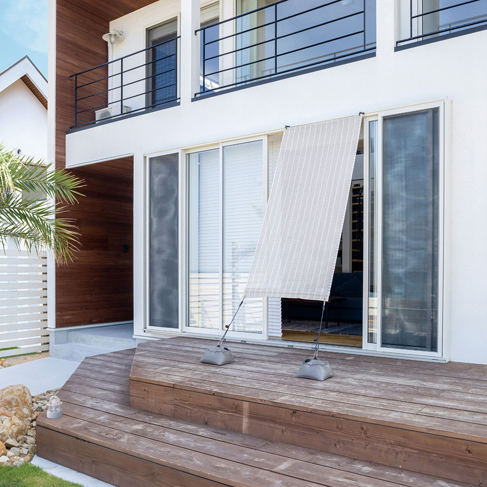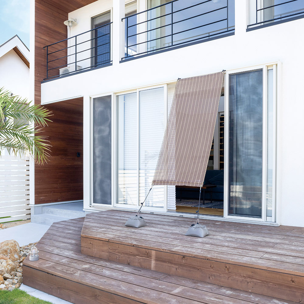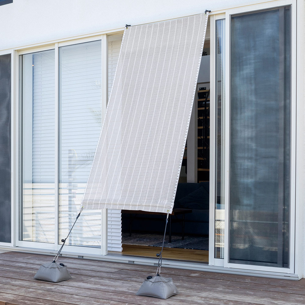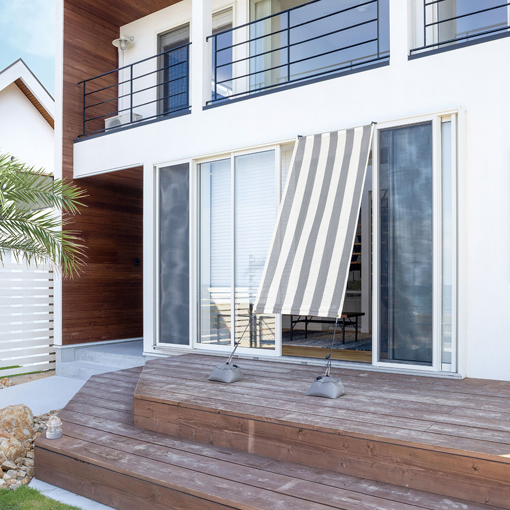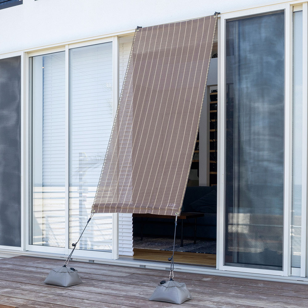 使用イメージ(ウ)ブラッシュウッド 幅90×丈200cmのコンパクトサイズは、ベランダ窓などのひさし代わりにも。