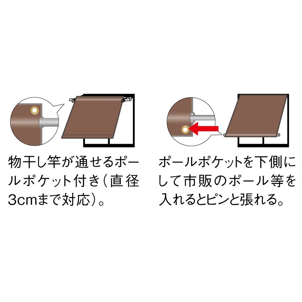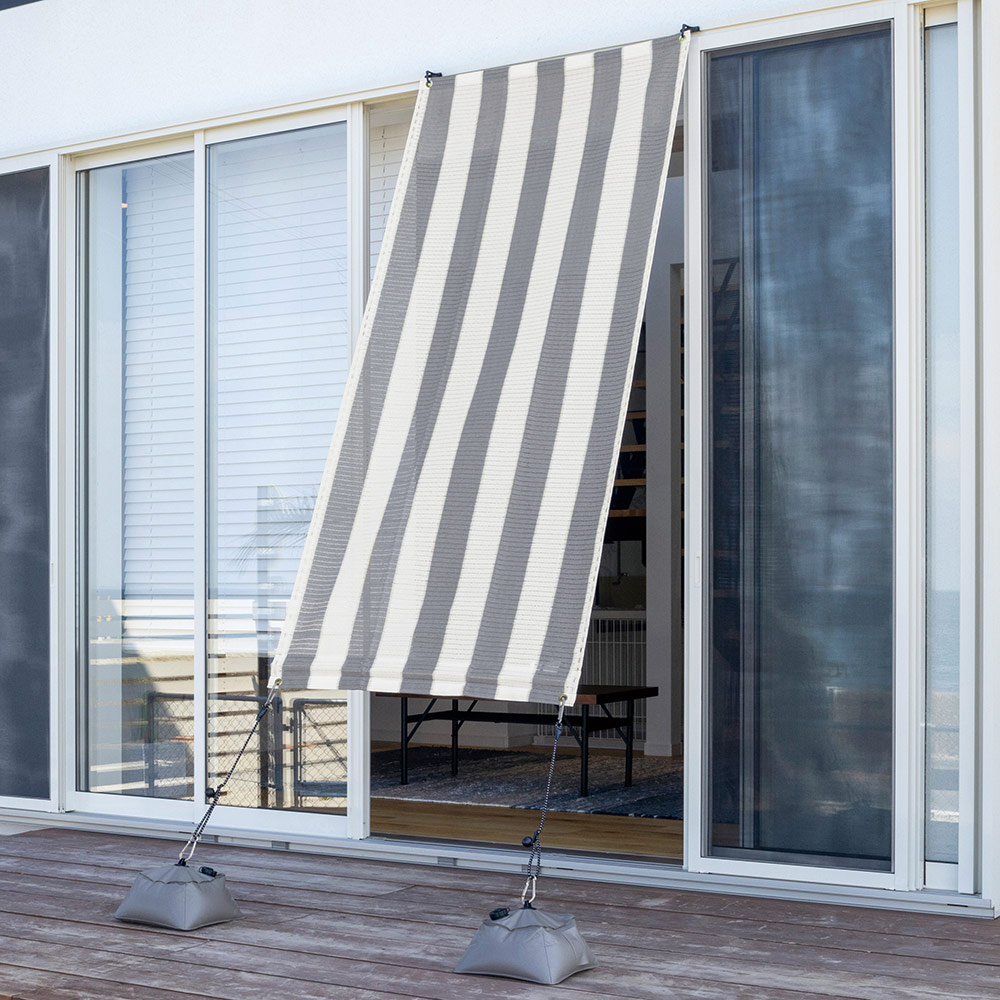 住まいをシックにドレスアップ。お洒落でロープライス、タフ素材で機能充実。紫外線をしっかりカットして風はほどよく通します。設置は簡単、ひもで固定するだけ。