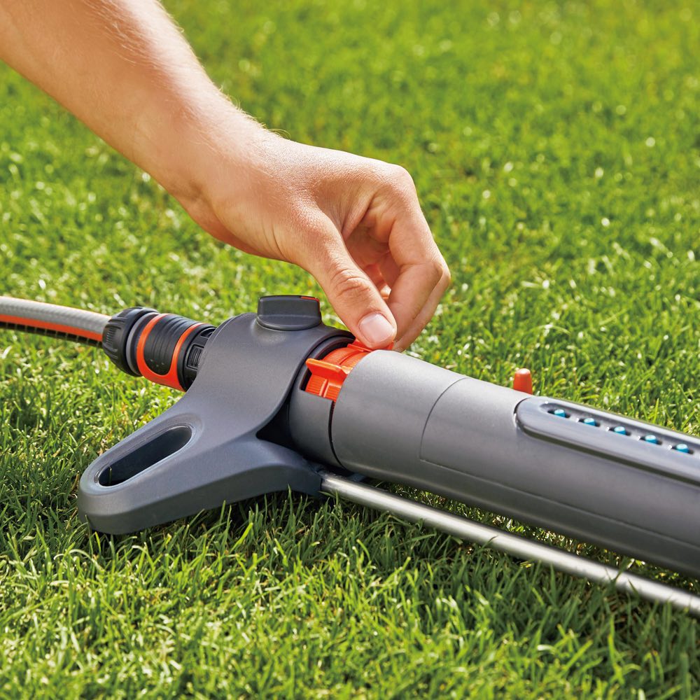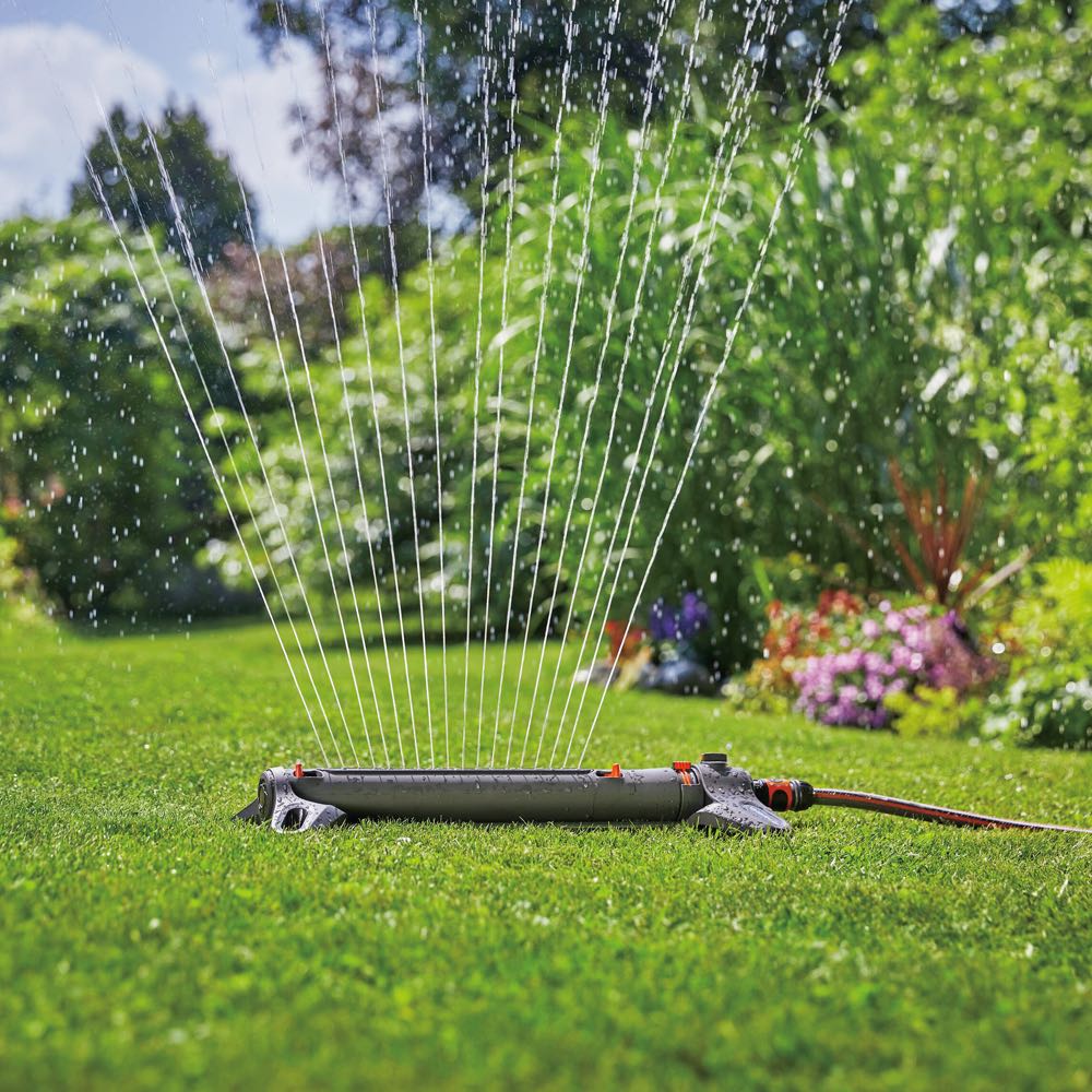 電源不要の水まきスプリンクラー。水圧で左右に首を振って均等に散水。乾燥期の芝生も生き生き育てられます。散水する範囲は簡単に調節可能。ドイツの園芸用品のトップブランド〈ガルデナ〉の製品です。 スプリンクラー部分のみのお届けです。使用の際は市販やお手持ちのホースコネクタに接続してください。 冬場は凍結による故障の恐れがあるため、取り外しての保管をおすすめします。