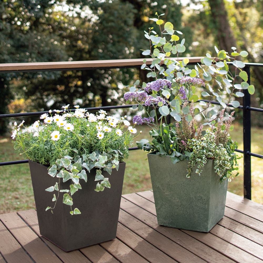 カナダ企画のエコなプランター。再生ゴム100%リサイクル素材で土や緑に調和する素朴な質感が魅力。カナダ・トロントに拠点を置くマルティホーム社の製品です。
