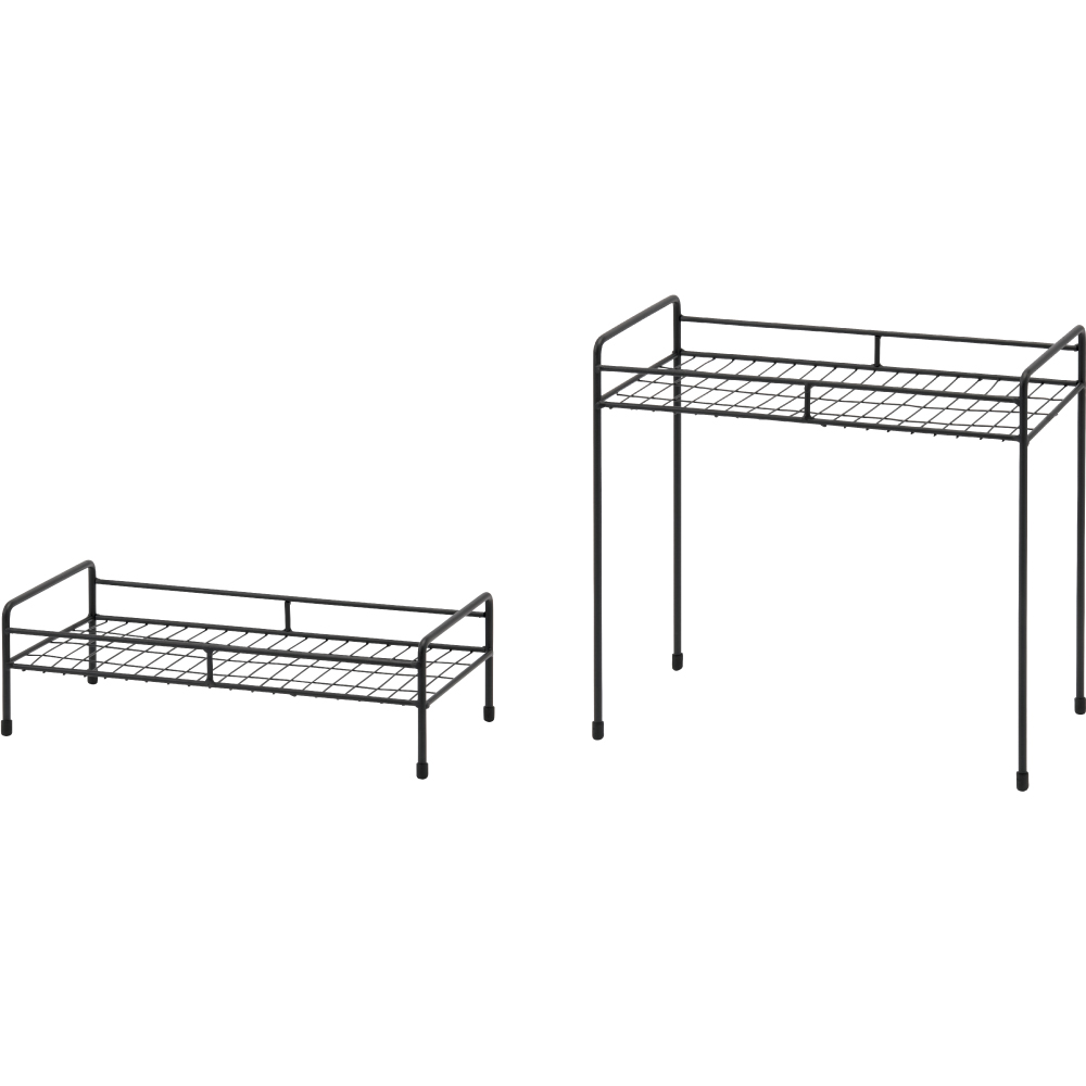 メッシュ状の置き台は細い脚を差し込むことができ、小と大サイズを組み合わせることで高低差をいかしたディスプレイを楽しめます。単品置きには丸形、複数置きには長方形がおすすめです。