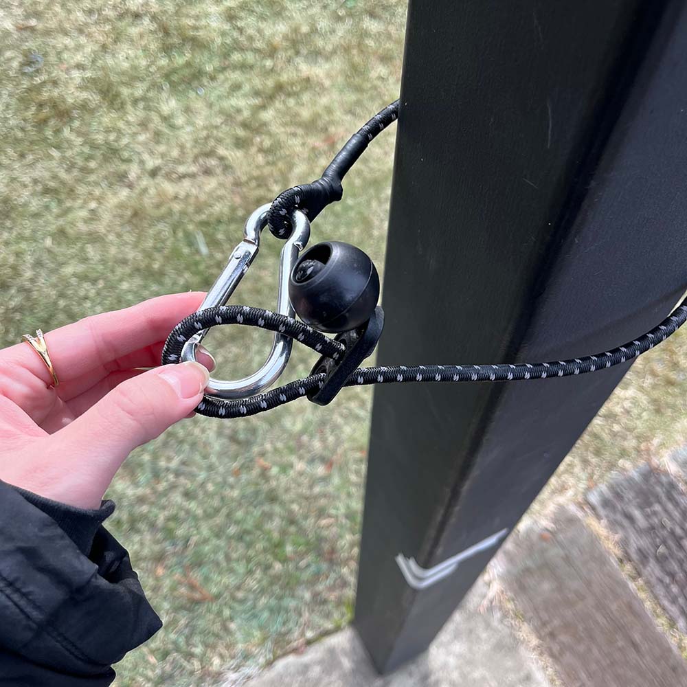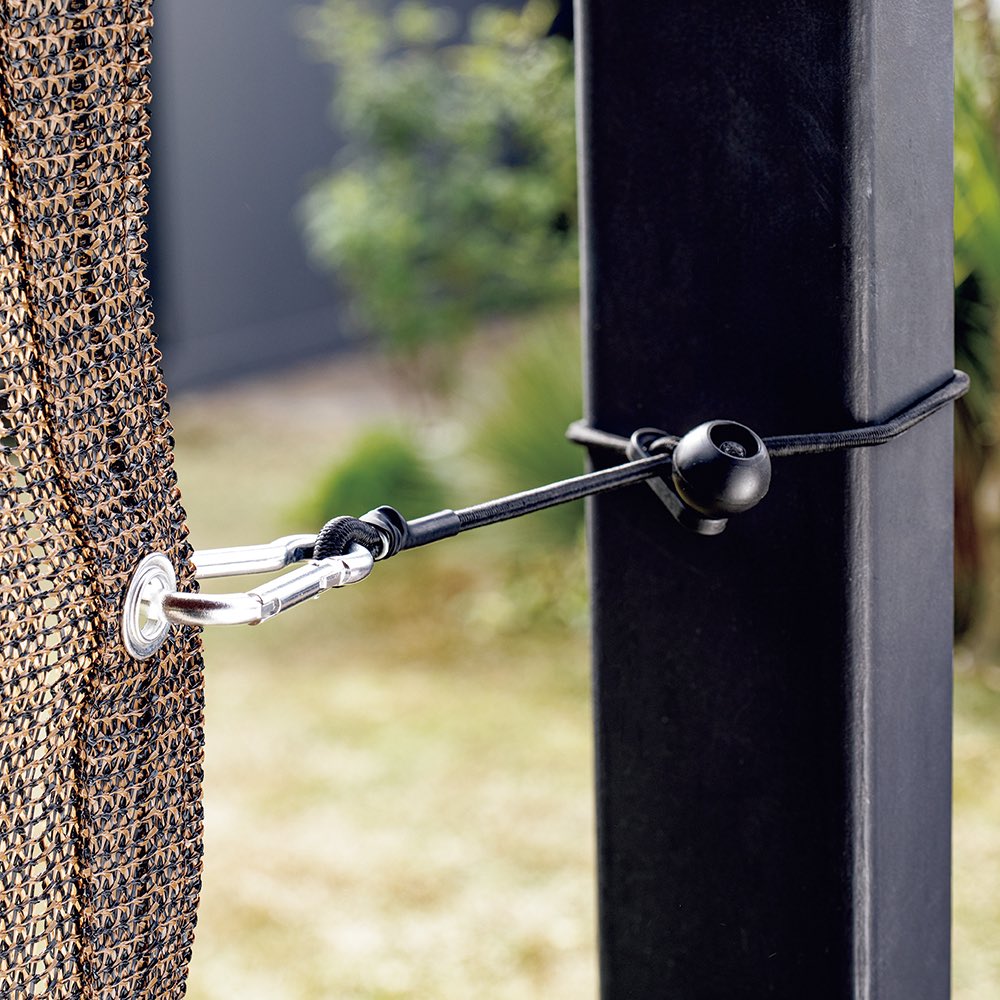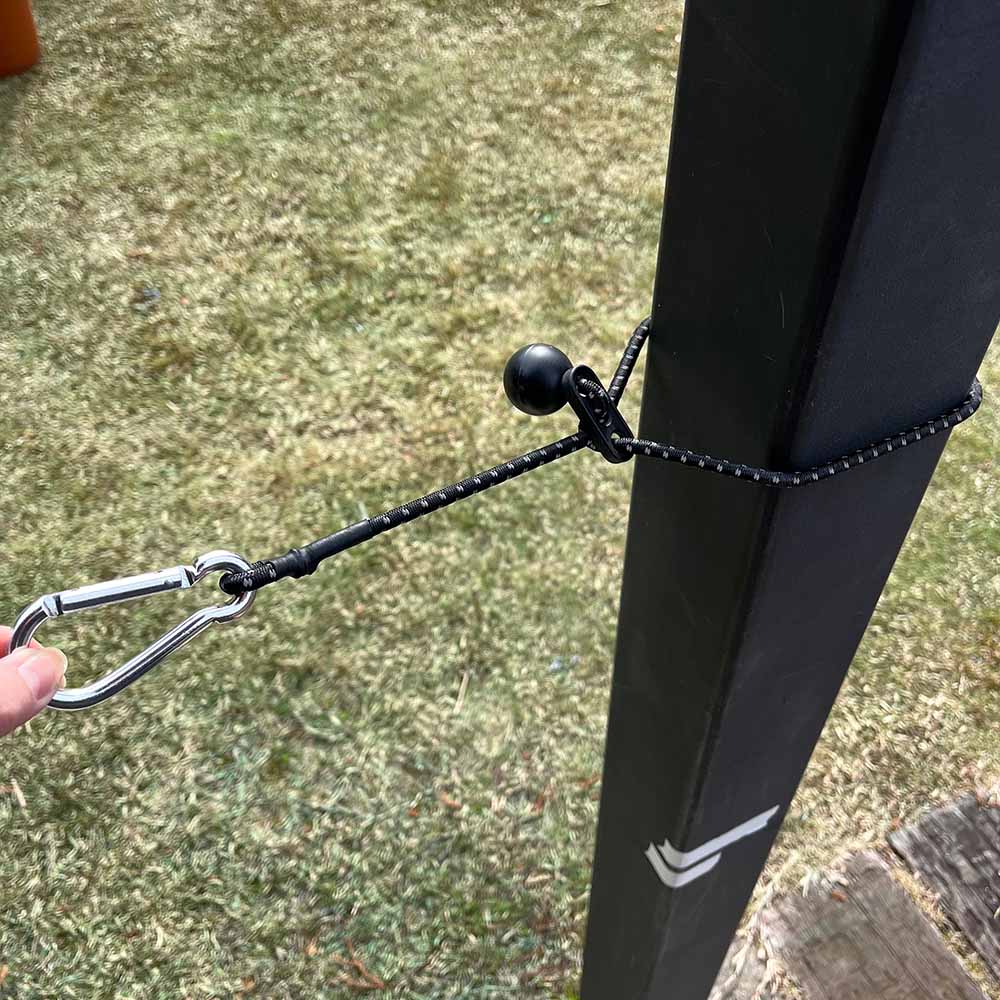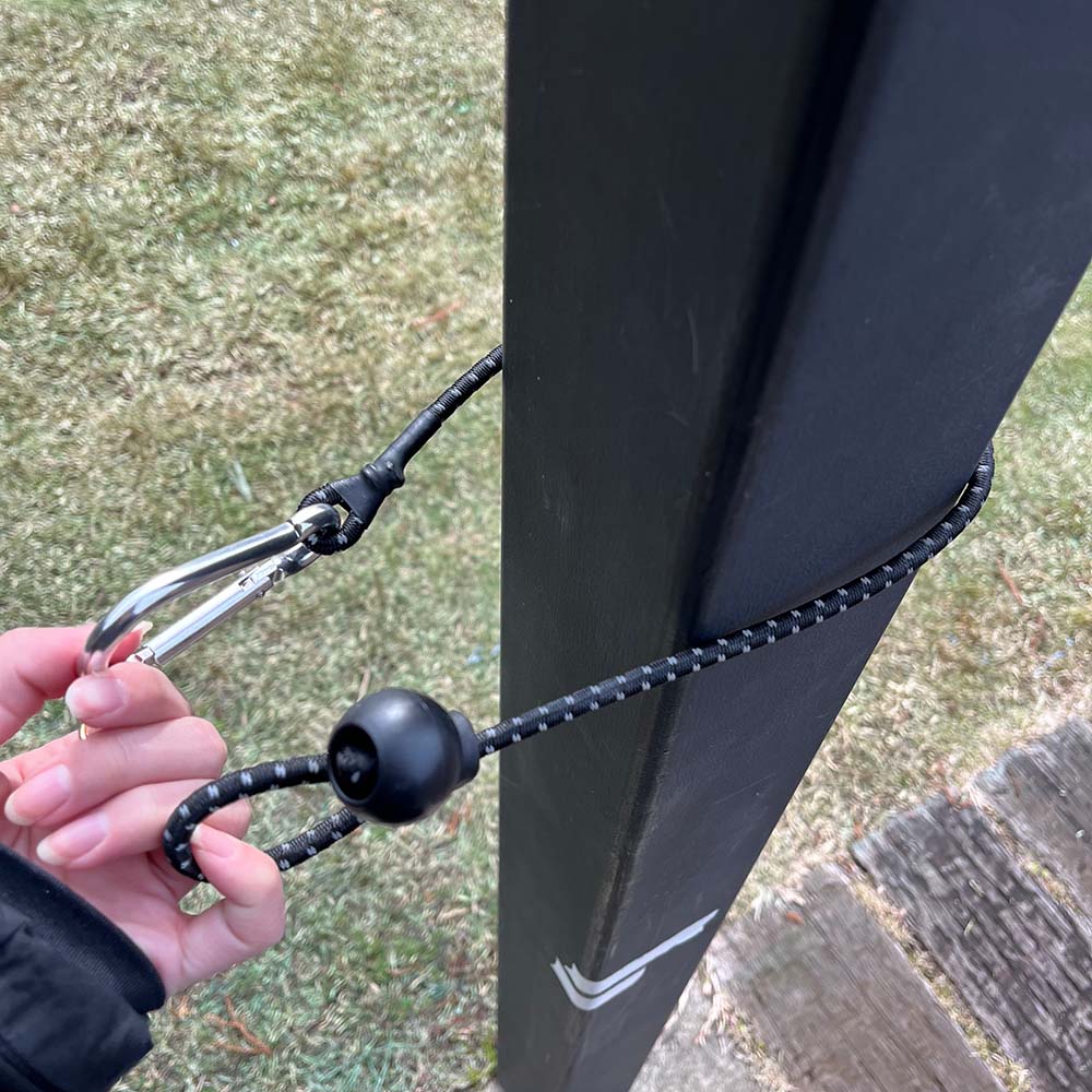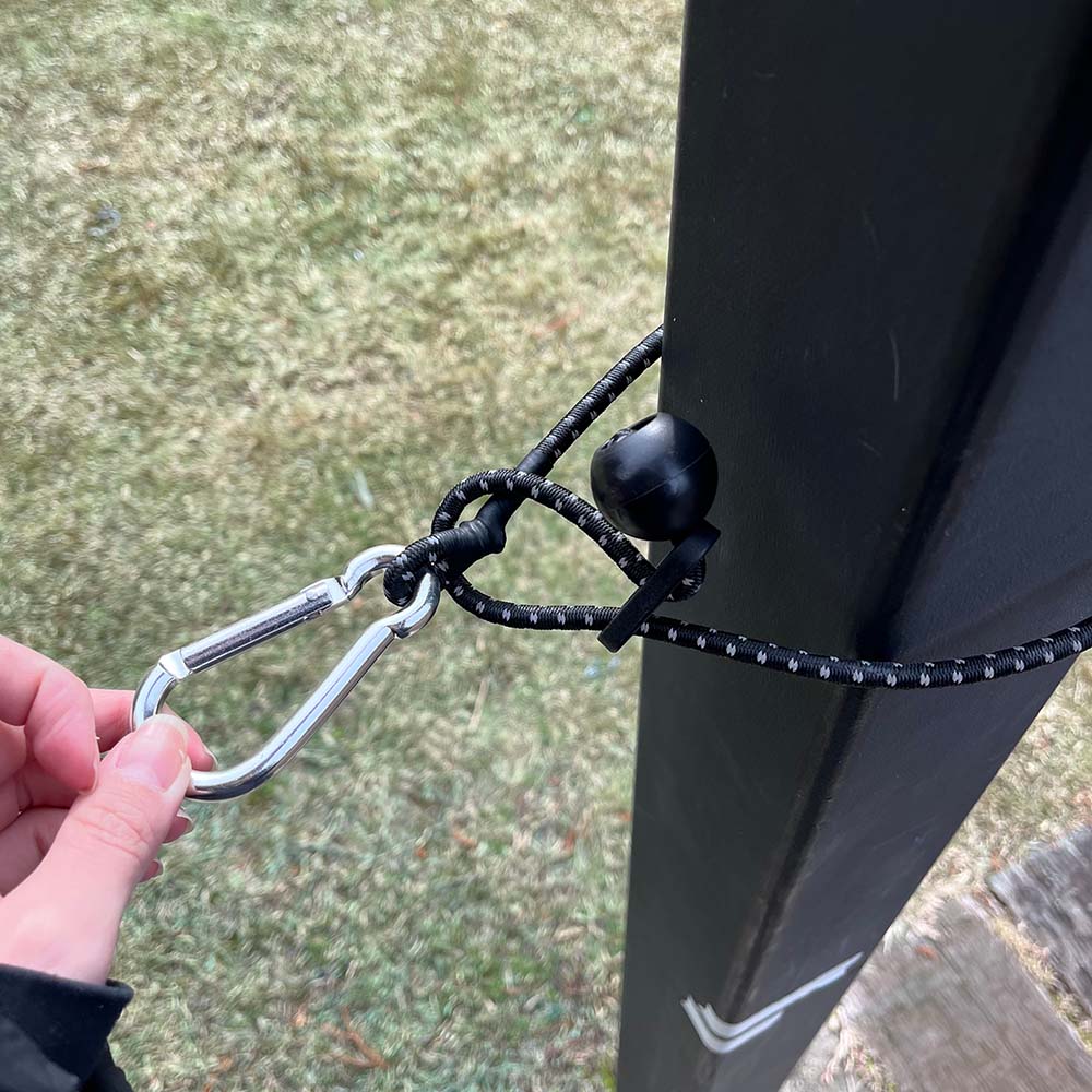 カーポートの支柱に付属のゴムバンドで結びつけるだけの簡単設置。