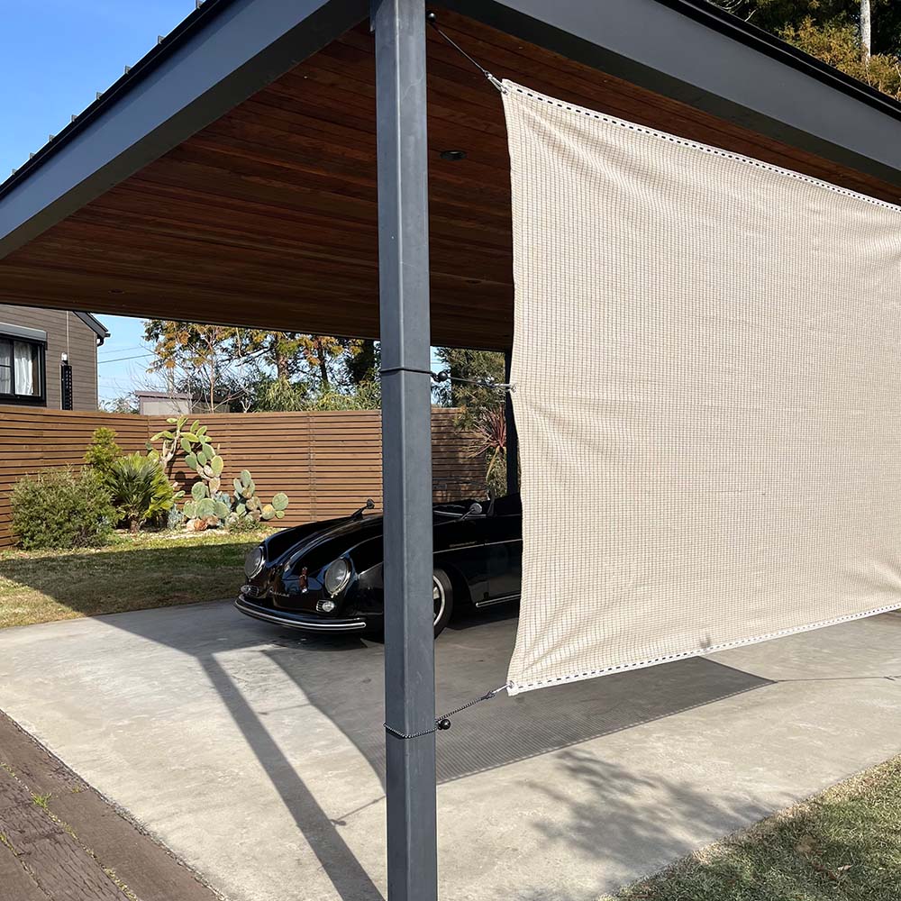 カーポートの愛車をガード。紫外線をカットして日焼け防止&ほどよい目隠し効果の2役で愛車を守ります。