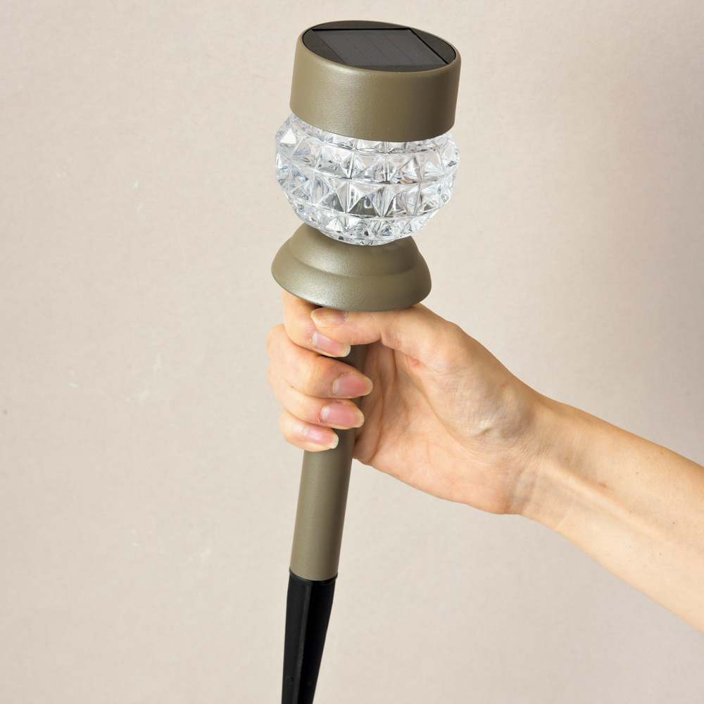 花壇やアプローチのアクセントにぴったりな小さめのライト。ポールは取り外し置くことも可能。