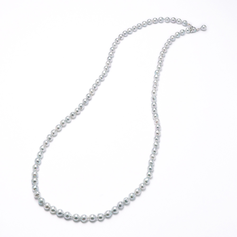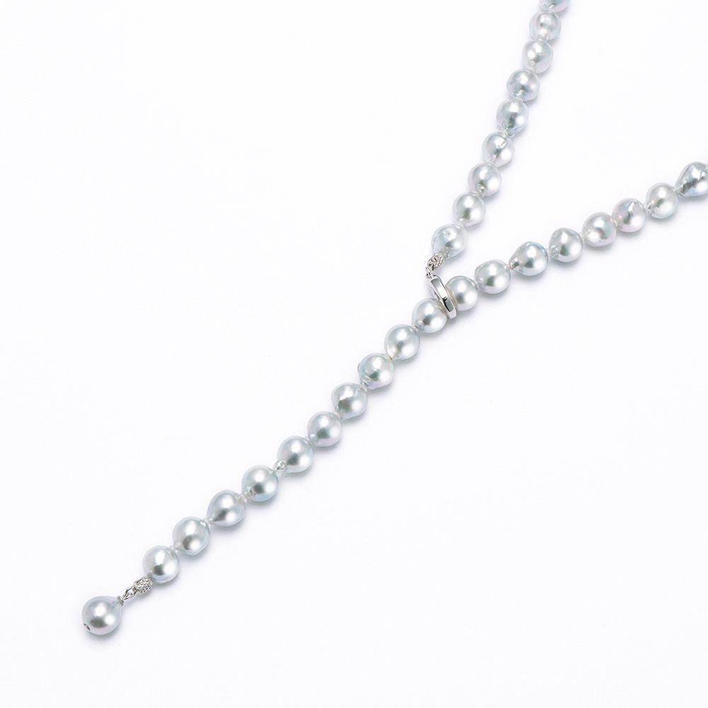 ATTRACTIVE PEARLマイ・スタイルと作り上げる魅惑のパール神秘の天然美としていつの時代も愛されるパール。希少性ゆえに纏う人の個性が際立つ羨望のアイテムをご紹介しましょう。シックな装いになじみ神秘的な華を添えるバロックパール。しかし希少性から価格が急騰、入手困難の一途をたどる中、早い時期からストックしていた貴重なパールをお届けします。青みがかったナチュラルカラーのアコヤのバロックパールを長さ違いで。80cmのロングはYタイプにも。