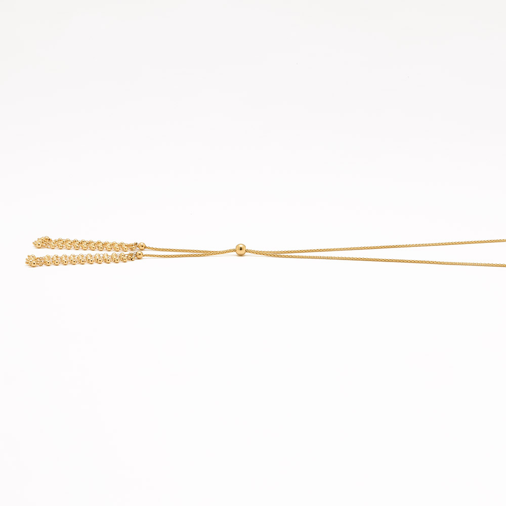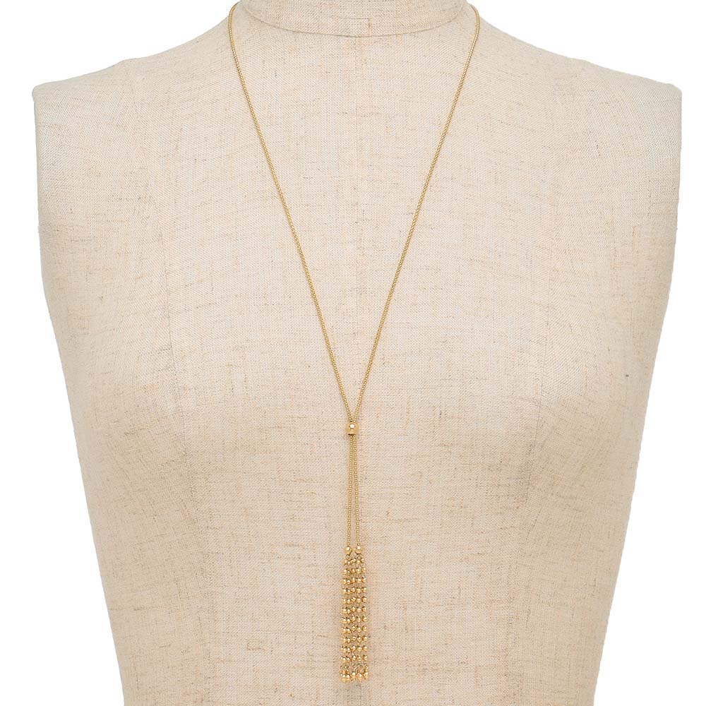 装いに旬を吹き込むジュエリー・トレンド洗練されたムードのカギとなる旬のジュエリーと、洒落て見えるアレンジ法で装いをアップデート。タッセルが揺れるたびに心も一緒にスイング動くたびにタッセルが揺れ、ミラーボールがキラキラと瞬くロングネックレス。そのドラマティックな煌めきに高揚感が湧きます。スライドボールで長さ調整ができるYタイプだから手軽にアレンジ可能。チェーンもタッセルに負けない存在感を放ち、胸元に光を集めます。華やぎと高い着け映え力を発揮する、ロングセラーのネックレスです。