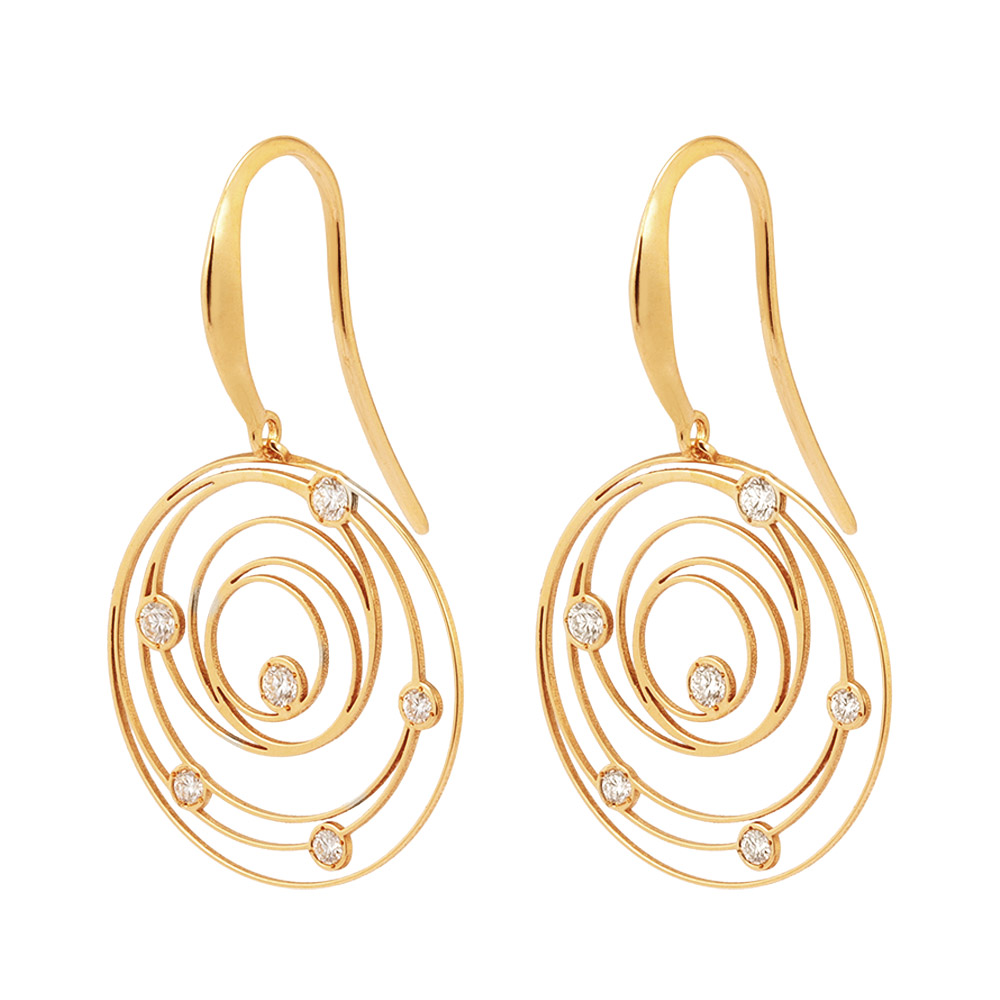 CAREER JEWELRYキャリアに寄り添う輝き。働く女性にとってジュエリーは、仕事への意欲や自信を高めてくれる存在。技を凝らした洗練ゴールドレーザーカットによるランダムな地金のサークルに、ちりばめられた強い輝きを放つダイヤ。エアリーなデザインを驚くほど薄く、軽い着け心地で楽しめるピアスです。