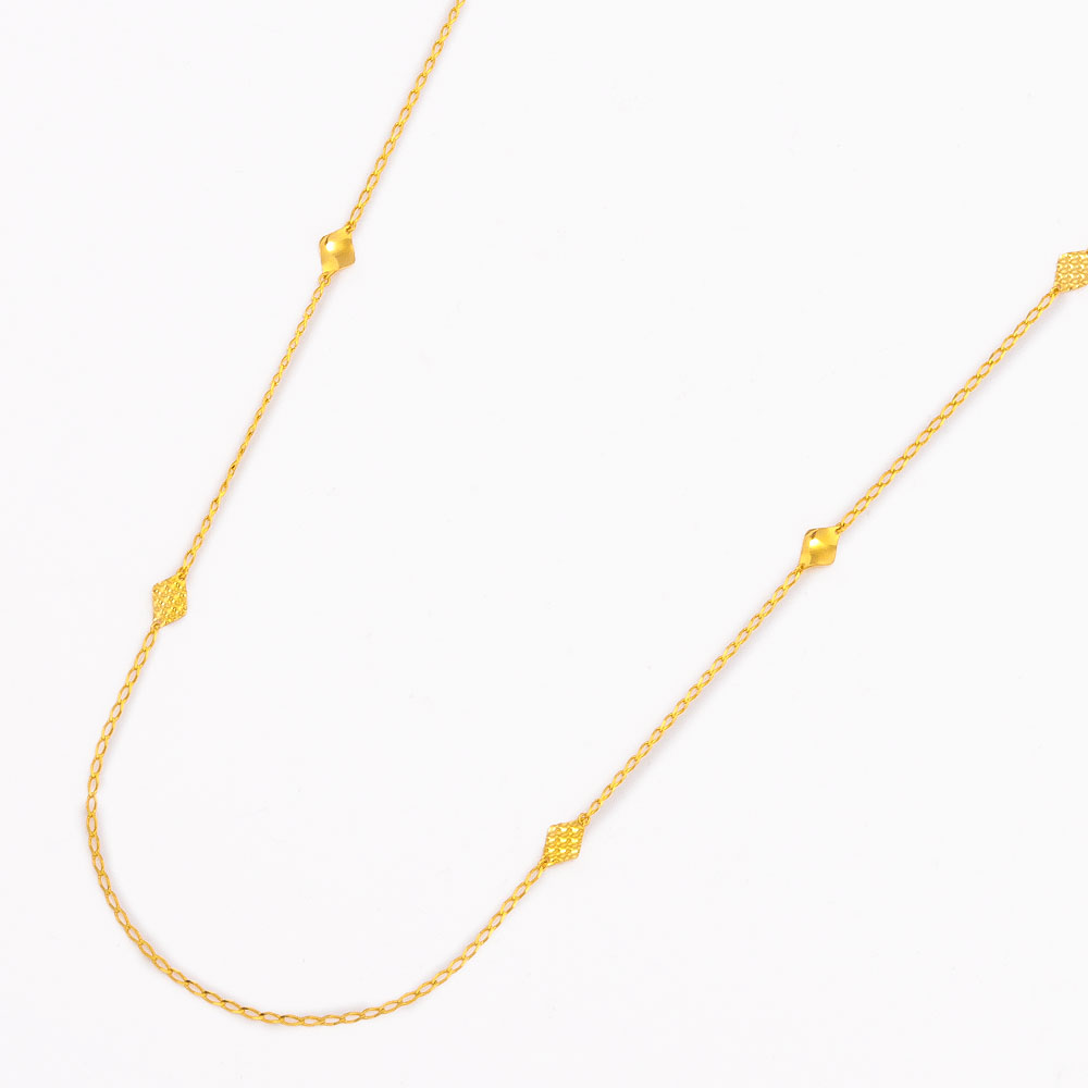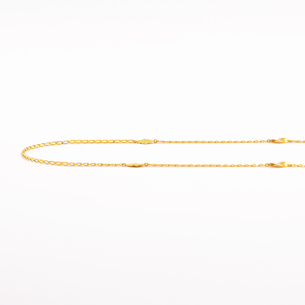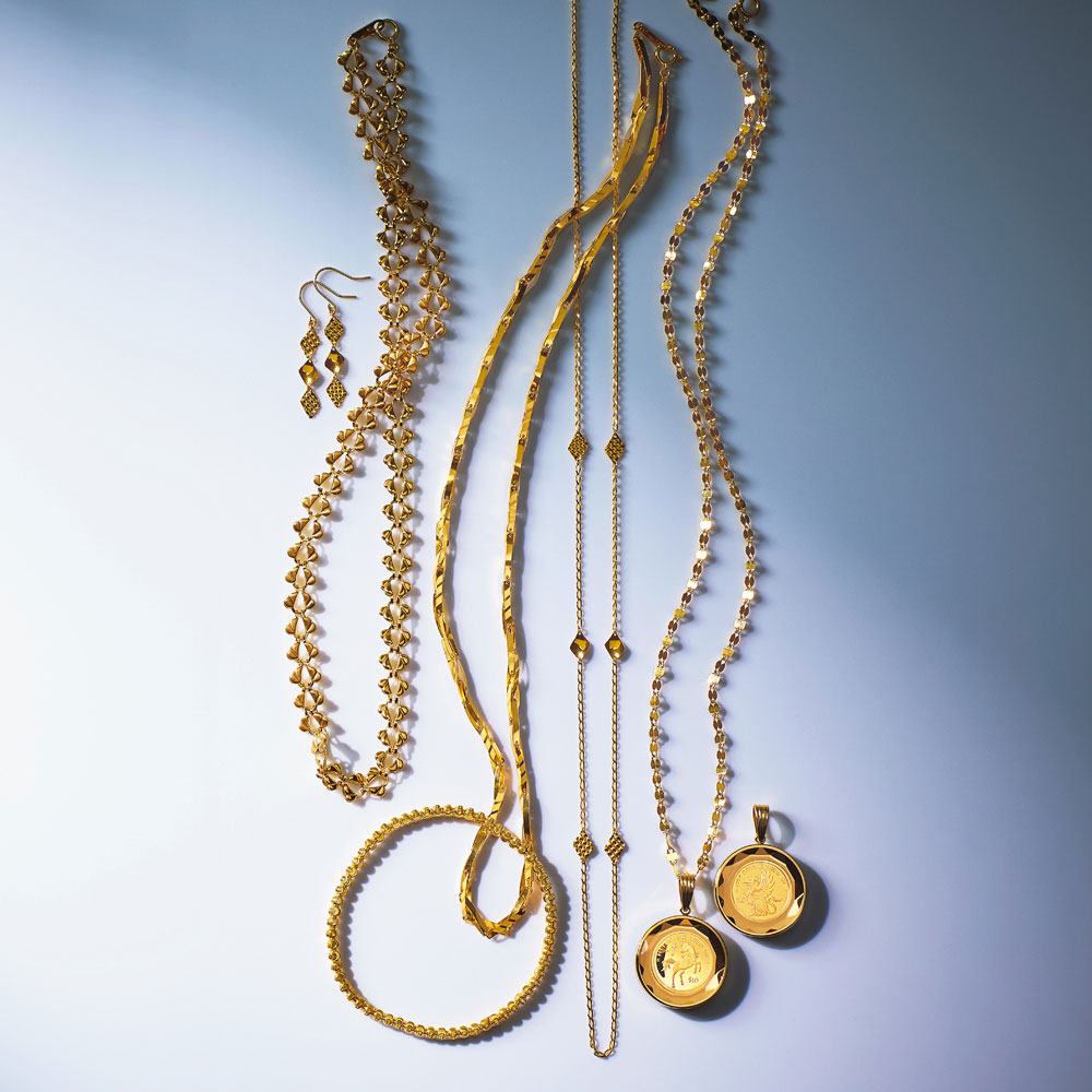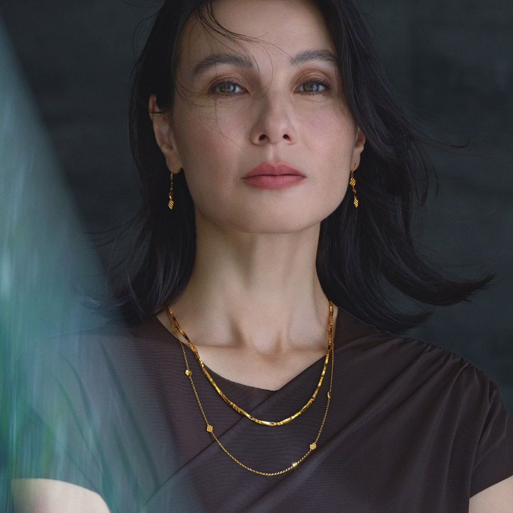 PRECIOUS RADIANCE普遍的な美との邂逅ジュエリーは、人生に喜びや楽しみをもたらす存在。それが、希少であればなおのこと心惹かれずにはいられません。自然環境の変化と共に出合いそのものが奇跡的になりつつある、普遍的な美しさを湛えたジュエリーをご紹介しましょう。豊潤な輝きを気ままに纏うのが大人の流儀ひと目で特別なアイテムであることがわかる、濃密な輝きを放つ純金。精緻な細工を施したジュエリーを重ねれば、自分だけのレア・ラグジュアリーを表現できます。凹凸のあるプレートとカットチェーン、煌めきの対比が美しいステーションネックレス。