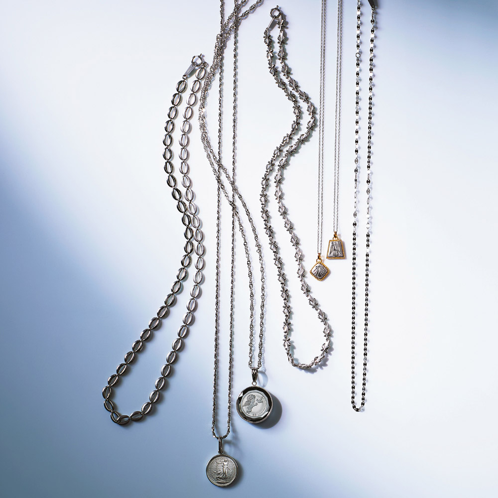 PRECIOUS RADIANCE普遍的な美との邂逅ジュエリーは、人生に喜びや楽しみをもたらす存在。それが、希少であればなおのこと心惹かれずにはいられません。自然環境の変化と共に出合いそのものが奇跡的になりつつある、普遍的な美しさを湛えたジュエリーをご紹介しましょう。純度の高い白い光が凛とした佇まいを叶える光を反射し華やかに煌めく純Ptペタルチェーン。