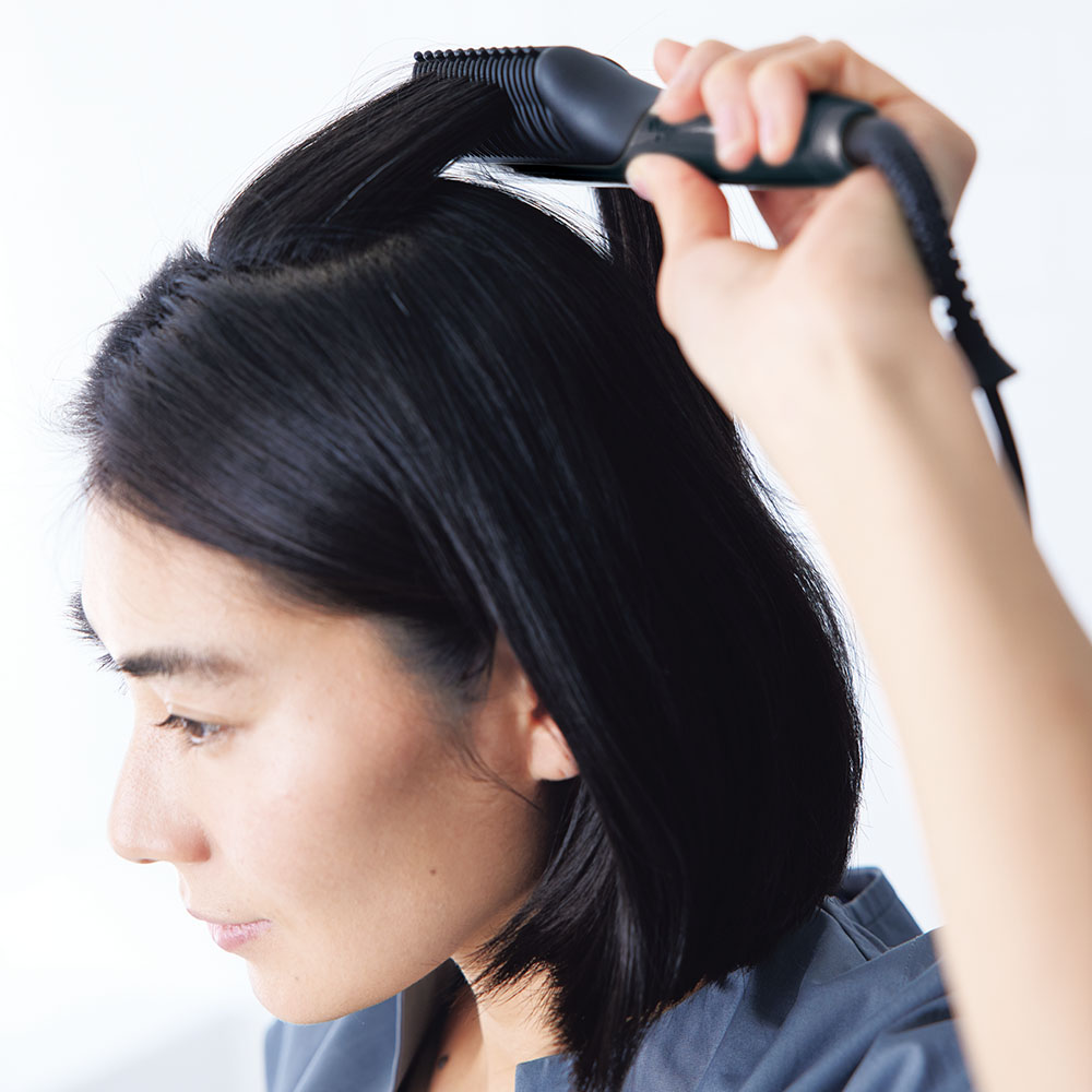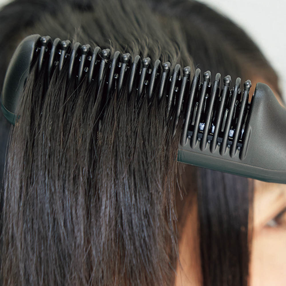 コーム形状で効率よく髪に熱を与え、スタイリングしやすく。