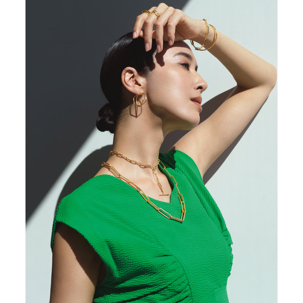 時計とのコーディネートに活躍するウノアエレのバングル。