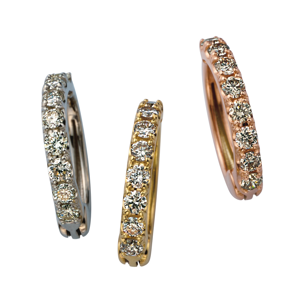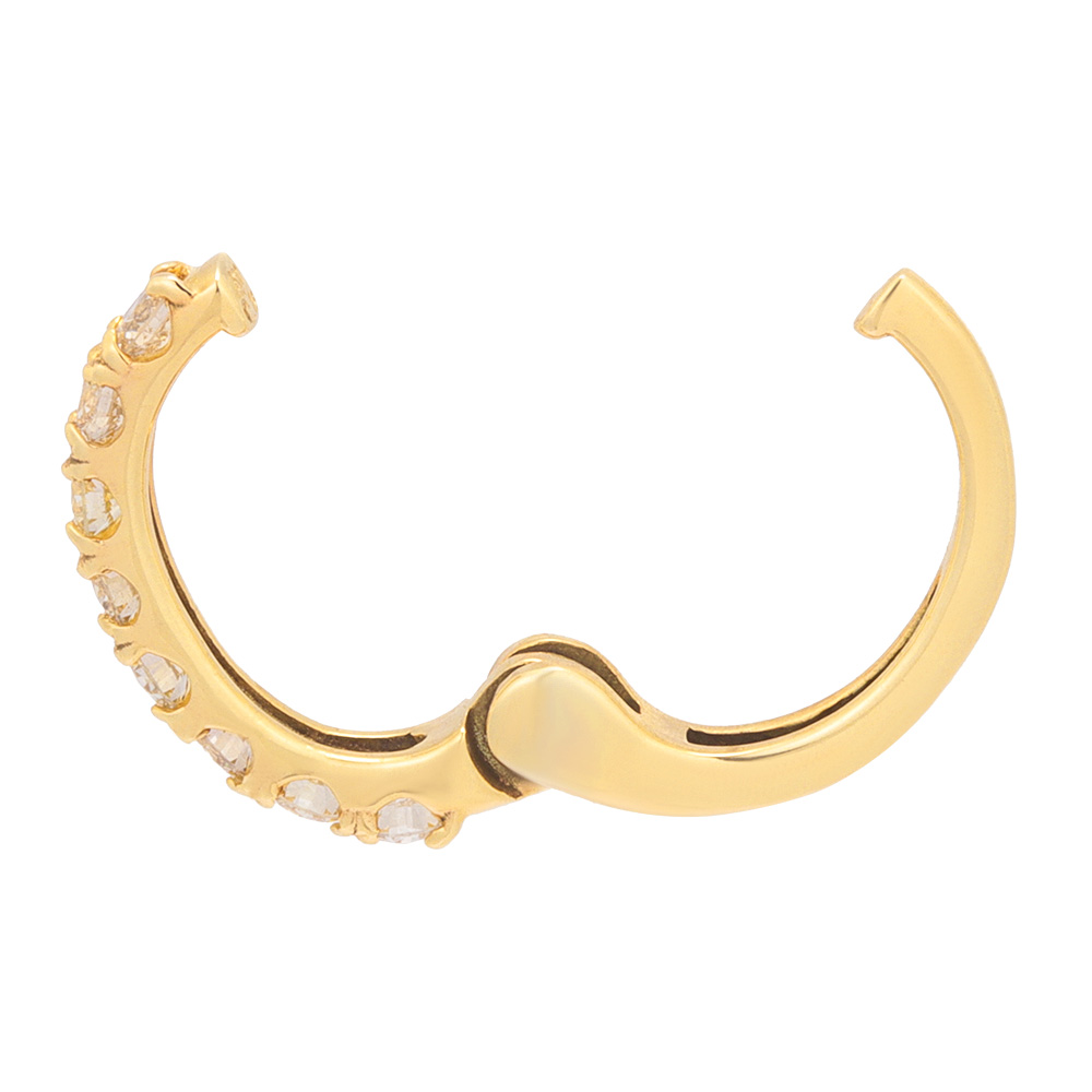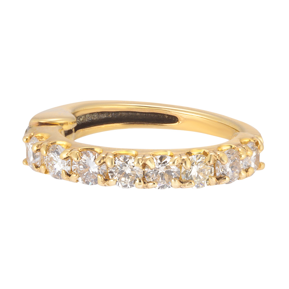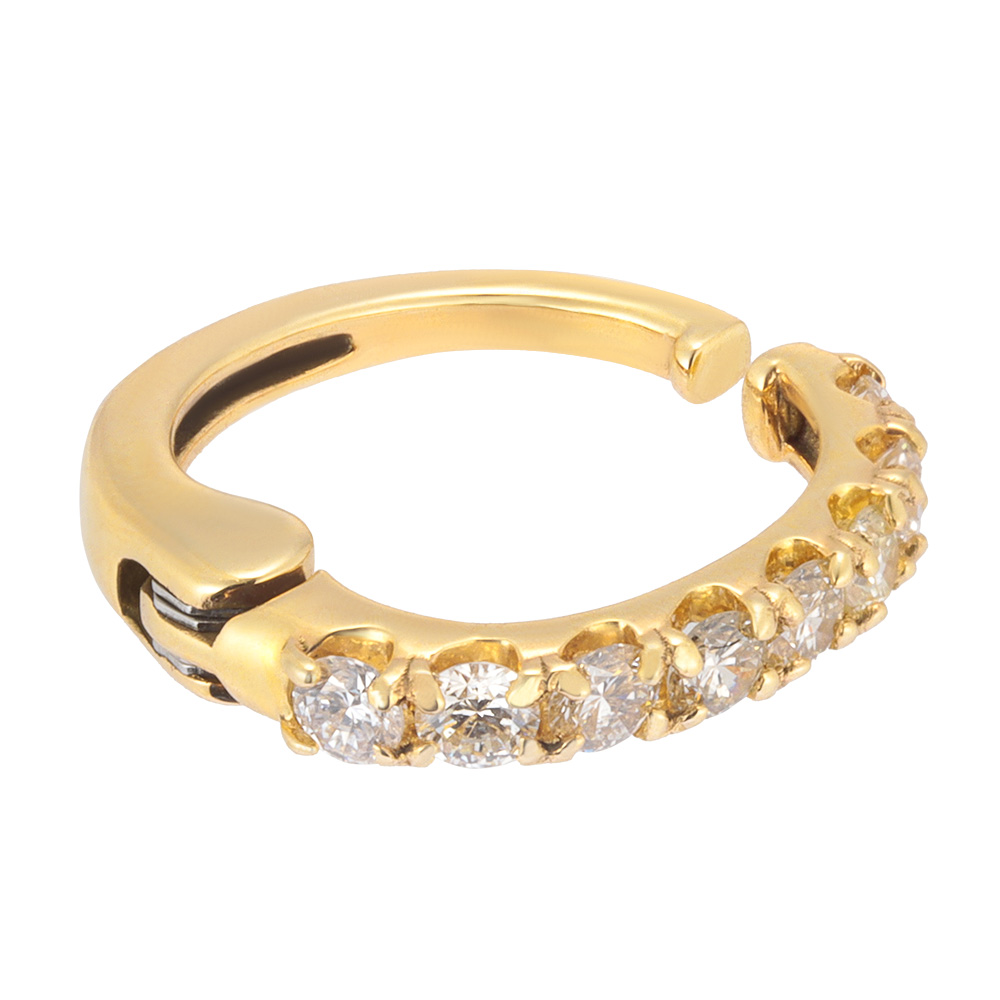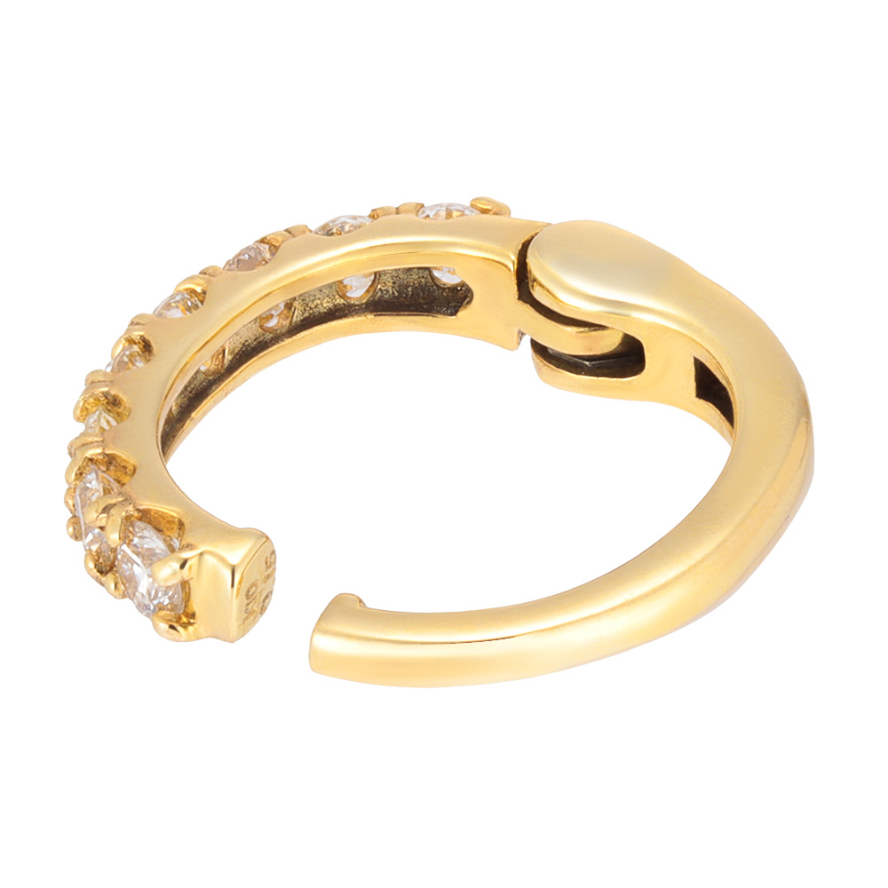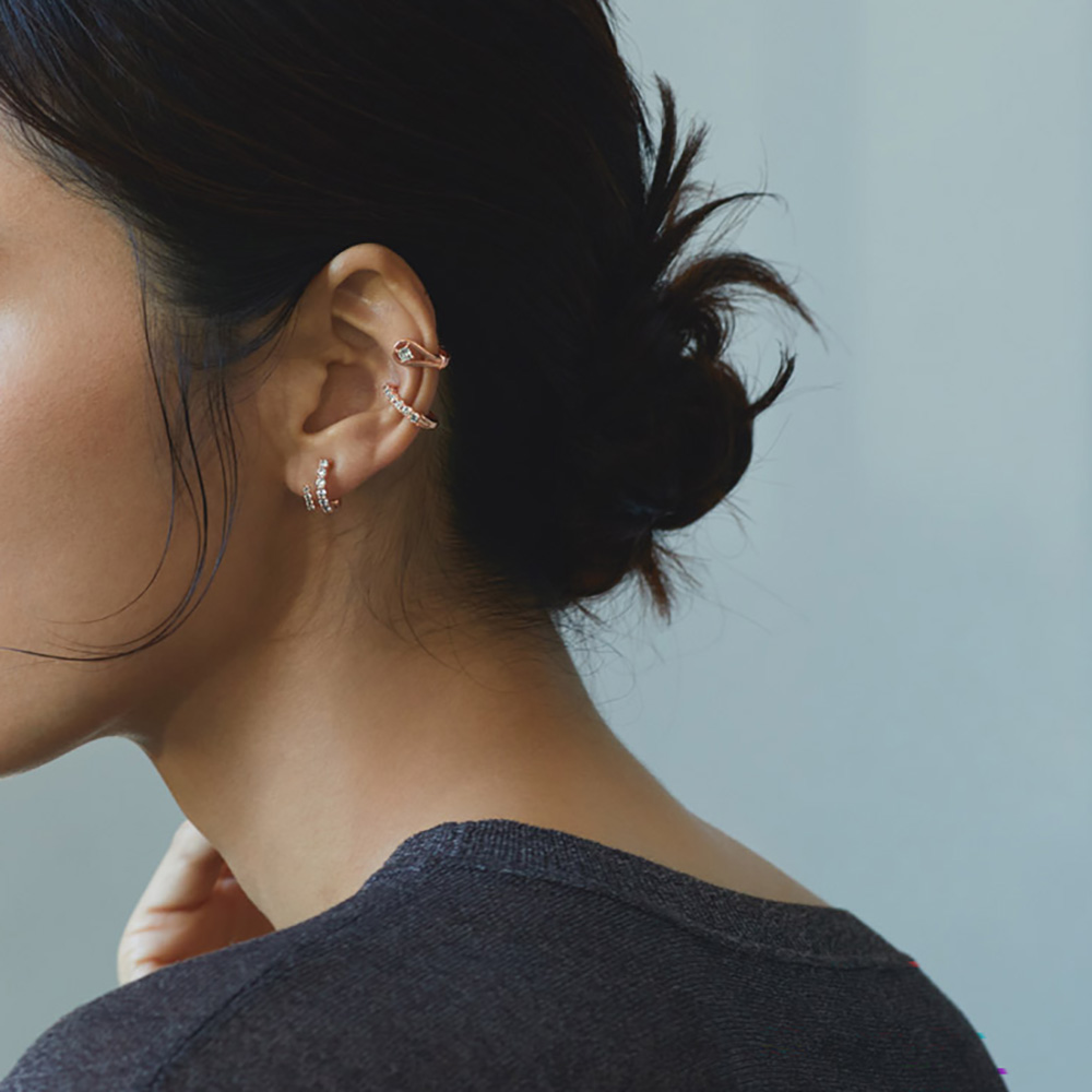 Diamond Ear Cuff耳たぶだけでなくアウトフレームにも留められるイヤーカフ。上品なモード感を授ける本格ダイヤ使い、挟み込み式で安心のホールド力。リーズナブルプライスも魅力です。レイヤードにおすすめのフープタイプ。