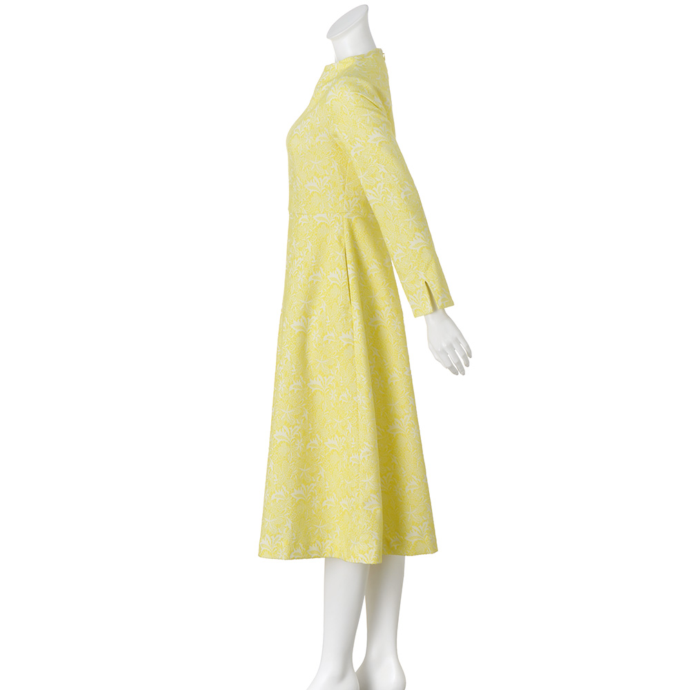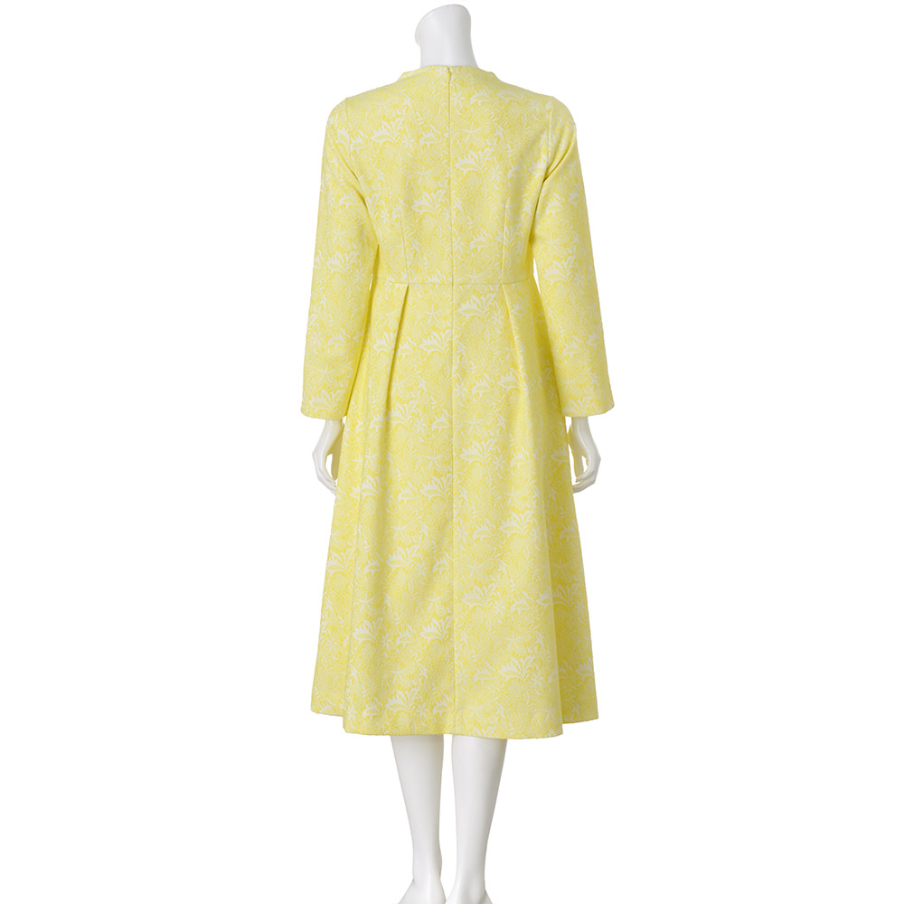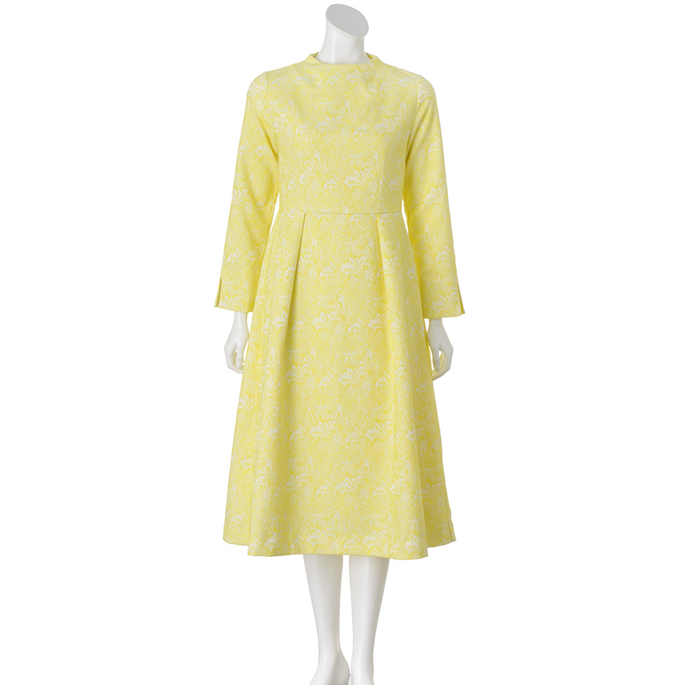 “抜け感”を楽しむ、品格きれいめスタイル毎日に寄り添いながら、きちんと感も華やかさも欲張れる。女性らしさを引き出し、品よく着映える「大人のおでかけ服」に、今年らしいエッセンスを加えました。淡いイエローで品よく着映え。美人オーラを放つ、春の主役ワンピース前シーズンも好評だったフィット&フレアのクラシカルなジャカードワンピースから、着映え効果が狙える新色イエローが登場。大きめタックでボリュームを出したフレアスカートと、コンパクトな上半身のメリハリあるシルエットが女性らしい一着。低めのスタンドカラーで首元を美しく。高めのウエスト切り替えで脚長効果も期待して。
