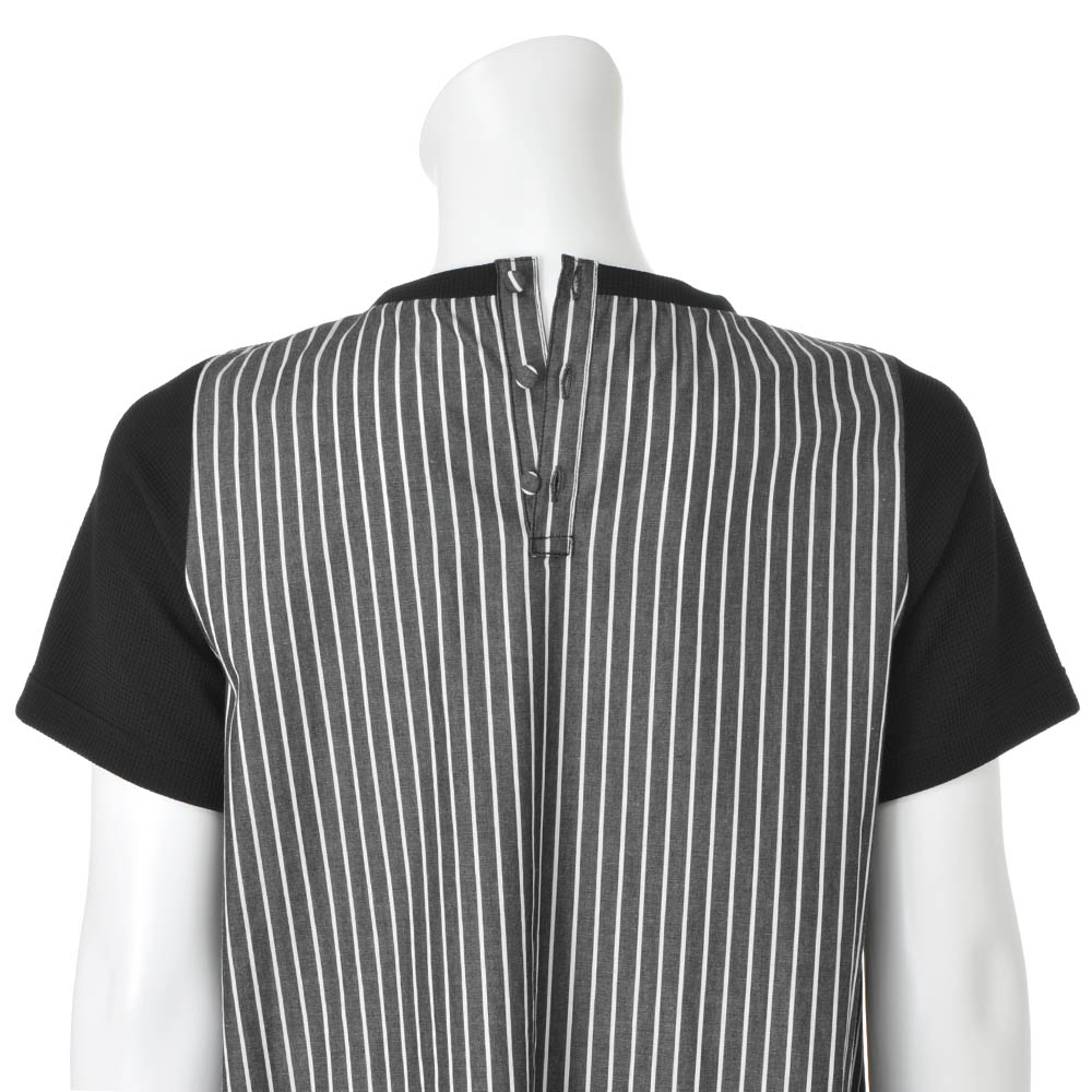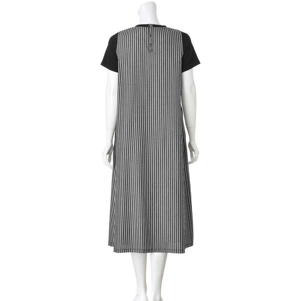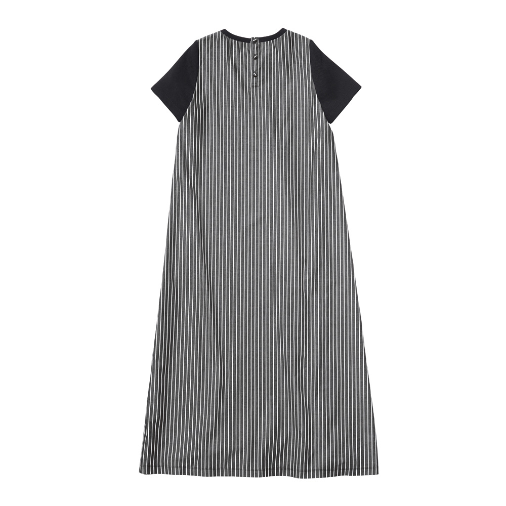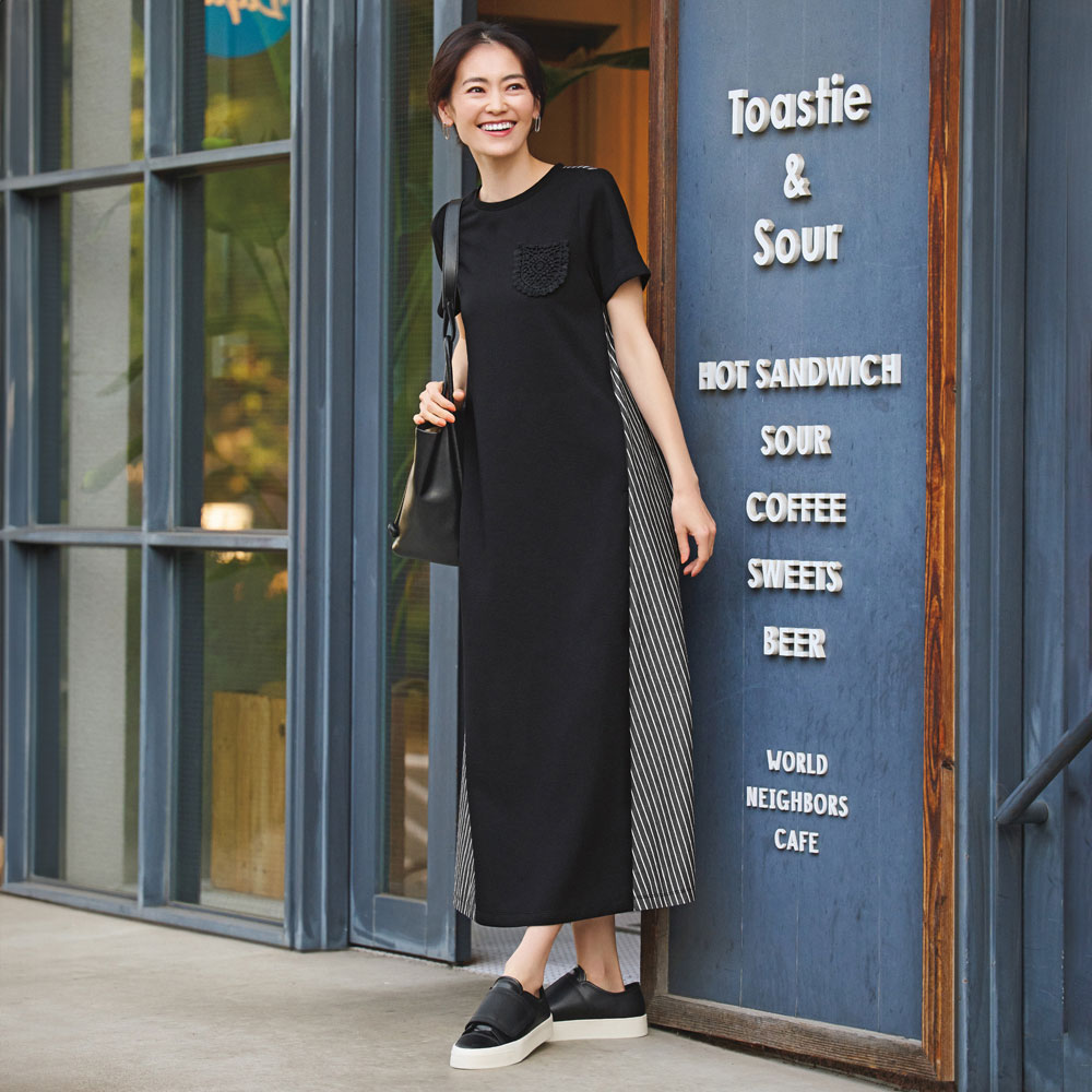 Autumn RELAX STYLEモードニュアンスの今秋スタイル日射しはまだ強いけれど、吹き抜ける風が新しい秋を告げて――。お洒落が楽しくなる時期に向けて、モード力高めのデイリースタイルを揃えました。 タウンで絵になるグラフィカルな合わせ技Striped Dress前身頃は柔らかなワッフル素材。脇〜後ろをストライプで切り替えたドッキング仕様のワンピースです。ワッフルの編み地は、繊細な凹凸と微光沢をたたえて、黒一色でもリッチな表情。伸縮性があるため着心地がよく、ボディラインを拾い過ぎません。左の胸元に小さなレースポケットを付け、アクセサリーなしで華やぐ一枚にしました。また、身頃脇の切り替えは程よく前振りにして、ほっそりとした印象をメイク。両脇は斜め、後ろは縦方向のストライプがグラフィカルな着映えを誘います。