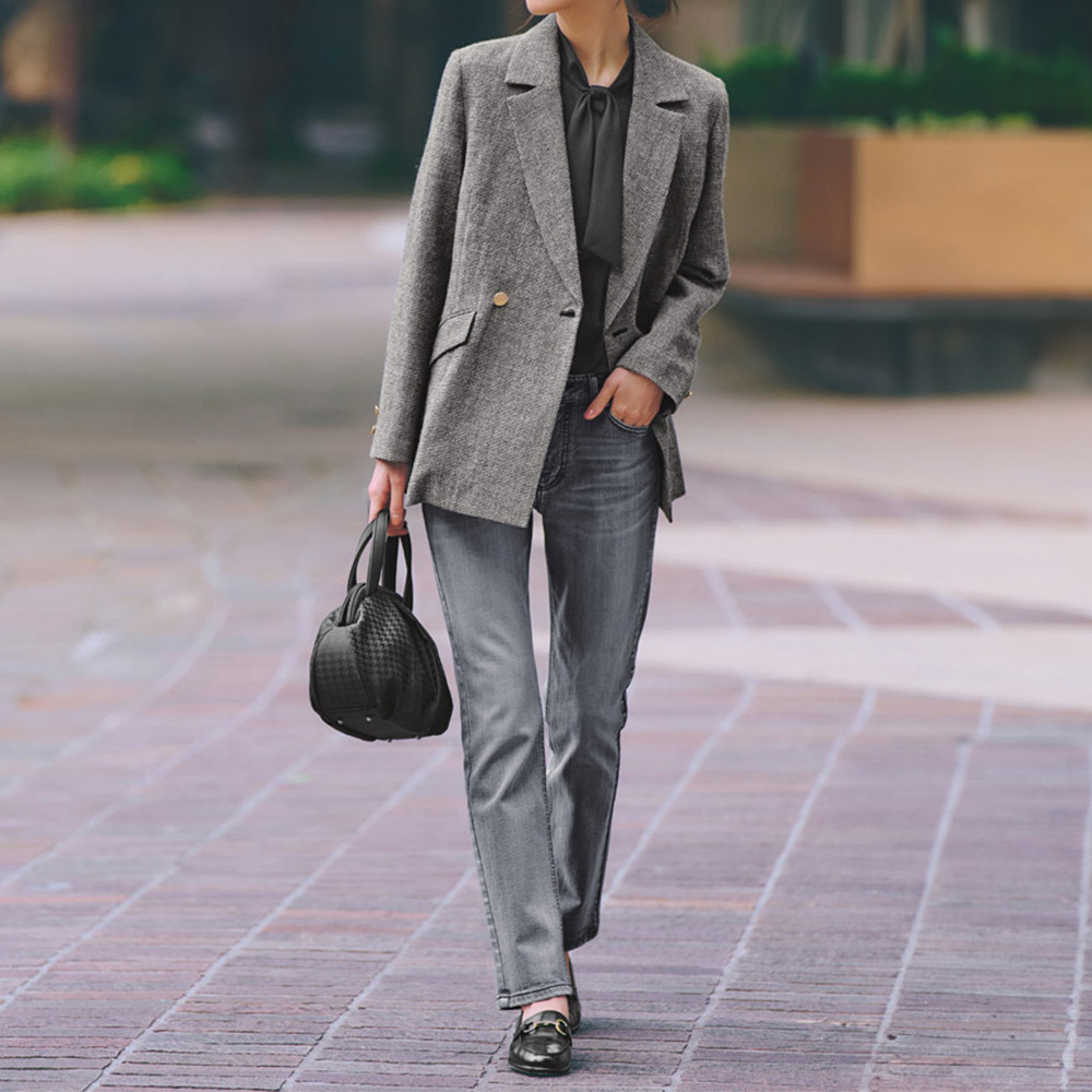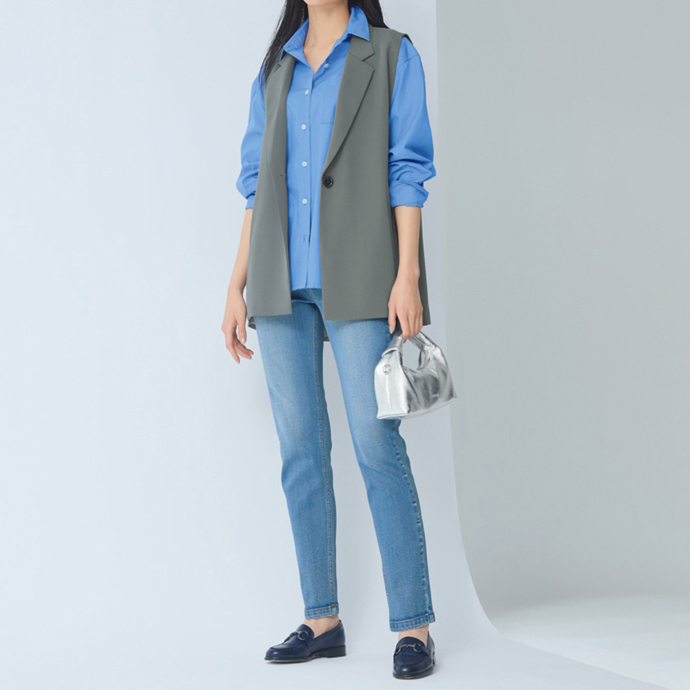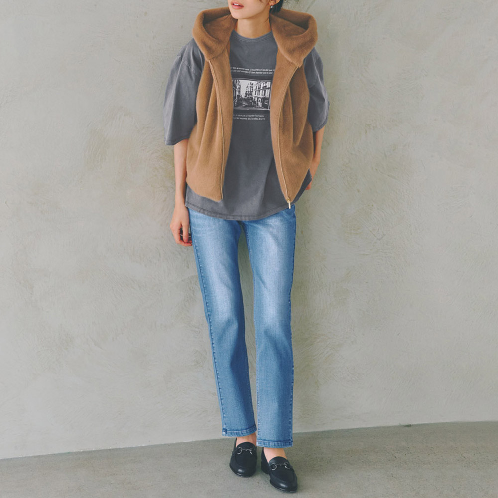 MY FAVORITE ITEMコットンレーヨン混素材でオールシーズン対応可能。選べるサイズを増やしました。ヴィンテージデニムのような雰囲気でこなれ感も◎。伸縮性があるスリムストレートシルエットで程よいフィット感。適度な股上で腰まわりや太ももをホールドしつつ、柔らかな風合いではきやすさを計算したシルエットに。ナチュラルな色落ち感や、ひざ上のウォッシュ加工により、おしゃれにスタイルアップできるデニムパンツです。
