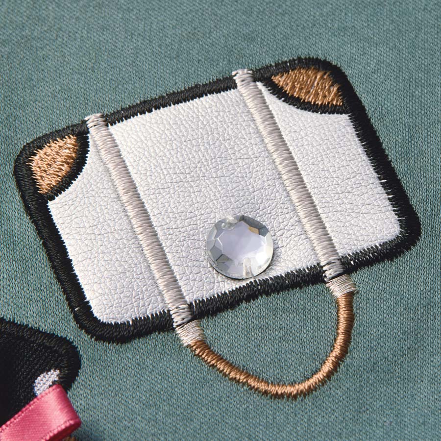レザー調素材にビジューをトッピング。ハイクラスな印象に。