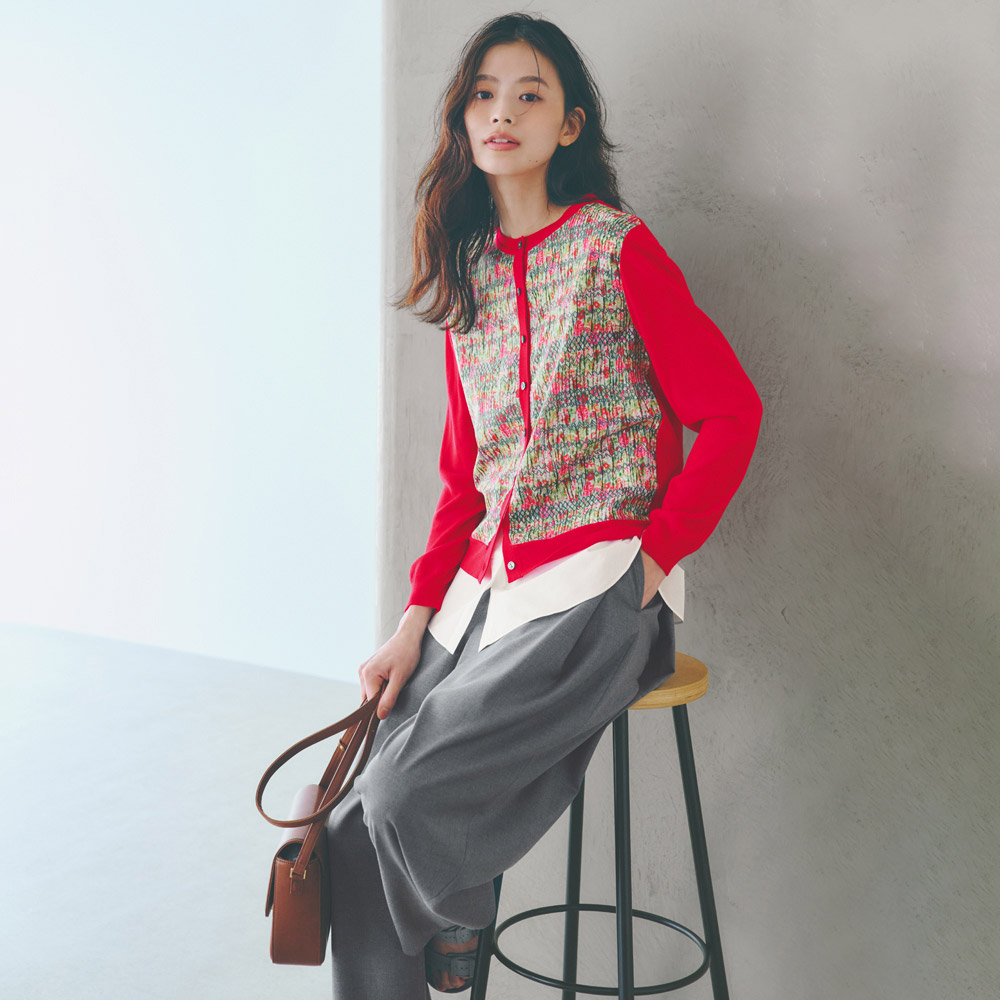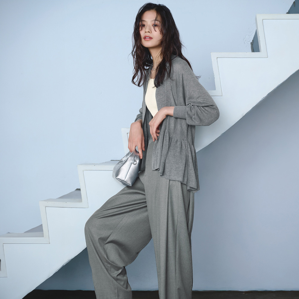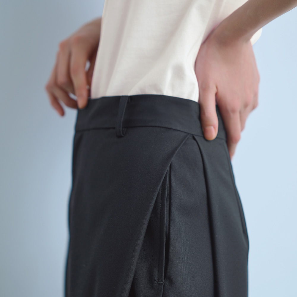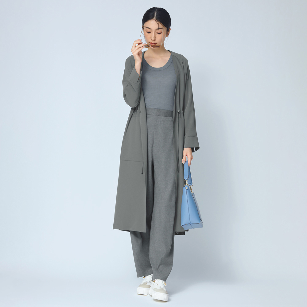 MONO TONE夏の装いが少し気恥ずかしくなってくる晩夏に、シックなモノトーンはうってつけ。フェミニンモードなイメージづくりもお手のもの。取り入れるだけで、魅力的な秋が始まります。下半身をカバーしつつ着こなせる“バレルパンツ”。タックで丸みのある樽(バレル)のようにふくらませて、裾にかけて絞られているためスタイルアップ効果が期待できます。落ち感があり、きれい見えする素材&裏地なしだから、シーンやシーズンを問わず着回せます。