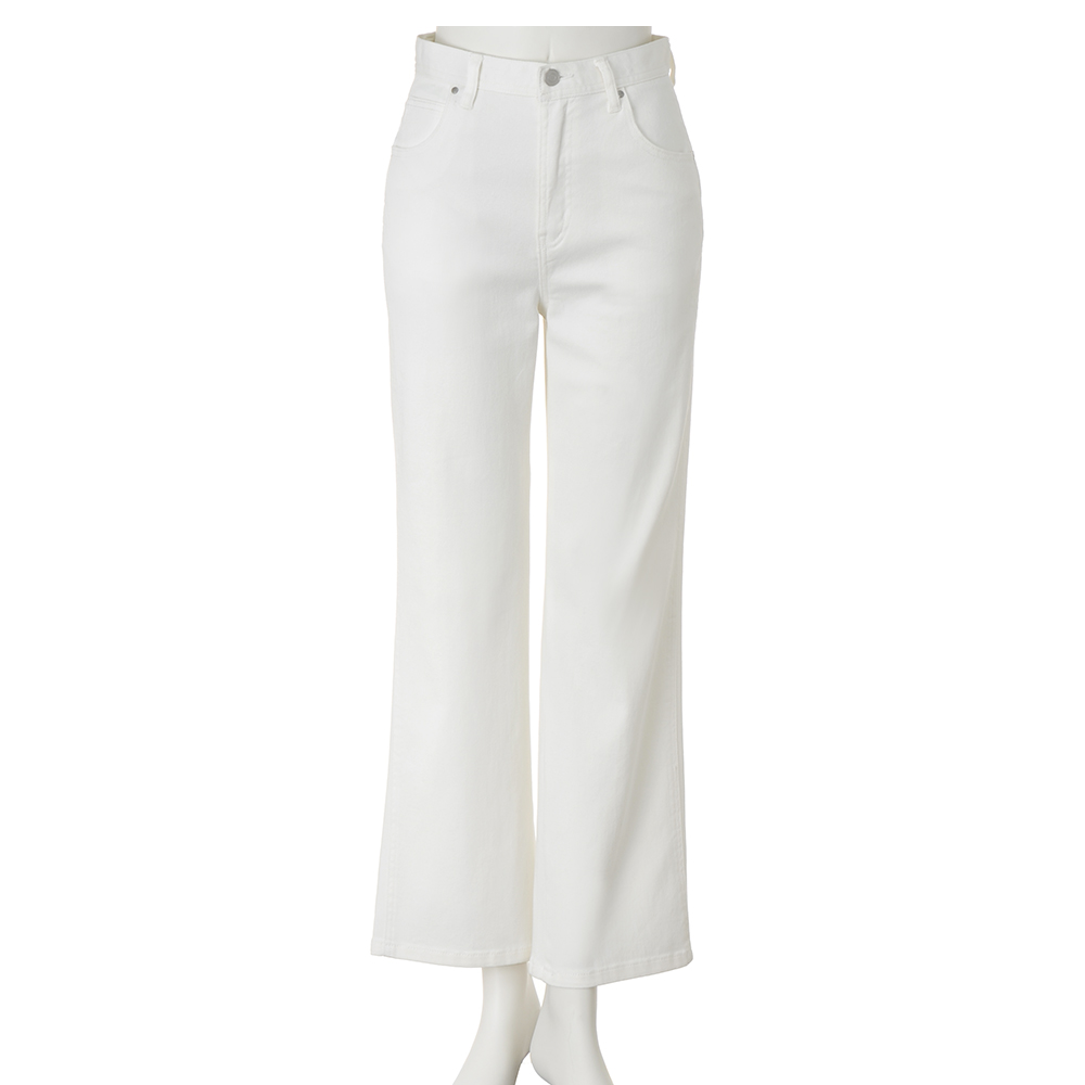 “Style Up Closet”おしゃれをしながら体型カバーを叶えてくれるアイテムをお届け。身につけるだけで自信があふれ、誰かと会ったり、お出かけしたり……、いつもの日常に彩りが生まれるはず。“Fitted silhouette”水や汚れに強いカラーデニム生地。程よいフィット感があるストレートシルエットです。ウエスト位置をやや高めに設定し、股上は深すぎず浅すぎず、おなかやヒップをしっかりホールド。適度なゆとり感で、窮屈なデニムが苦手な方も楽にはけます。素材のこだわり、テフロン加工&サステナブル素材テフロン加工をほどこすことで、はっ水効果が高く、防汚に優れたカラーデニム。雨の日やアクティブなレジャーシーンにも打ってつけです。世界基準の安全性を満たした、エコテックス認証素材で環境にも配慮。