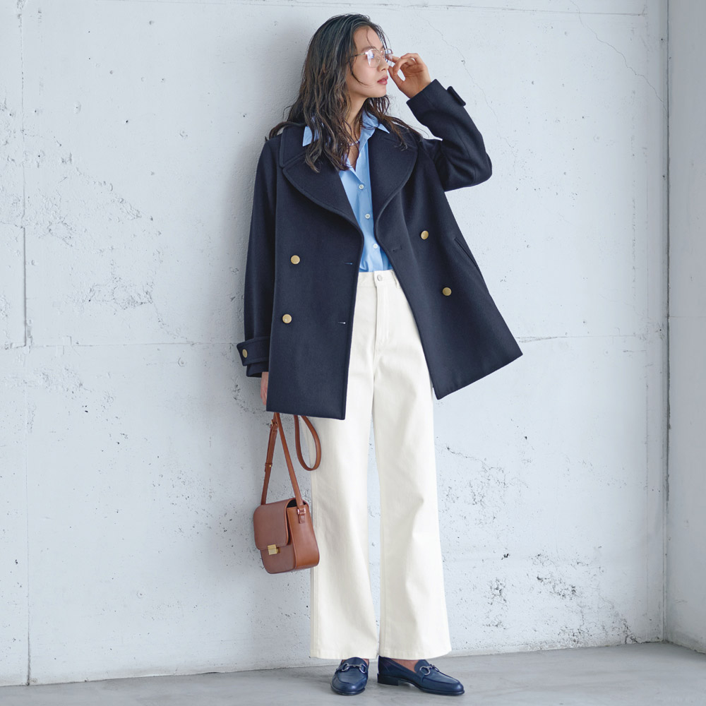 • はきやすく美脚を叶えてくれるストレートシルエット (ア)オフホワイト コーディネート例