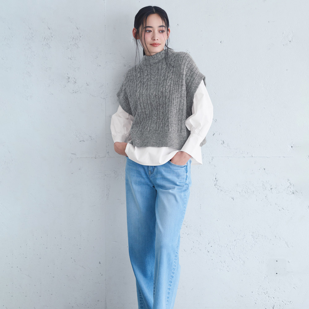 • ≪前後2WAY≫ レイヤードスタイルをアップデート!ボクシーなデザインでゆとり感を強調。 ケーブル柄面 コーディネート例