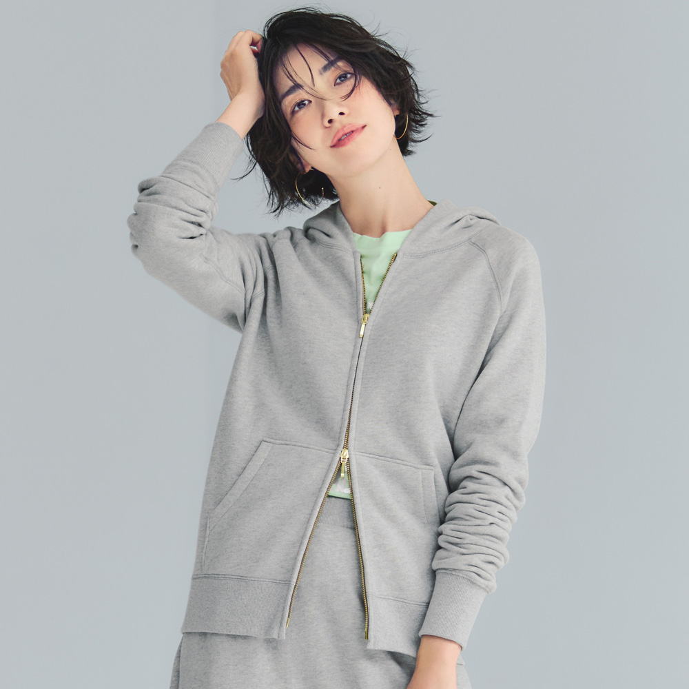 ふんわり柔らかく、素肌に触れても心地よいトンプキン裏毛シリーズ。やさしい風合いと上品な表情で、リラックス感がありながら大人らしく着こなせます。一度袖を通せば、その気持ちよさに思わず色違いで揃えたくなるはず。クラシックなラグランスリーブのシルエットに、リッチなゴールドのダブルジップを組み合わせた上品なパーカ。細部にこだわることで日常をさりげなく格上げしてくれる一枚です。アイボリーは無染色ならではのナチュラルな風合いが魅力。トンプキンとは?今ではほとんど残っていないヴィンテージの「トンプキン編み機」で生み出される特別な裏毛。糸を下から上へと編み上げる独自の構造によって、空気を含んだようなふんわりとしたタッチに。1時間に1mしか編めないからこそ叶う、柔らかさと希少性が魅力。