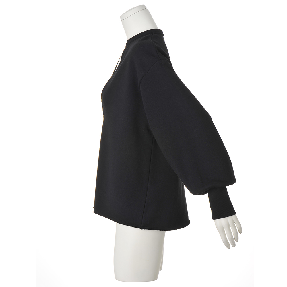 ふんわり柔らかく、素肌に触れても心地よいトンプキン裏毛シリーズ。やさしい風合いと上品な表情で、リラックス感がありながら大人らしく着こなせます。一度袖を通せば、その気持ちよさに思わず色違いで揃えたくなるはず。大胆な深Vネックとパフスリーブ、断ち切り裾でトレンド感を効かせた一枚。インナー次第で印象が変わり、幅広い着こなしが楽しめます。ベーシックな裏毛トップスをすでに持つ方にも新鮮な選択肢。カジュアルでありながら洗練された大人のスタイルに。トンプキンとは?今ではほとんど残っていないヴィンテージの「トンプキン編み機」で生み出される特別な裏毛。糸を下から上へと編み上げる独自の構造によって、空気を含んだようなふんわりとしたタッチに。1時間に1mしか編めないからこそ叶う、柔らかさと希少性が魅力。