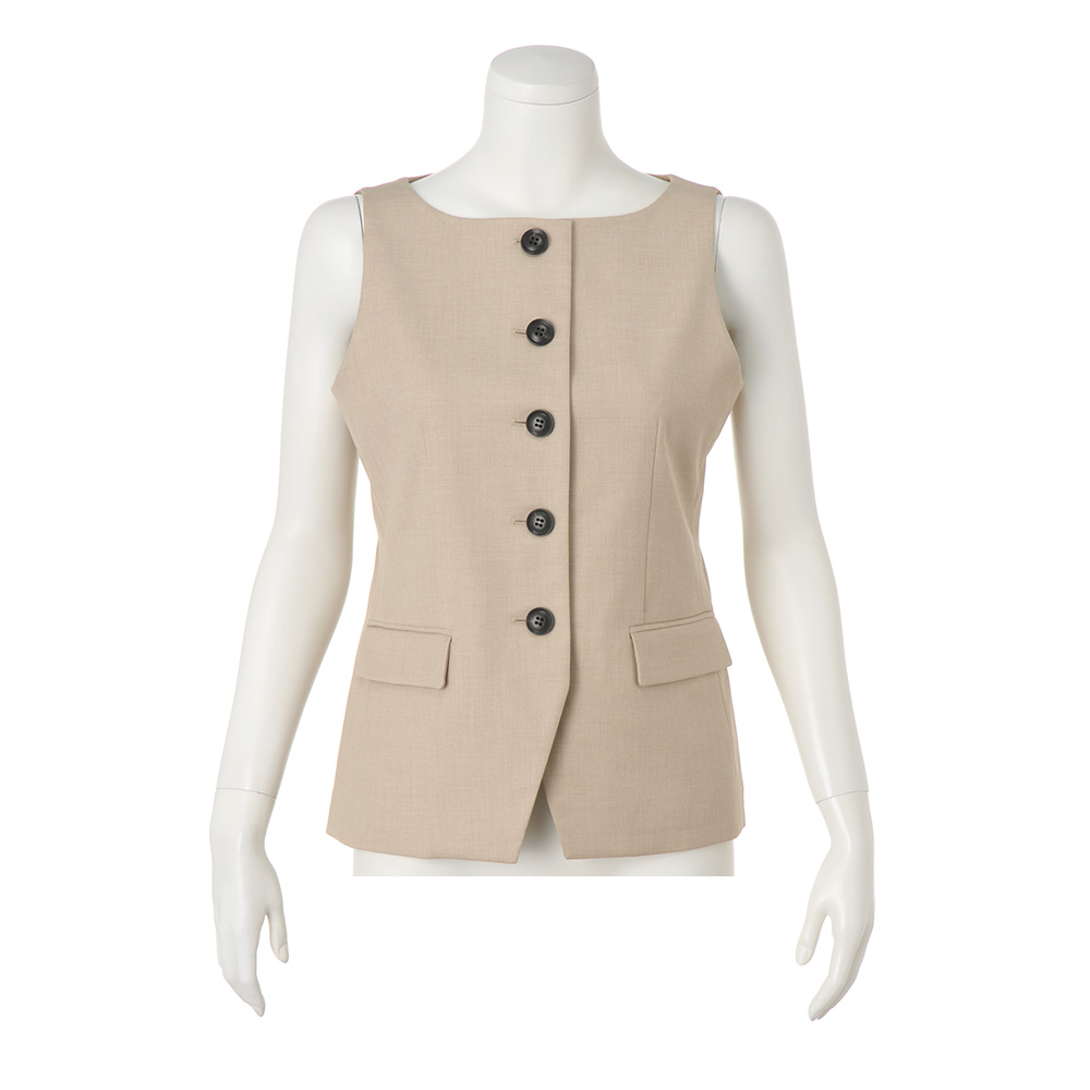 “抜け感”を楽しむ、品格きれいめスタイル毎日に寄り添いながら、きちんと感も華やかさも欲張れる。女性らしさを引き出し、品よく着映える「大人のおでかけ服」に、今年らしいエッセンスを加えました。抜け感ときちんと感。どちらも欲張れる、今どきセットアップジャケット(商品番号:147901)・ベスト・ワイドパンツ(商品番号:147903)のセットアップ。ベストはスクエアネックで女性らしさと抜け感を演出しました。ライトベージュに映える大きめの黒ボタンが着こなしのアクセントに。