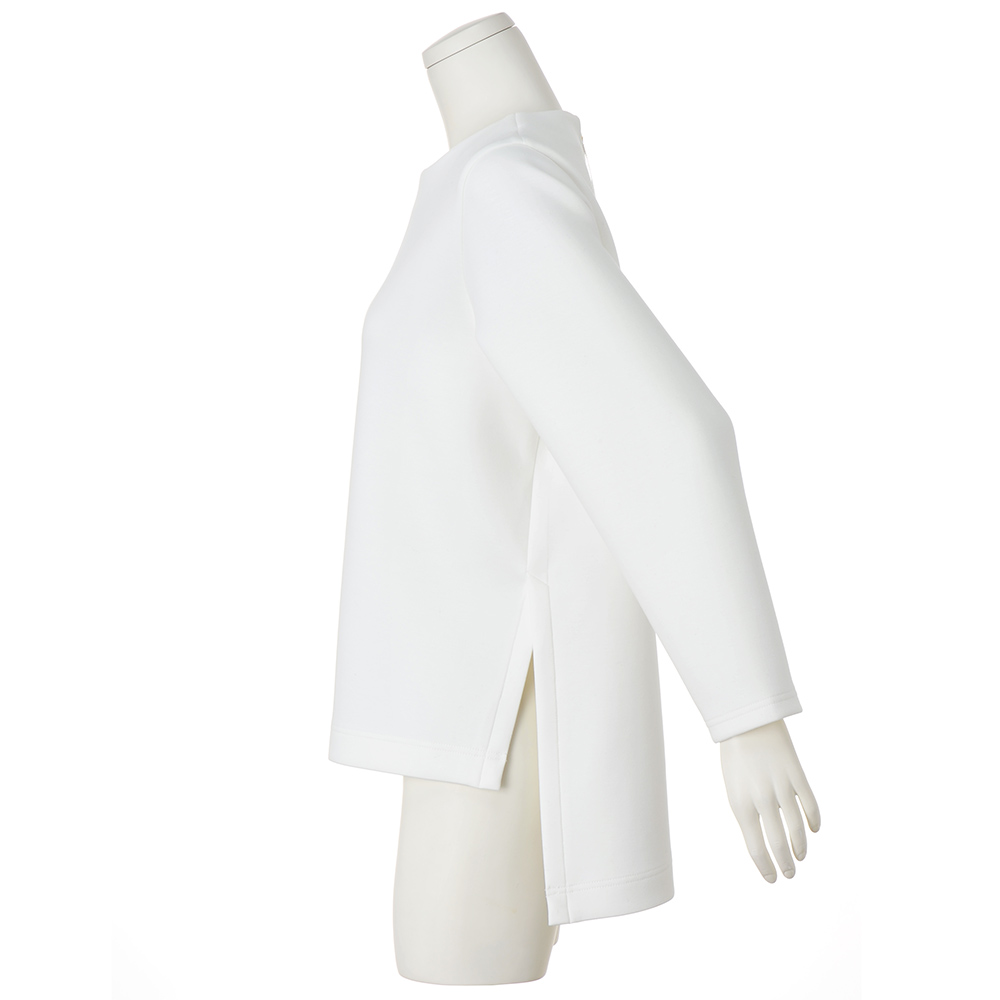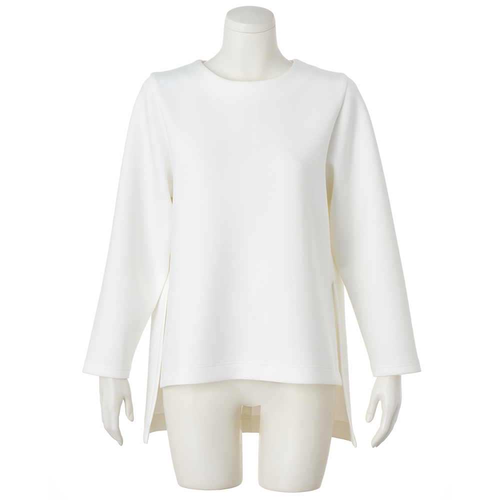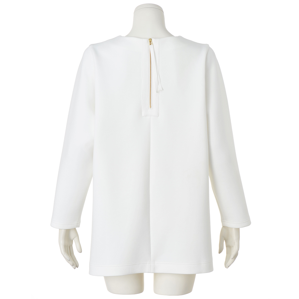 “抜け感”を楽しむ、品格きれいめスタイル毎日に寄り添いながら、きちんと感も華やかさも欲張れる。女性らしさを引き出し、品よく着映える「大人のおでかけ服」に、今年らしいエッセンスを加えました。ただ着るだけで、しゃれ見え。一枚あると安心の頼れるプルオーバーからだのラインを拾いにくいハリのある生地に加え、両サイドに入れた深めスリットが腰位置を高く見せ、着るだけで簡単にスタイルアップが叶います。後ろ丈を長めにした前後差のあるデザインで、気になるヒップラインもおしゃれにカバー。かぶりタイプでも背中ファスナーにリボンつきだから、着脱も楽々です。