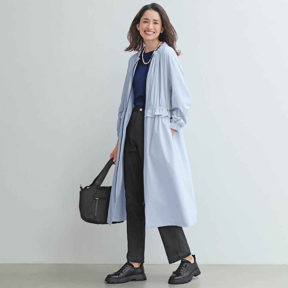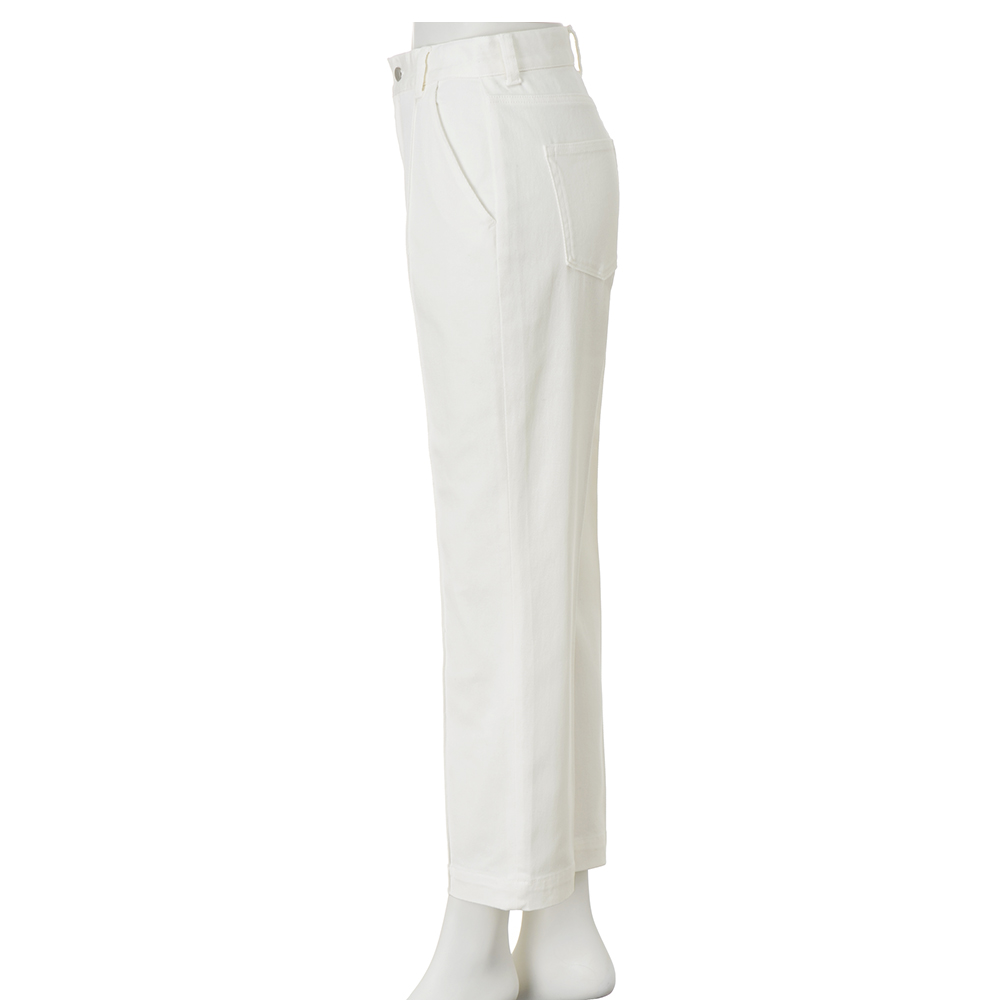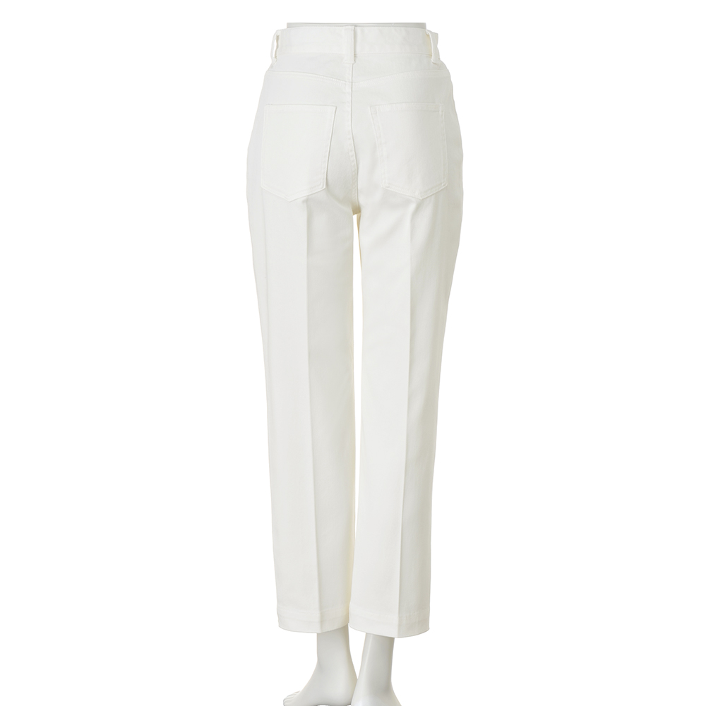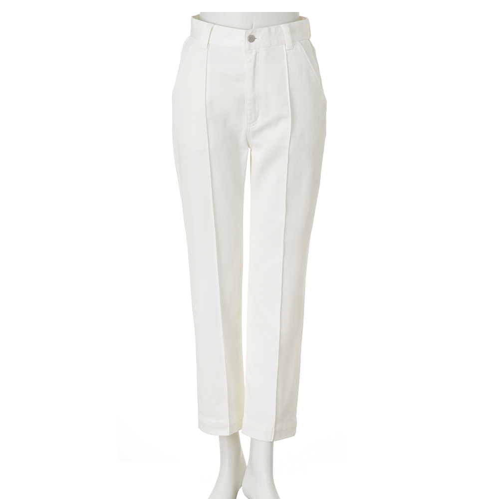この春に使いやすい定番ボトム軽やかな春の装いに欠かせないのは、着回し力のある定番ボトム。シーンを選ばず活躍し、旬のトップスとも好相性。大人のワードローブをアップデートしませんか?白デニムも天候を問わずに着用可能洗練されたさわやかな春コーディネートはっ水効果があり、雨の日にも安心なテフロン加工をほどこしたデニム。アクティブなレジャーシーンにもぴったりです。センターにピンタック入りのテーパードシルエットなので、きれいめスタイルにもOK。前ウエスト部分はカーブをかけているため、後ろから見ても腰高ですっきりした印象に。オフホワイト、ブラックの2色展開です。[はっ水]≫ POINT・縦のラインを強調し脚長効果を演出するセンターピンタック入り。・ウエスト部分にカーブをつけて、はき心地とスタイルアップを狙いました。・テフロン加工ではっ水効果があり、雨の日も安心。