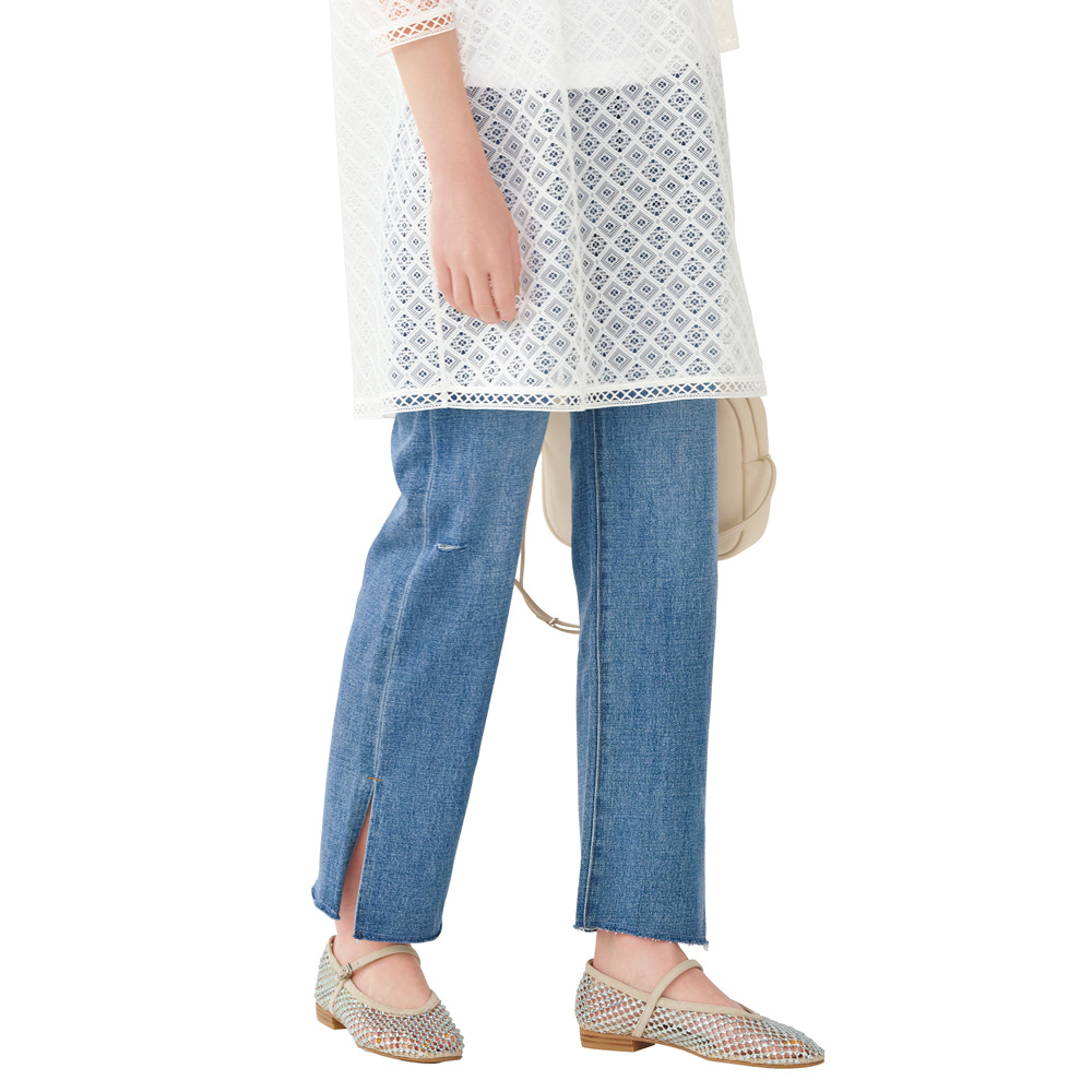 軽量デニム スリット入り 9分丈パンツ サステナブル 172402